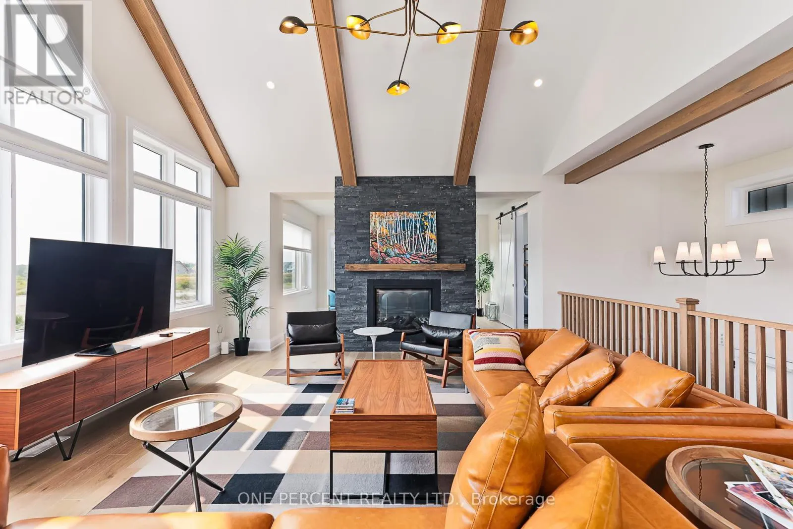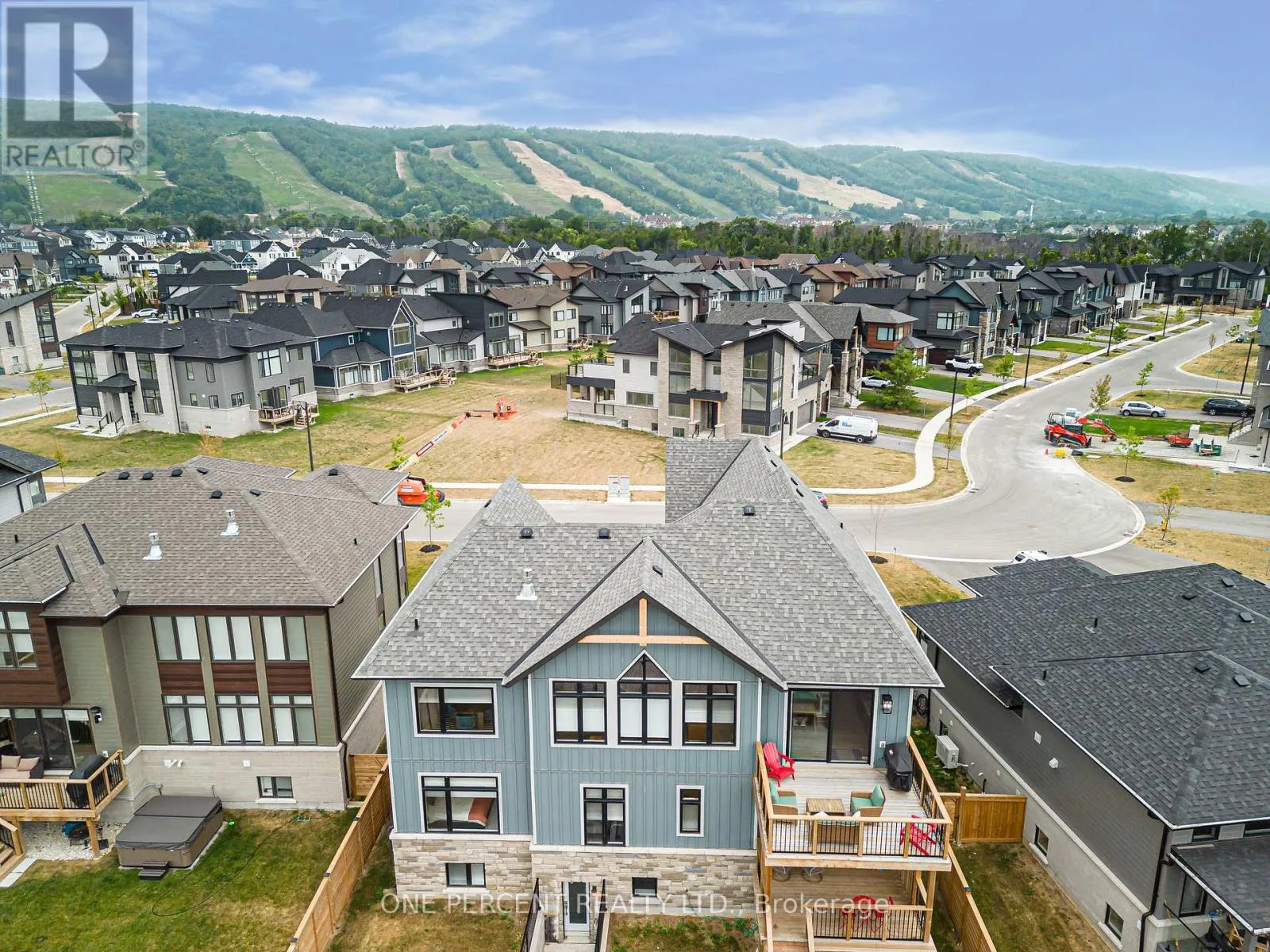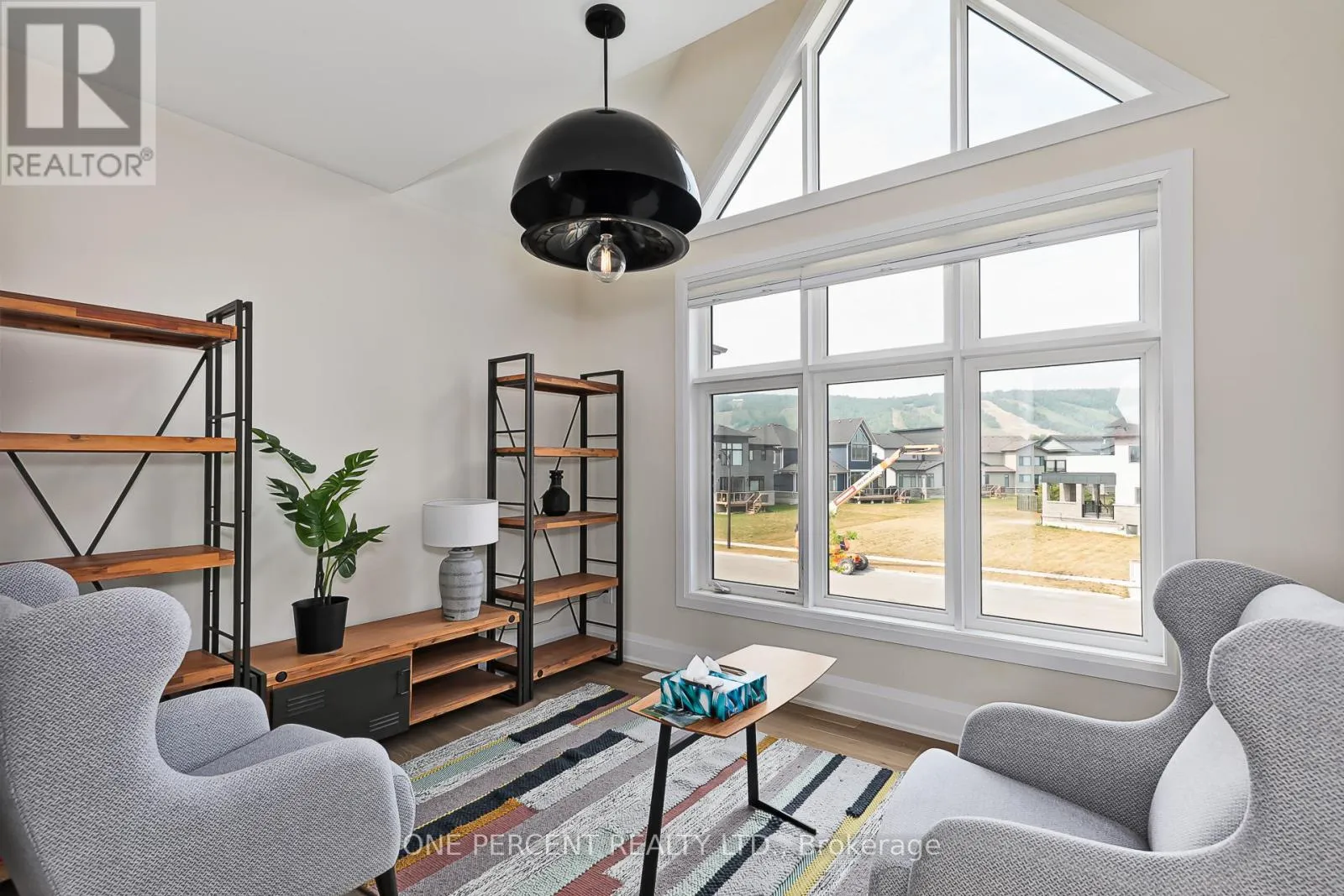 Stoneleigh and Cattail Welcome to 114 Cattail Crescent, a 4,558 sqft mountain house, boasting elegant architectural upgrades, unique stone, fibre cement, and wood grain siding, along with ornamental wood details. A 50-foot wide, side-facing garage creates an impressive street presence, with plenty of parking.This layout features a primary living space (1,883 sqft) on the second floor, additional primary living space on the first floor (1,548 sqft), plus a fully finished walkout basement (1,127sqft). The open second floor, with high ceilings and windows, offers impressive views and features a large deck, custom kitchen, servery, eating area, faux beam covered lodge room, formal dining room, and den, divided by a slate-clad floor-to-ceiling gas fireplace. The expansive owners suite includes cathedral ceilings, a private loggia, spacious walk-in closet, and a beautifully decorated ensuite with standalone tub and a large glass shower enclosure. The main level entrance leads to the main floor with a large bar/kitchen, a family room with a deck, backyard access and beautifully decorated rooms with custom light fixtures. There are also three good-sized bedrooms and two full bathrooms on this level. A separate side door and a garage entrance, leads to a spacious storage room and laundry room. The self-contained basement with glass door walkout, offers a large open space, wet bar, two bedrooms with egress windows, and a full bathroom.The house is beautifully located within a short walking distance to Blue Mountain Village and a complimentary shuttle to many amenities, including the private Blue Mountain Beach. This professionally decorated house with great street presence and exceptional floor plan includes all light fixtures and furniture. (id:27476)