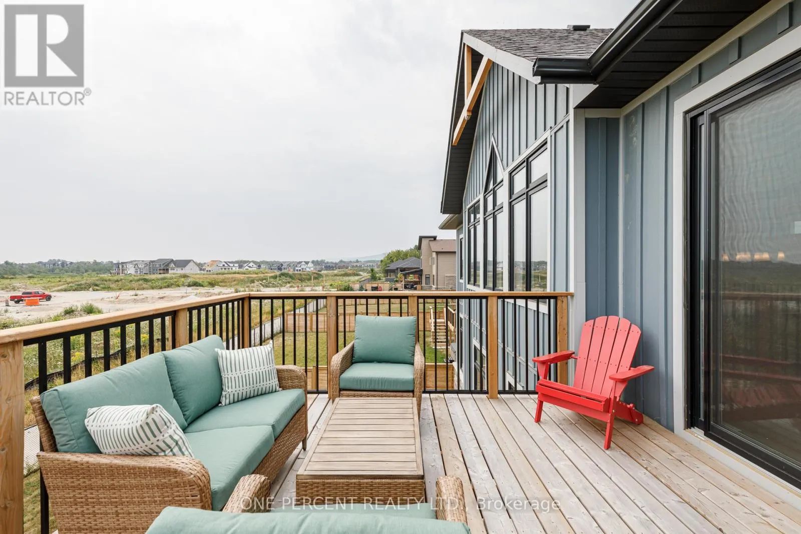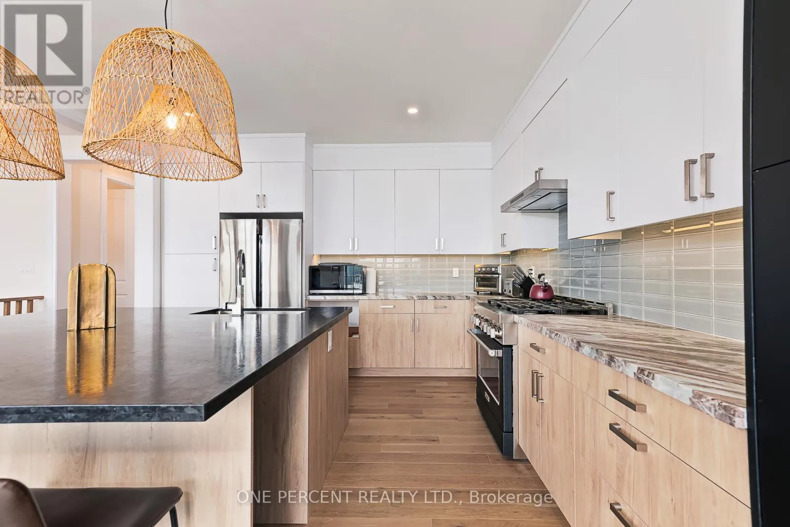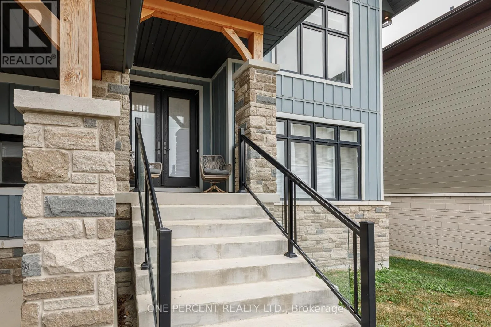 Stoneleigh and Cattail Welcome to 114 Cattail Crescent, a 4,558 sqft mountain house, boasting elegant architectural upgrades, unique stone, fibre cement, and wood grain siding, along with ornamental wood details. A 50-foot wide, side-facing garage creates an impressive street presence, with plenty of parking.This layout features a primary living space (1,883 sqft) on the second floor, additional primary living space on the first floor (1,548 sqft), plus a fully finished walkout basement (1,127sqft). The open second floor, with high ceilings and windows, offers impressive views and features a large deck, custom kitchen, servery, eating area, faux beam covered lodge room, formal dining room, and den, divided by a slate-clad floor-to-ceiling gas fireplace. The expansive owners suite includes cathedral ceilings, a private loggia, spacious walk-in closet, and a beautifully decorated ensuite with standalone tub and a large glass shower enclosure. The main level entrance leads to the main floor with a large bar/kitchen, a family room with a deck, backyard access and beautifully decorated rooms with custom light fixtures. There are also three good-sized bedrooms and two full bathrooms on this level. A separate side door and a garage entrance, leads to a spacious storage room and laundry room. The self-contained basement with glass door walkout, offers a large open space, wet bar, two bedrooms with egress windows, and a full bathroom.The house is beautifully located within a short walking distance to Blue Mountain Village and a complimentary shuttle to many amenities, including the private Blue Mountain Beach. This professionally decorated house with great street presence and exceptional floor plan includes all light fixtures and furniture. (id:27476)