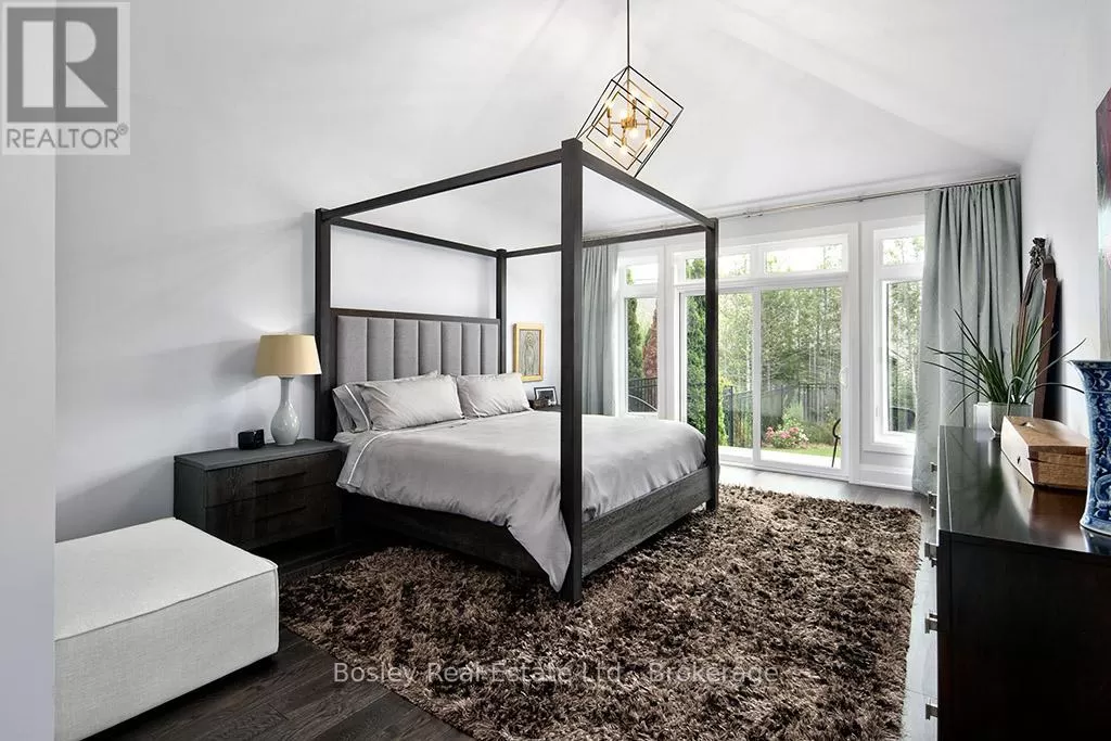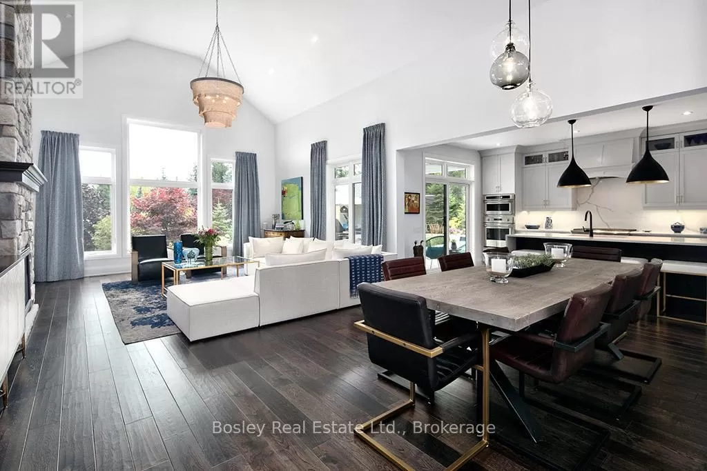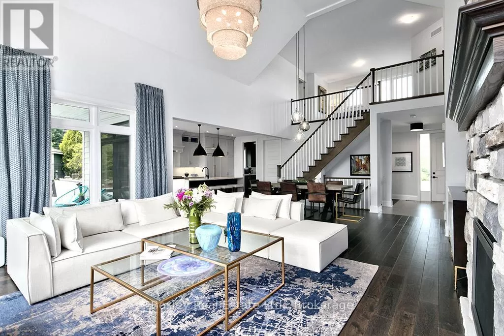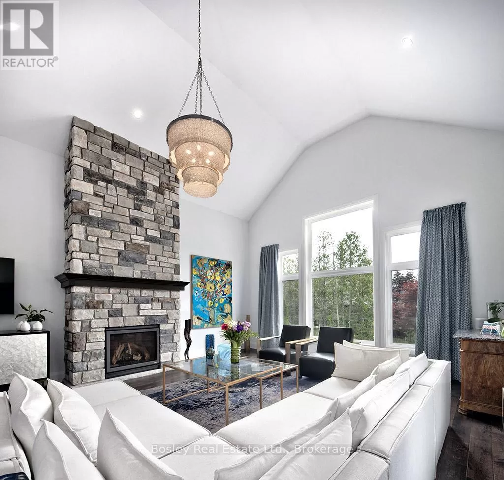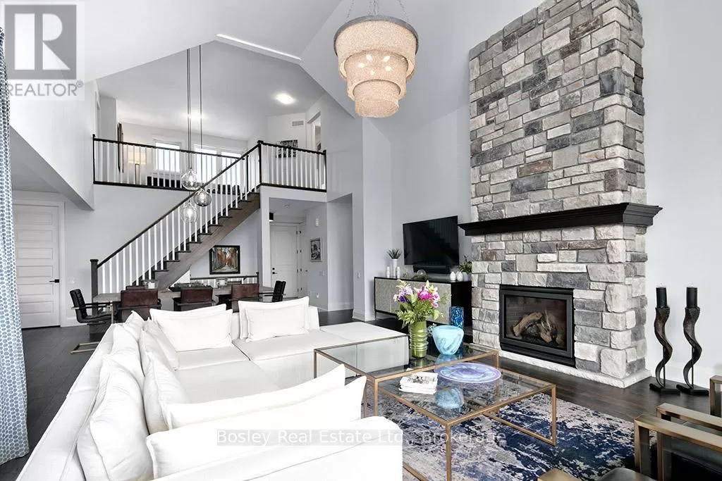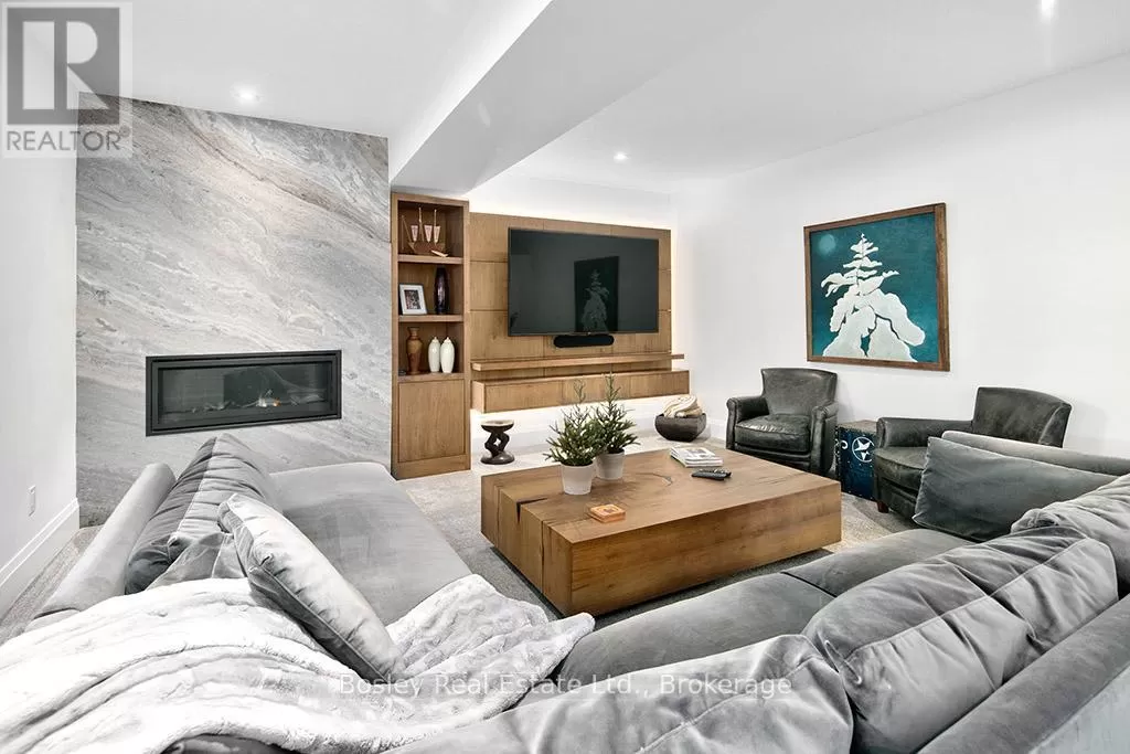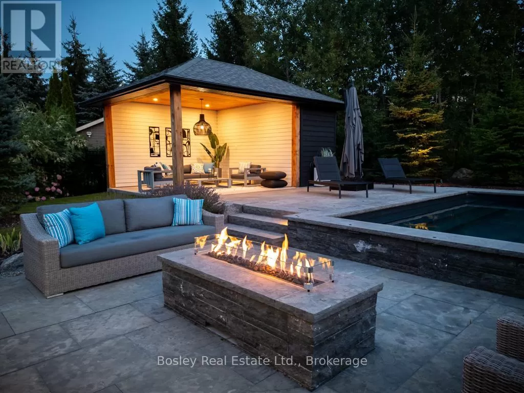Cross Streets: West Ridge. ** Directions: From West Ridge turn on to McCallum Crt. Tucked away on a quiet cul de sac in the prestigious Lora Bay community, this exceptional residence, built by Reids Heritage Homes in 2019, pairs elegant design with thoughtful upgrades and resort-style outdoor living. Backing onto mature trees, the home offers rare privacy and tranquility just minutes from Georgian Bay, golf, skiing, and the shops and restaurants of Thornbury.A covered front porch opens into a refined foyer with updated tile (2025), setting the tone for the elevated finishes throughout. A custom home office with built-in cabinetry and millwork (2022) sits just off the entry, while the newly renovated powder room (2025) adds a modern touch for guests.The great room is the heart of the home, with soaring ceilings, a gas fireplace, and oversized windows overlooking the manicured backyard. The chefs kitchen features quartz counters, high-end appliances, a walk-in pantry, and a butlers pantry connecting to the mudroom, laundry, and two-car garage.The main-floor primary suite offers serene garden views, a walk-in closet, and a spa-like ensuite with double vanities, a soaking tub, and glass shower.Step outside to your private oasis: a covered deck for dining and lounging, lush gardens, a built-in hot tub, and a heated saltwater pool installed in 2020 by Clear Choice. This showstopping outdoor space was awarded second place in the 2021 North American Inground Pool Design Awards.Upstairs, a versatile loft-style family room, two spacious guest suites, and a five-piece bath provide comfort and space.The fully finished basement includes a large recreation room with a gas fireplace, custom wet bar, built-ins, a guest bedroom, four-piece bath, home gym or optional fifth bedroom, and ample storage.Residents of Lora Bay enjoy a vibrant community with access to a championship golf course, scenic walking trails, and Georgian Bay just moments away. (id:27476)