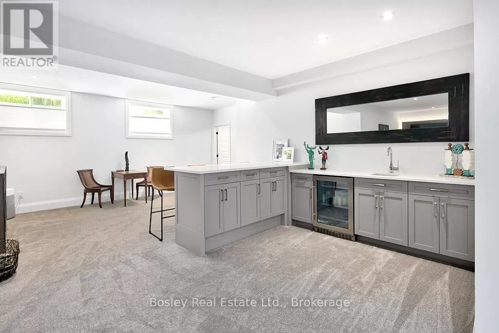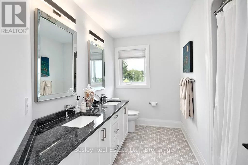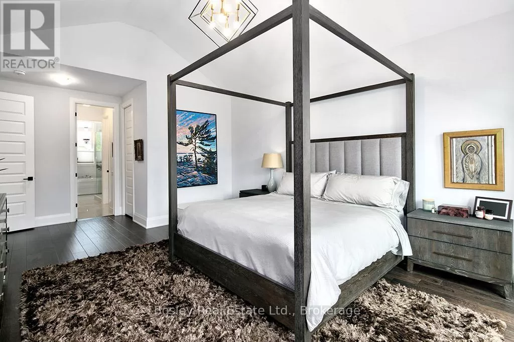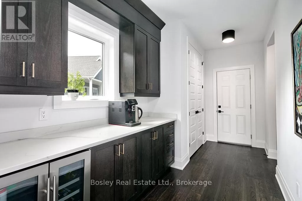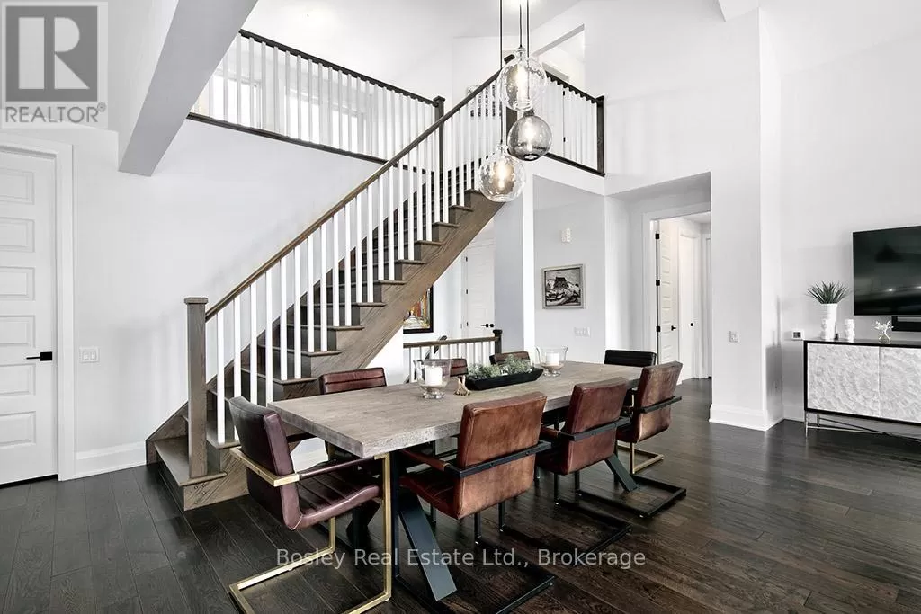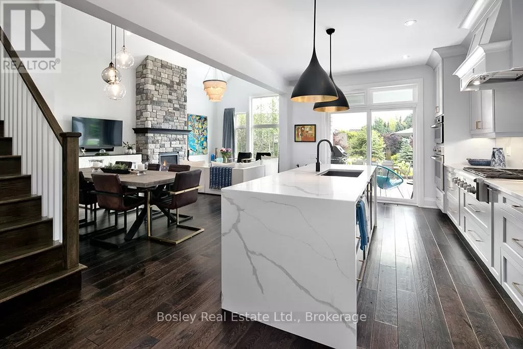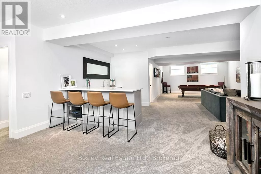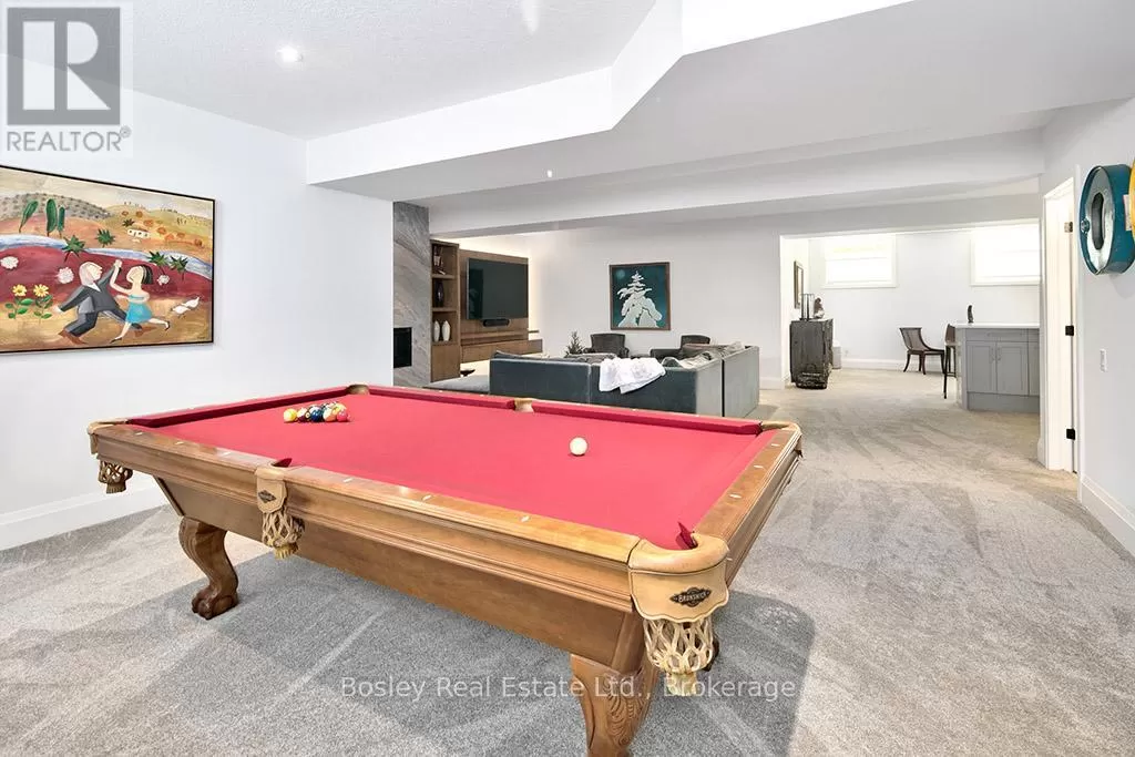 Cross Streets: West Ridge. ** Directions: From West Ridge turn on to McCallum Crt. Tucked away on a quiet cul de sac in the prestigious Lora Bay community, this exceptional residence, built by Reids Heritage Homes in 2019, pairs elegant design with thoughtful upgrades and resort-style outdoor living. Backing onto mature trees, the home offers rare privacy and tranquility just minutes from Georgian Bay, golf, skiing, and the shops and restaurants of Thornbury.A covered front porch opens into a refined foyer with updated tile (2025), setting the tone for the elevated finishes throughout. A custom home office with built-in cabinetry and millwork (2022) sits just off the entry, while the newly renovated powder room (2025) adds a modern touch for guests.The great room is the heart of the home, with soaring ceilings, a gas fireplace, and oversized windows overlooking the manicured backyard. The chefs kitchen features quartz counters, high-end appliances, a walk-in pantry, and a butlers pantry connecting to the mudroom, laundry, and two-car garage.The main-floor primary suite offers serene garden views, a walk-in closet, and a spa-like ensuite with double vanities, a soaking tub, and glass shower.Step outside to your private oasis: a covered deck for dining and lounging, lush gardens, a built-in hot tub, and a heated saltwater pool installed in 2020 by Clear Choice. This showstopping outdoor space was awarded second place in the 2021 North American Inground Pool Design Awards.Upstairs, a versatile loft-style family room, two spacious guest suites, and a five-piece bath provide comfort and space.The fully finished basement includes a large recreation room with a gas fireplace, custom wet bar, built-ins, a guest bedroom, four-piece bath, home gym or optional fifth bedroom, and ample storage.Residents of Lora Bay enjoy a vibrant community with access to a championship golf course, scenic walking trails, and Georgian Bay just moments away. (id:27476)