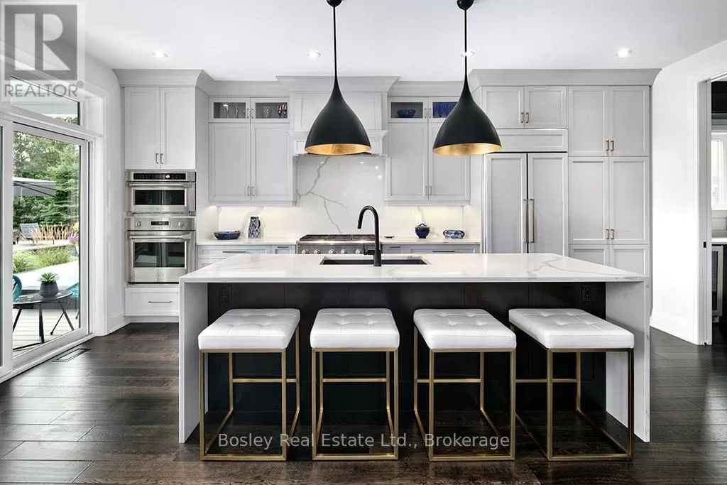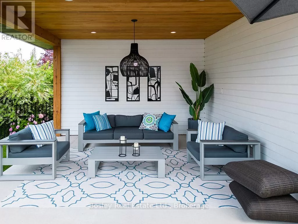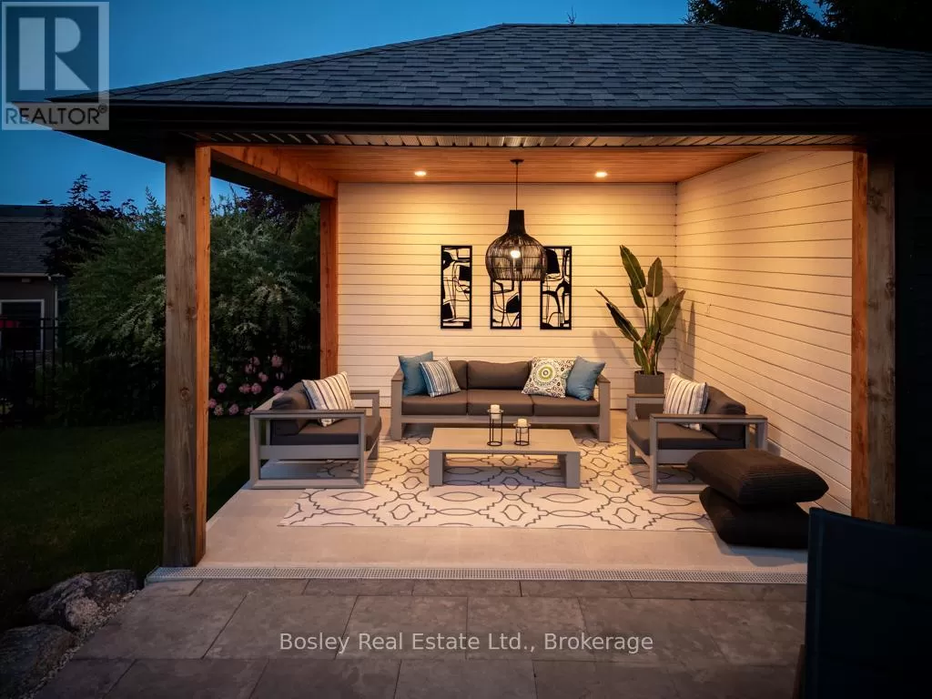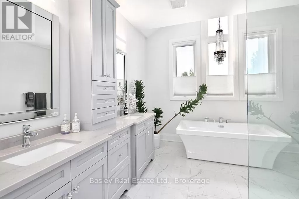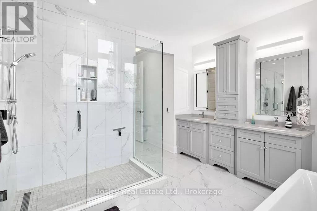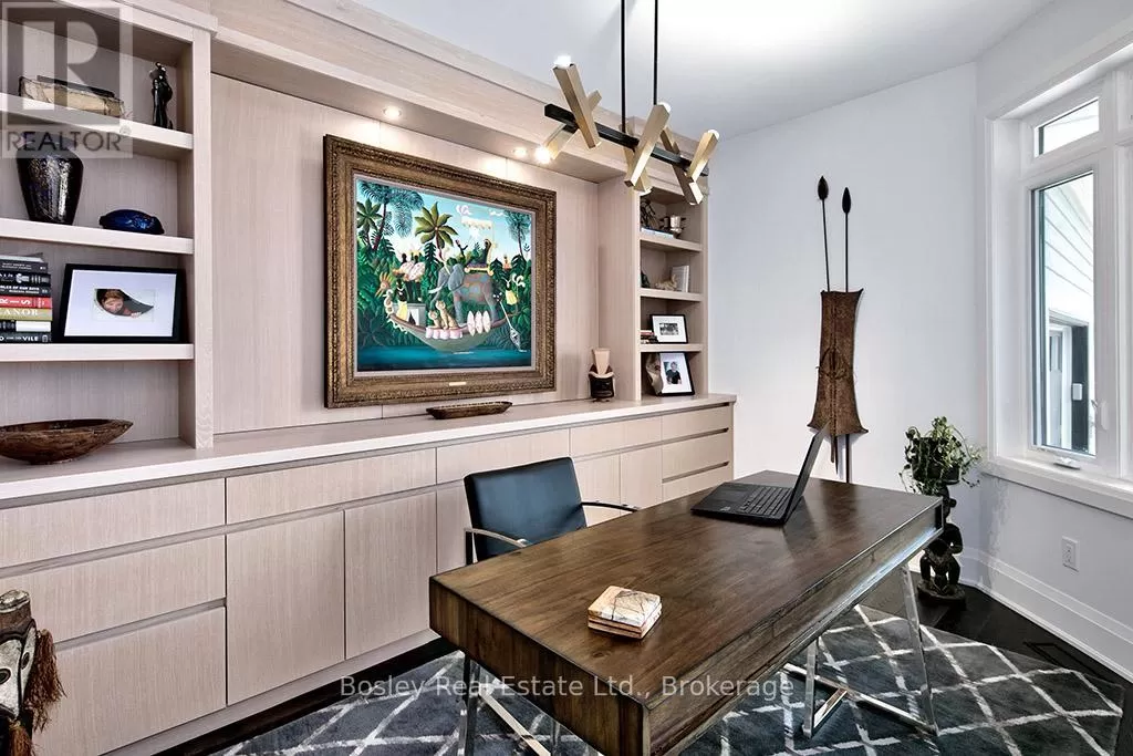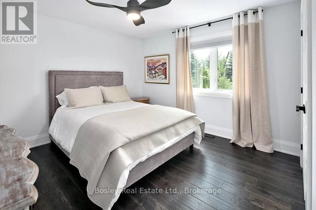 Cross Streets: West Ridge. ** Directions: From West Ridge turn on to McCallum Crt. Tucked away on a quiet cul de sac in the prestigious Lora Bay community, this exceptional residence, built by Reids Heritage Homes in 2019, pairs elegant design with thoughtful upgrades and resort-style outdoor living. Backing onto mature trees, the home offers rare privacy and tranquility just minutes from Georgian Bay, golf, skiing, and the shops and restaurants of Thornbury.A covered front porch opens into a refined foyer with updated tile (2025), setting the tone for the elevated finishes throughout. A custom home office with built-in cabinetry and millwork (2022) sits just off the entry, while the newly renovated powder room (2025) adds a modern touch for guests.The great room is the heart of the home, with soaring ceilings, a gas fireplace, and oversized windows overlooking the manicured backyard. The chefs kitchen features quartz counters, high-end appliances, a walk-in pantry, and a butlers pantry connecting to the mudroom, laundry, and two-car garage.The main-floor primary suite offers serene garden views, a walk-in closet, and a spa-like ensuite with double vanities, a soaking tub, and glass shower.Step outside to your private oasis: a covered deck for dining and lounging, lush gardens, a built-in hot tub, and a heated saltwater pool installed in 2020 by Clear Choice. This showstopping outdoor space was awarded second place in the 2021 North American Inground Pool Design Awards.Upstairs, a versatile loft-style family room, two spacious guest suites, and a five-piece bath provide comfort and space.The fully finished basement includes a large recreation room with a gas fireplace, custom wet bar, built-ins, a guest bedroom, four-piece bath, home gym or optional fifth bedroom, and ample storage.Residents of Lora Bay enjoy a vibrant community with access to a championship golf course, scenic walking trails, and Georgian Bay just moments away. (id:27476)