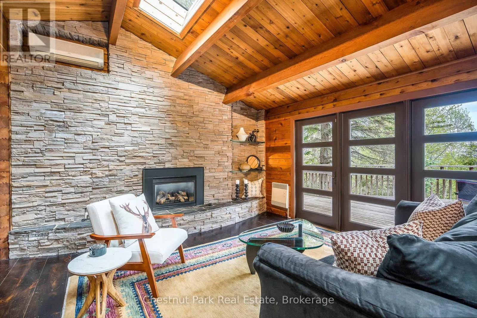 Cross Streets: Grey 19 and Hwy 26. ** Directions: From Hwy 26, south on Grey Rd. 19 to Kitzbuhl Cres to Lakeshore Rd W to Chamonix Cres. TURN KEY OPPORTUNITY IN CRAIGLEITH. This charming and warm chalet located in the sought after Craigleith nieghbourhood in the Blue Mountains offers year round recreational enjoyment. Move into this fully furnished chalet for thanksgiving. A short walk to Northwinds Beach, minutes to Blue Mountain village, local ski clubs, golfing, and just up the road from the Georgian Trail. The thoughtfully designed 3 bedroom and 2.5 bath chalet is offered FULLY FURNISHED including all housewares (some exclusions). The open concept upper level offers a large gourmet kitchen, living room with stone gas fireplace, vaulted ceilings plus a walkout to the deck overlooking the property. The primary bedroom is just off the main living area offering a 4 piece ensuite. The lower/entry level includes the cozy family room with gas fireplace, 2 bedrooms, and a spa like 4 piece bath with an immaculate sauna. This amazing opportunity awaits you! (id:27476)