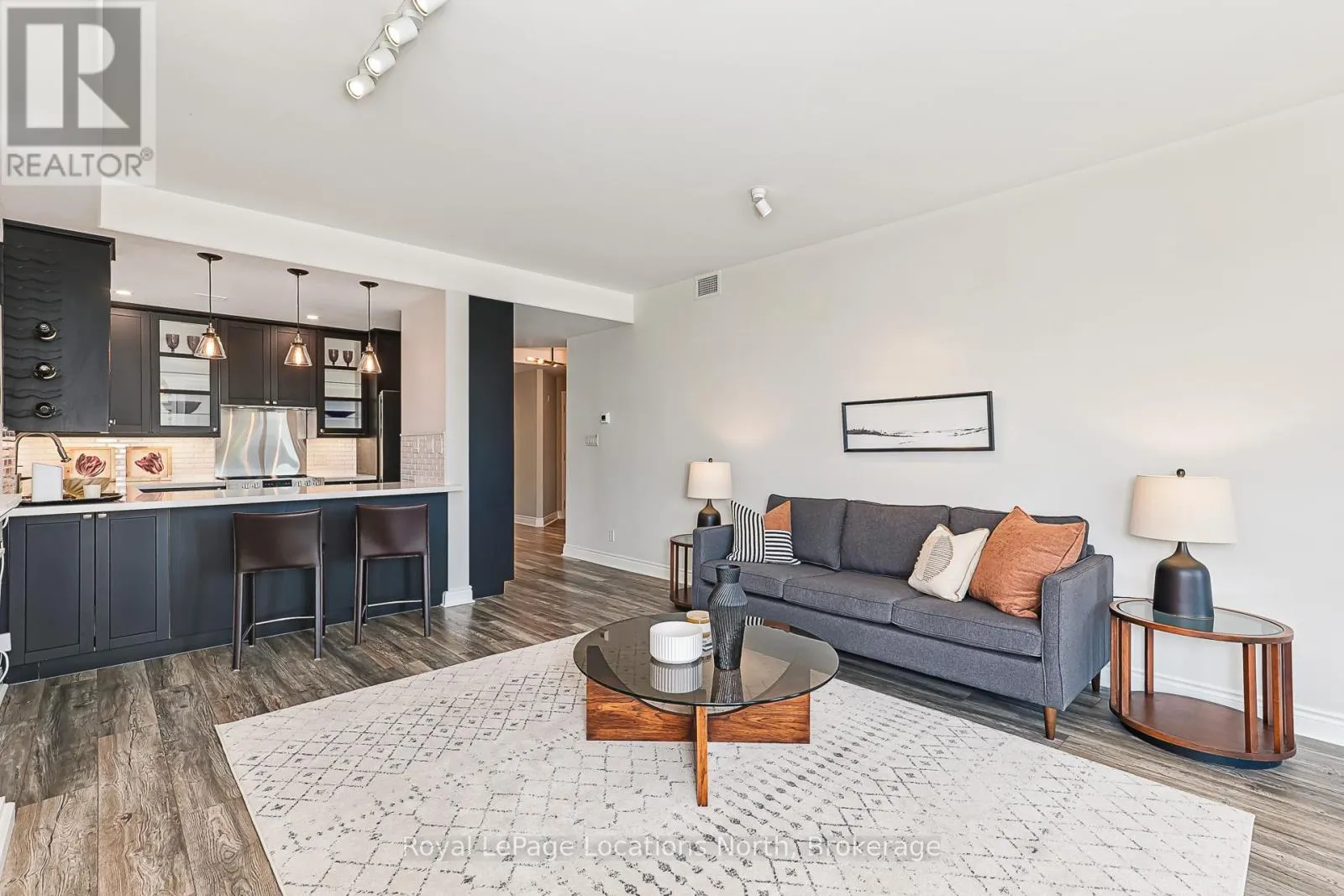 Cross Streets: Bay St E & Mill St. ** Directions: corner of Mill St & Bay St E. RIVERWALK! Just the name invites you to a rare lifestyle in downtown Thornbury. This highly desired building sits right alongside the Beaver River and offers a lovely walking trail by the river to downtowns shops and restaurants. This unit has arguably the best location in the building with your own 117 SF patio opening onto the quiet, private garden. You can park in a visitor spot to unload groceries right into the condo's great room, then take the car down to the underground garage at your convenience. Its second level corner location also affords the unit a plethora of light on almost three sides. A rare find! You'll love the primary suite set at one end of the condo with its walk-in closet and large ensuite bathroom. Two other bedrooms and a full bath serve additional family or guests in 1350 SF, and it shows beautifully! Over 2020-21, this condo had a stunning, extensive renovation - a new kitchen & appliances, two bathrooms, new flooring throughout, new furnace and hotwater tank, updated electrical, new fireplace insert, & updated lighting. One dedicated parking space (#15) is in the underground garage and there is plenty of visitor parking. The condo fee includes heat, water-sewer, cable & internet, only hydro is your expense. The building provides a roof top deck with stunning views over Georgian Bay and an attached exercise facility, a social room with kitchen, secured entry, a garbage chute and bicycle storage room. The building is adjacent to the waterfront park with tennis courts, playground and swing sets and is set in Thornbury - Georgian Bay's four season community just minutes to ski hills, golf courses, wineries, the Bay, hiking and cycling trails. Floorplans are attached to the Listing or ask LB. (id:27476)