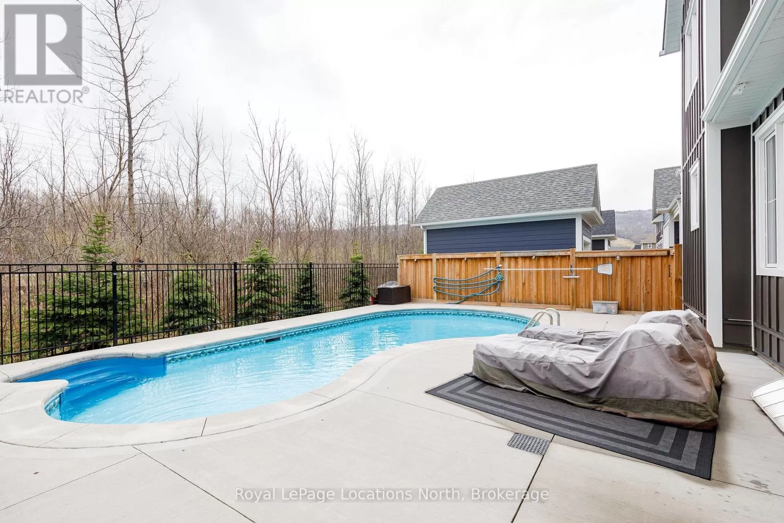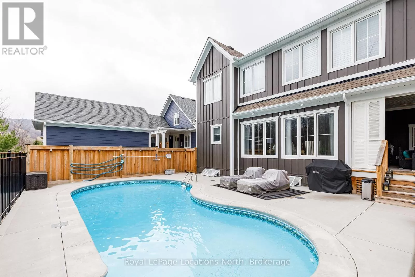 Cross Streets: MOUNTAIN RD TO CROSSWINDS TO YELLOW BIRCH. KEEP LEFT ON YELLOW BIRCH. ** Directions: Mountain Rd to Crosswinds to Yellow Birch, Stay left on Yellow Birch. Welcome to Windfall and this stunning 5 bdrm , 5 bath Churchill model with almost 3800 sq. ft. finished. Located with gorgeous views of Blue Mountain. Enter the elegant 2 storey foyer with its beautiful upgraded staircase with wrought iron railings. Walk past the private office/sitting room and separate dining rm and enter the open concept kitchen & great room running across the entire rear of the home overlooking the incredible pool & bush behind. This dream kitchen is loaded with upgrades- soft close drawers, Jenn-Air appliances including a built in microwave, wine fridge & gas stove. The oversized island with its granite counters offers the perfect place to enjoy the kitchen & overlook the family room with its gas fireplace and a walk out to the beautiful covered enclosed porch , barbecue area & pool. The laundry with its Maytag washer/dryer is upgraded with its floor tiles & walls of cabinets and offers an indoor entry to the garage. Upstairs you have 4 bedrooms- 2 are primary bedrooms with their own ensuites both with glass showers & walk in closets with custom built-ins. The main primary has a vaulted ceiling and a jetted tub in the ensuite. The media room is a fabulous addition with its wainscotting & crown moulding. The finished basement offers a spacious living area with an electric fireplace enclosed by a custom wall unit! The large bedroom is perfect for older children or guests with its custom 3 pc bath with glass shower. The fully fenced backyard with its 32 ft. long kidney shaped pool offers an oasis to enjoy all summer. This exquisite home offers 4 season enjoyment with only a 7 minute walk to the south chairlift at Blue Mountains. With no homes behind with forest and many additional trees, you will have year round privacy for relaxing in your own private spa-like area . This home is exquisite and must be seen to be fully appreciated. See list of many more upgrades in documents (id:27476)