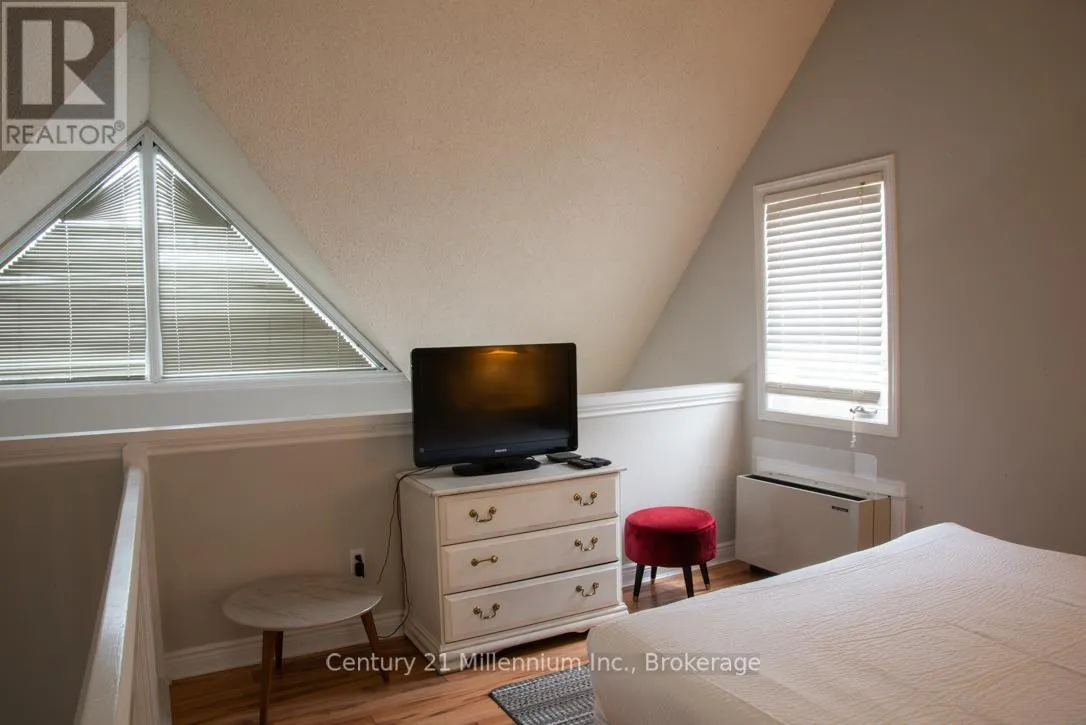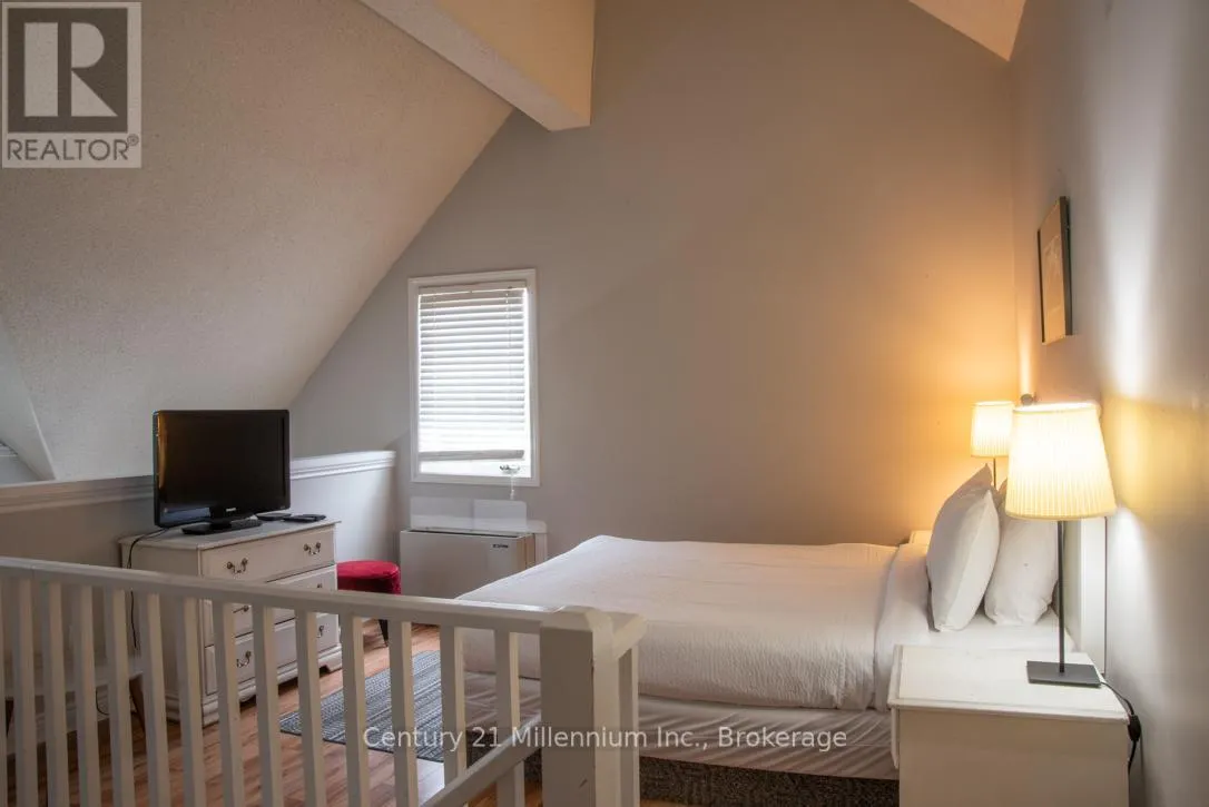 Cross Streets: Hwy 26 & Grey Rd 19. ** Directions: Grey Rd 19 to North Creek Resort. This TURN KEY fully furnished chalet loft suite currently enrolled in the Vacasa/Casago rental program to generate rental income when not in use, it's a win-win! This sunlit chalet just a minute's walk from the ski slopes & pool. Close to Georgian Bay, hiking trails and Collingwood. Cozy abode sleeps up to 6 guests and boasts an open-plan living and dining area alongside a full kitchen. Enjoy the community amenities such as the 2 hot tubs, summer heated swimming pool, tennis/pickleball courts, snow removal service right to the door, Rogers Ignite TV and internet, coin operated laundry. Included in condo fees - water, sewer, exterior building maintenance. Located close to the restaurant, pool and gateway to North lift at ski hill. Property is not part of BMVA, buyer to do due dilligence & consult with their accountant and lawyer prior to placing any offer. (id:27476)