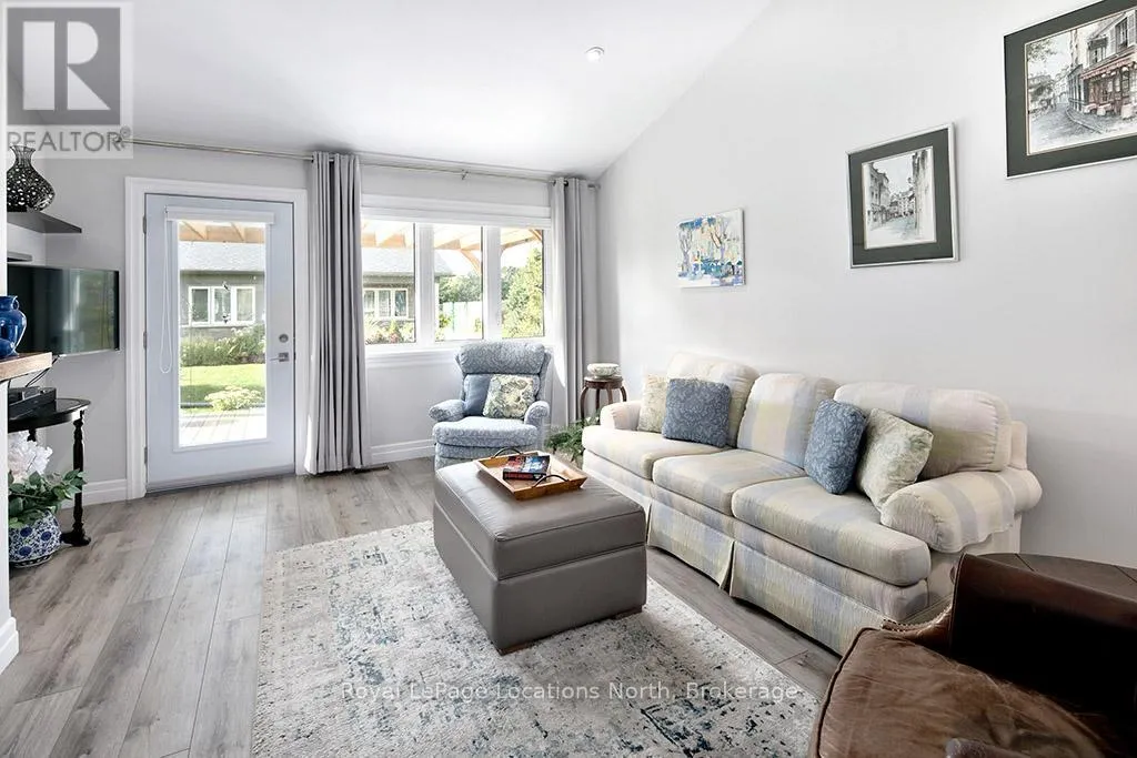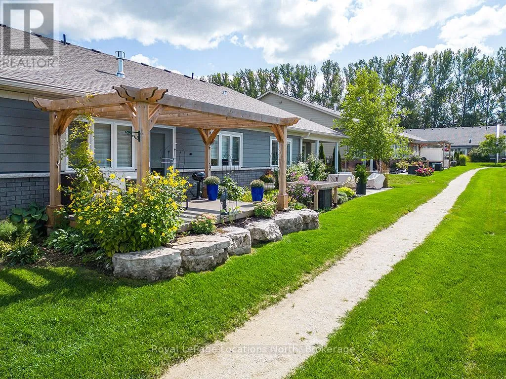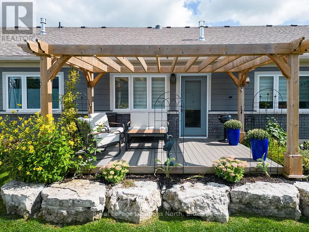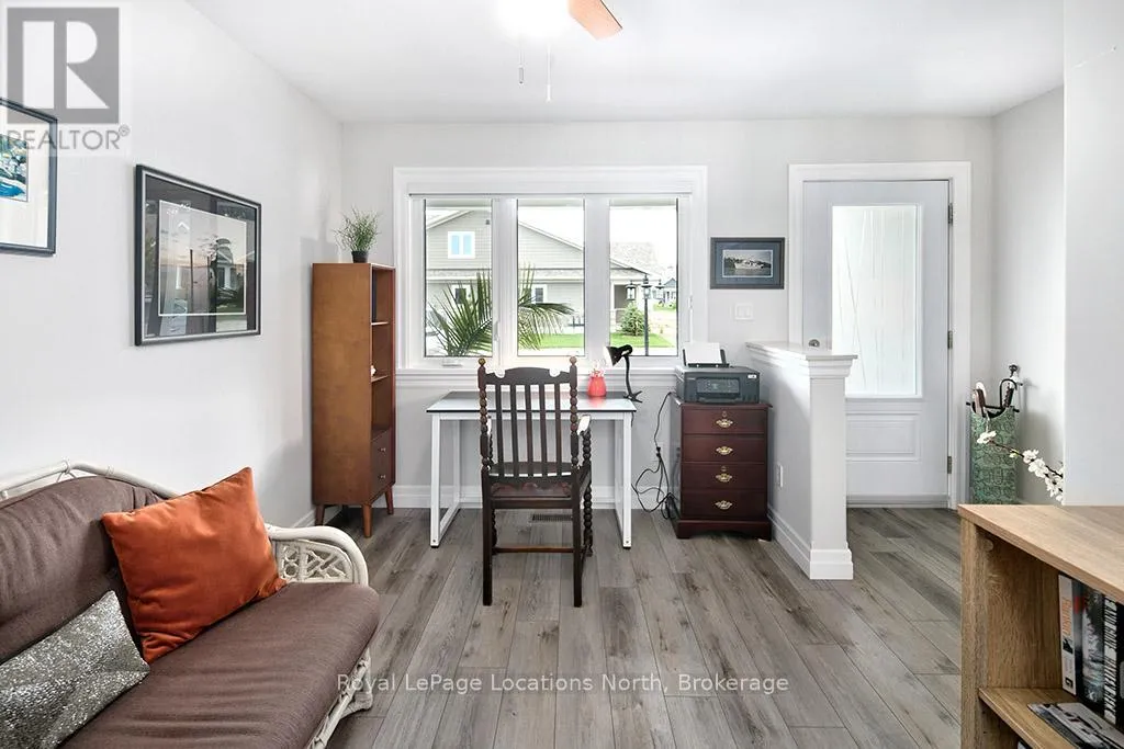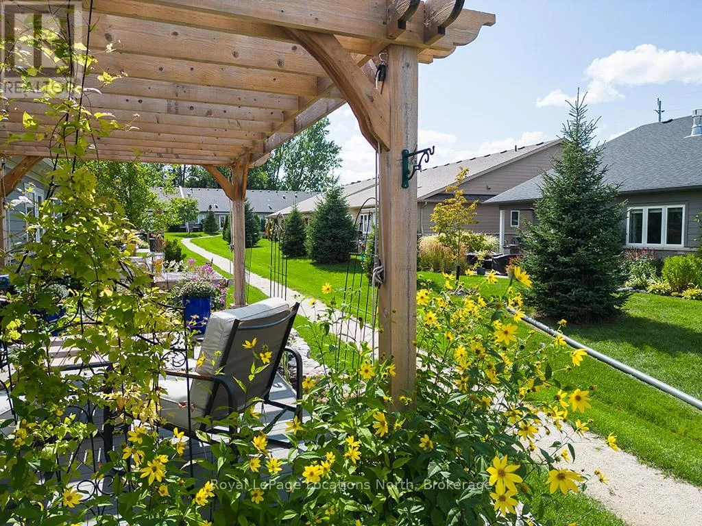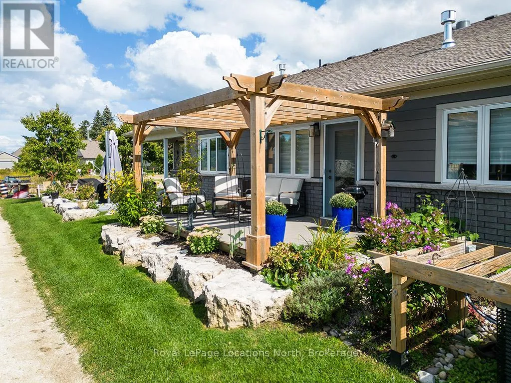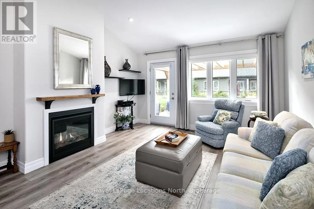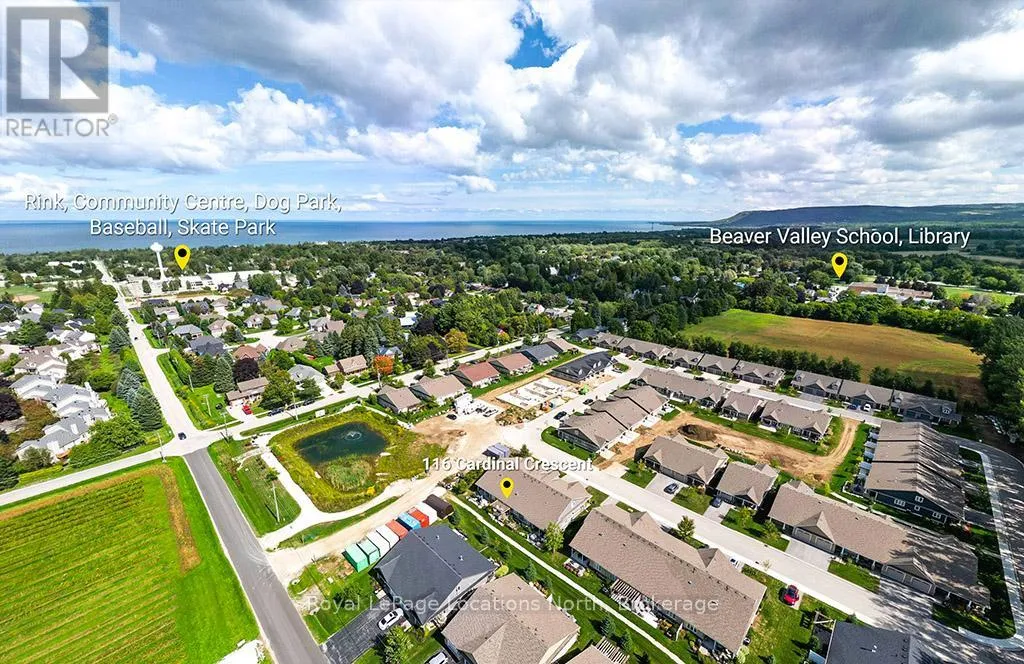 Cross Streets: Victoria St. S/Napier St West. ** Directions: Hwy 26 Thornbury to Victoria St south to Warbler Way to Cardinal Cres. Welcome to 116 Cardinal Crescent, a beautifully designed home with just over $64K in upgraded finishes in the highly sought-after 55+ community of Thornbury Meadows, offering easy, maintenance-free living in the heart of Thornbury. This thoughtfully planned residence features 2 bedrooms plus a main floor office/den, 2 full baths, and a convenient powder room. The office/den is ideal as a workspace or flexible guest room, easily accommodating a pull-out couch or Murphy bed. Upstairs, guests enjoy a spacious bedroom and full bath, enhanced by a solar tube that brightens the room. The staircase leading to the second level is also naturally lit with a solar tube. The open-concept living area is filled with light, highlighted by vaulted ceilings and a stunning gas fireplace. The sleek kitchen offers abundant storage with cabinets, drawers, and a pantry cupboard. Stone counters complement hardware-free push-open cabinetry, while a gorgeous island with casual seating and built-in wine storage adds style and function. Seamlessly connected to the dining and living areas, its perfect for entertaining. Step outside from the living room to a generous deck with pergola and roll shade, overlooking beautifully landscaped gardens and a rock retaining wall. Designed with accessibility in mind, the home includes a stone ramp at the front porch, portable ramps for garage and deck access, and heavy-duty grab bars in the primary ensuite's walk-in shower. All bathrooms feature stone counters, and toilets are fitted with bidet attachments. Garage with inside entry equipped with extra electrical outlets, 2 sized for EV chargers. Enjoy the benefits of an active and welcoming community, where neighbours gather and lifestyle amenities are at your doorstep. Located minutes from Thornbury's vibrant downtown shops, restaurants, marina, parks, golf, trails, and skiing, this home blends comfort, convenience, and community living. (id:27476)