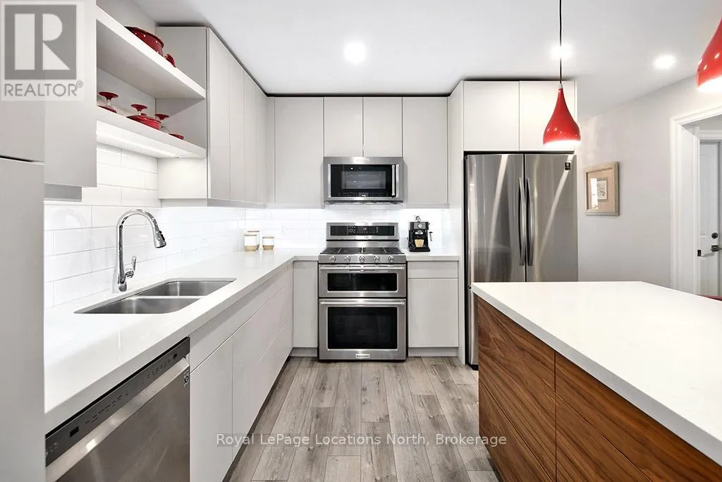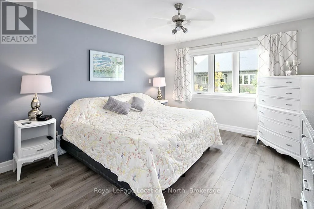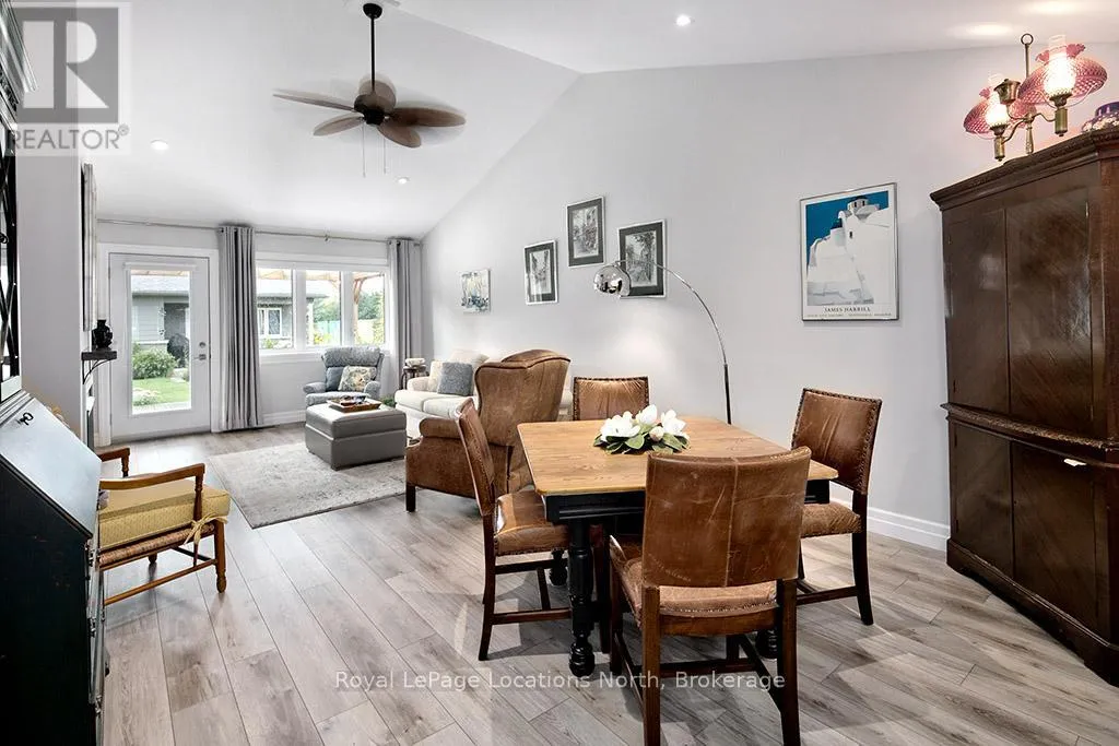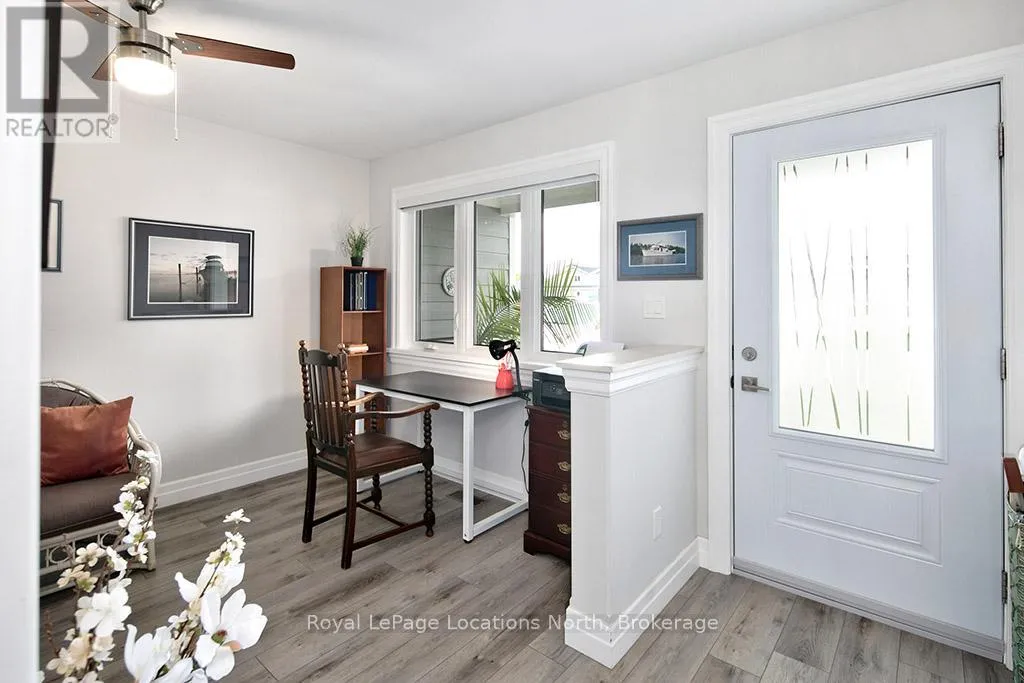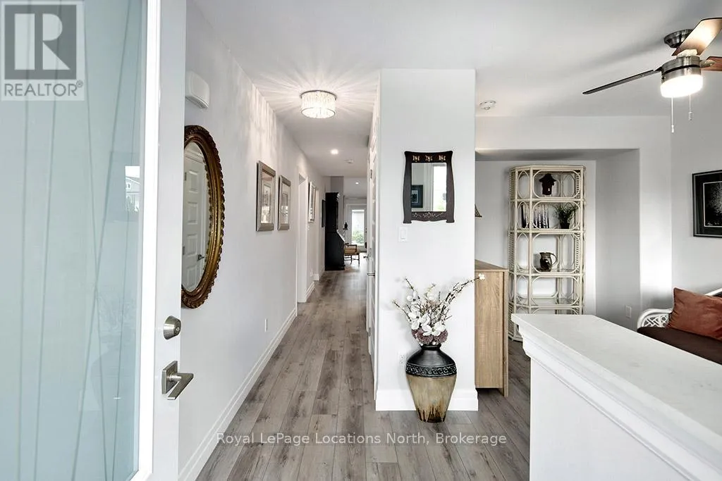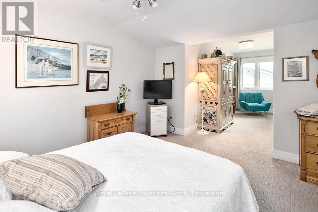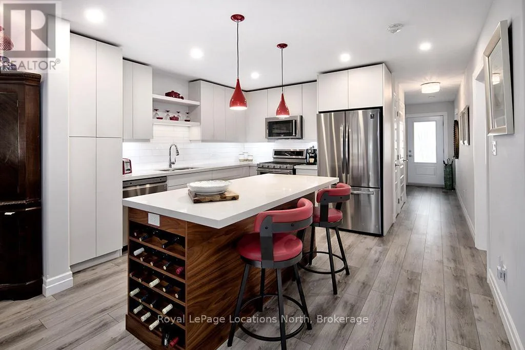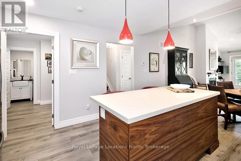 Cross Streets: Victoria St. S/Napier St West. ** Directions: Hwy 26 Thornbury to Victoria St south to Warbler Way to Cardinal Cres. Welcome to 116 Cardinal Crescent, a beautifully designed home with just over $64K in upgraded finishes in the highly sought-after 55+ community of Thornbury Meadows, offering easy, maintenance-free living in the heart of Thornbury. This thoughtfully planned residence features 2 bedrooms plus a main floor office/den, 2 full baths, and a convenient powder room. The office/den is ideal as a workspace or flexible guest room, easily accommodating a pull-out couch or Murphy bed. Upstairs, guests enjoy a spacious bedroom and full bath, enhanced by a solar tube that brightens the room. The staircase leading to the second level is also naturally lit with a solar tube. The open-concept living area is filled with light, highlighted by vaulted ceilings and a stunning gas fireplace. The sleek kitchen offers abundant storage with cabinets, drawers, and a pantry cupboard. Stone counters complement hardware-free push-open cabinetry, while a gorgeous island with casual seating and built-in wine storage adds style and function. Seamlessly connected to the dining and living areas, its perfect for entertaining. Step outside from the living room to a generous deck with pergola and roll shade, overlooking beautifully landscaped gardens and a rock retaining wall. Designed with accessibility in mind, the home includes a stone ramp at the front porch, portable ramps for garage and deck access, and heavy-duty grab bars in the primary ensuite's walk-in shower. All bathrooms feature stone counters, and toilets are fitted with bidet attachments. Garage with inside entry equipped with extra electrical outlets, 2 sized for EV chargers. Enjoy the benefits of an active and welcoming community, where neighbours gather and lifestyle amenities are at your doorstep. Located minutes from Thornbury's vibrant downtown shops, restaurants, marina, parks, golf, trails, and skiing, this home blends comfort, convenience, and community living. (id:27476)