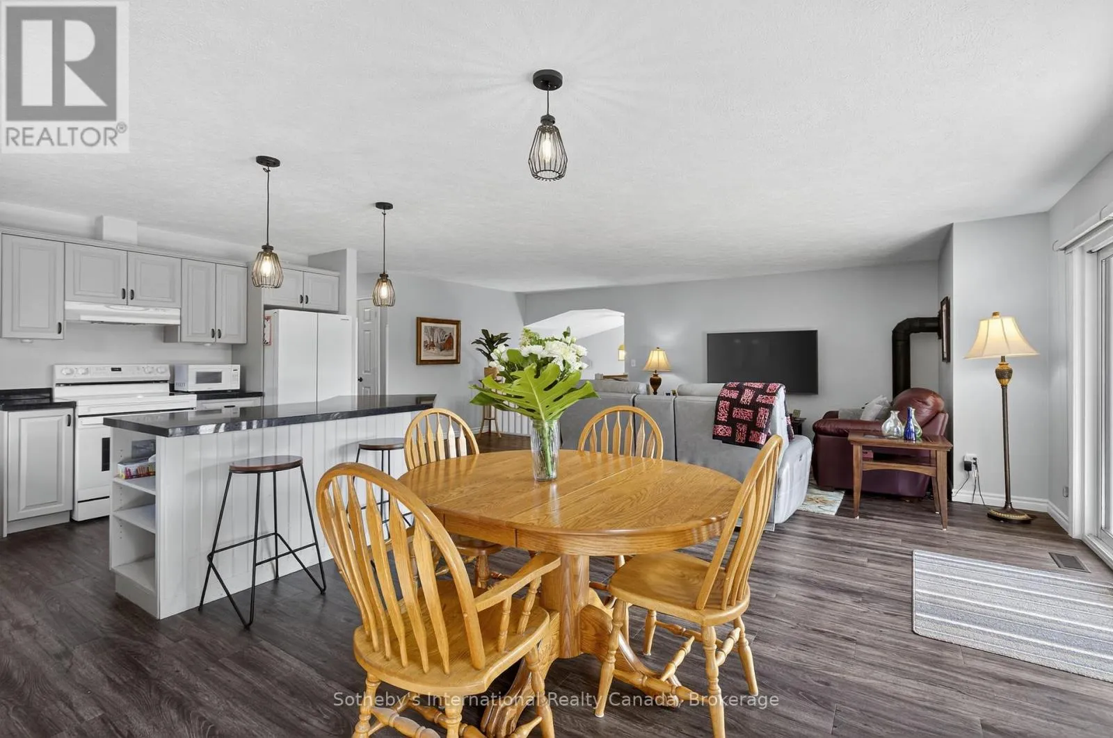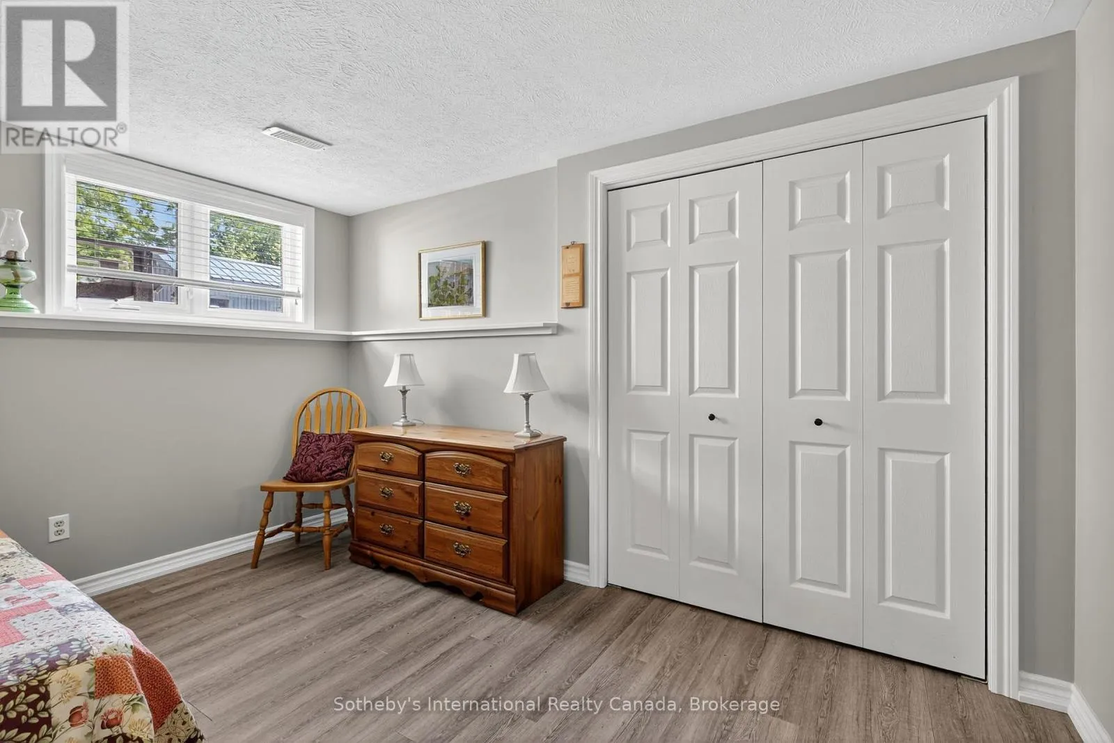 Cross Streets: Hwy 26 & Elgins Street S. ** Directions: Hwy 26 to Elgin Street S. east side. Beautiful 2+2 bedroom raised bunglow on a quiet dead end street in downtown Thornbury, steps to the waterfront and downtown shops and restaurants. This home has been meticulously cared for and updated since the current owner took possession and features an open plan main level with refaced kitchen, new quartz counters and new hardware and a gas f/p in living room. The primary features a new bathroom with tiled shower and a walk in closet. There is also a guest bedroom and 2 piece powder room. The lower level has 2 good sized guest bedrooms, with updated 4 piece bathroom, a laundry room and large rec. room. The garage has been drywalled, insulated and an epoxy floor installed along with expansive steel cabinetry. Other upgrades include all new flooring, paint, new rear cement patio with hot tub and shed, new furnance 2019, new a/c 2022. (id:27476)