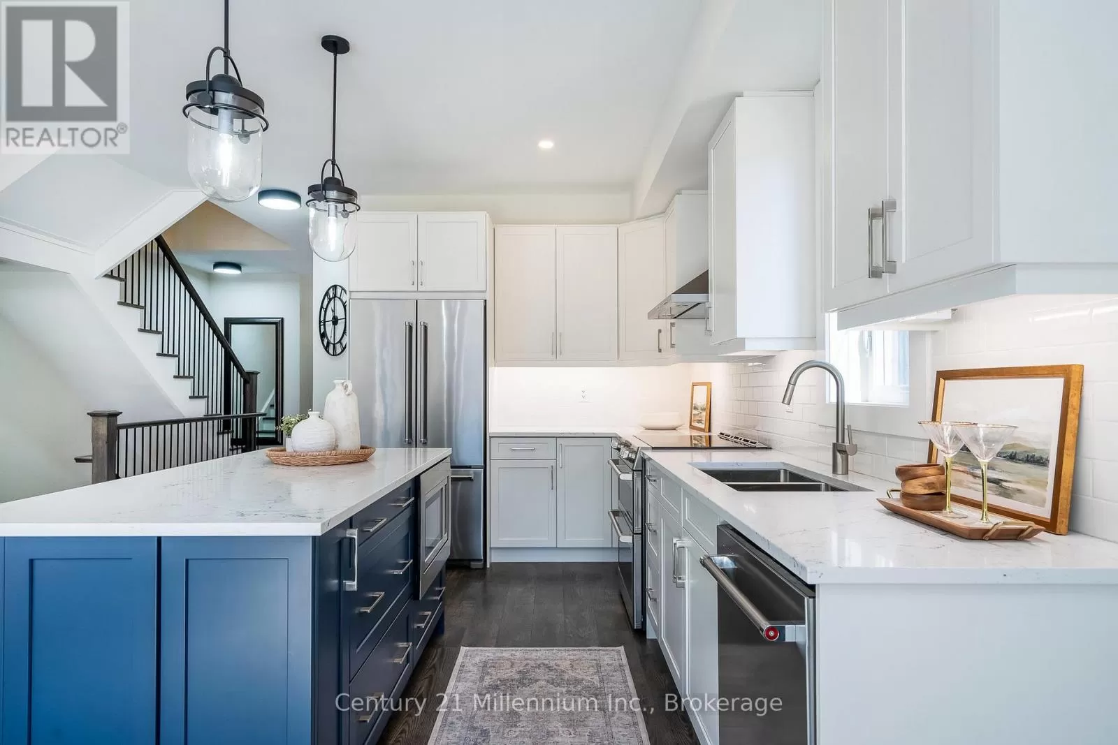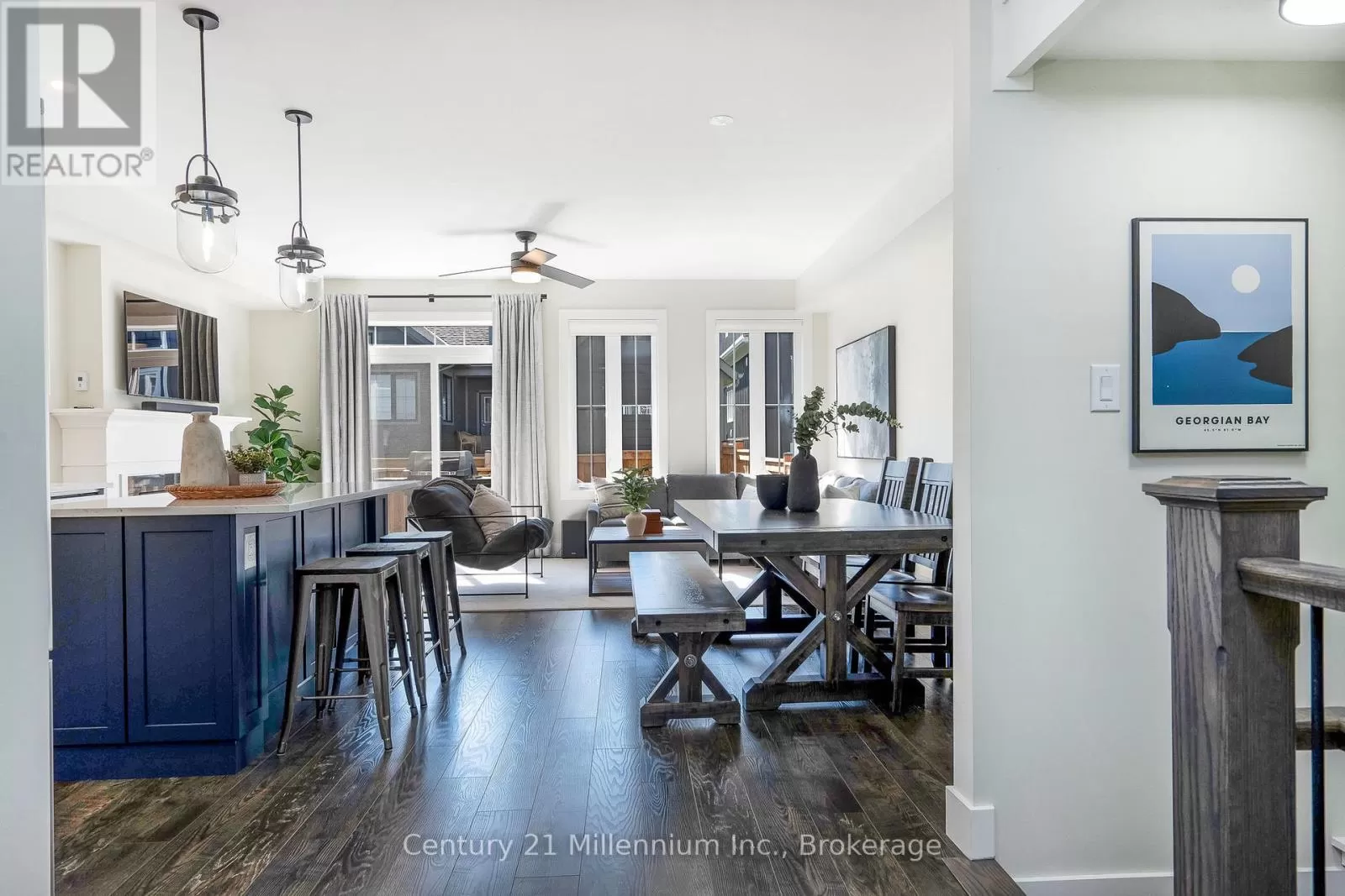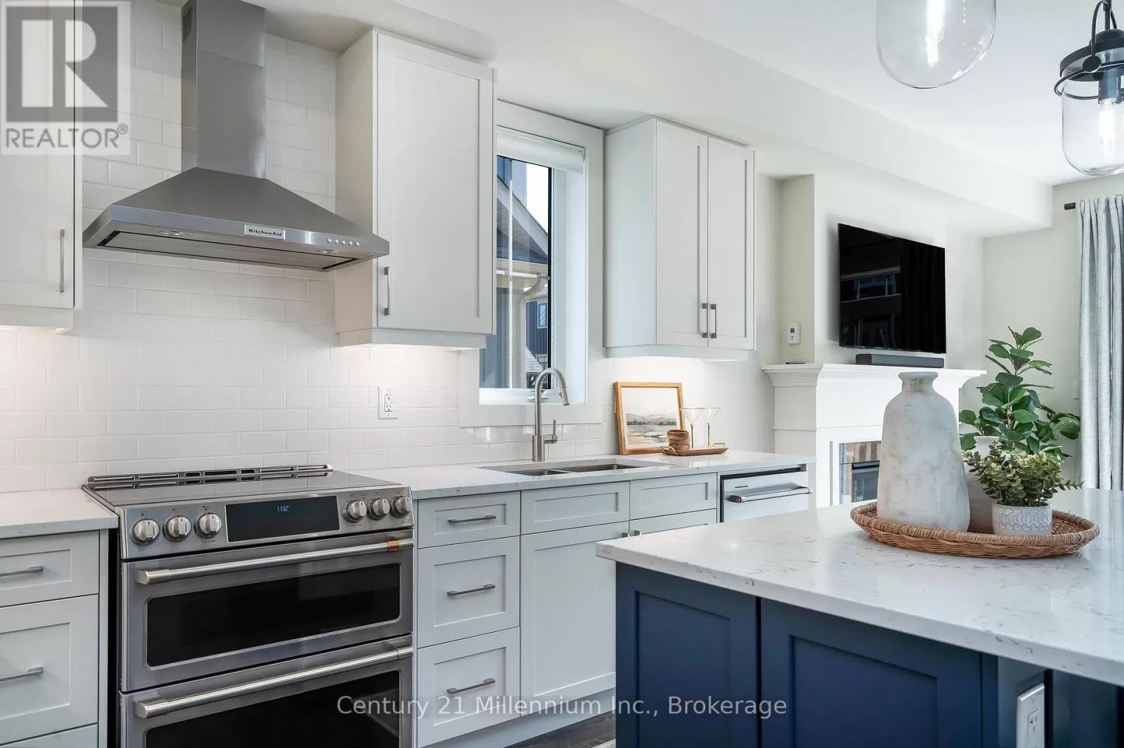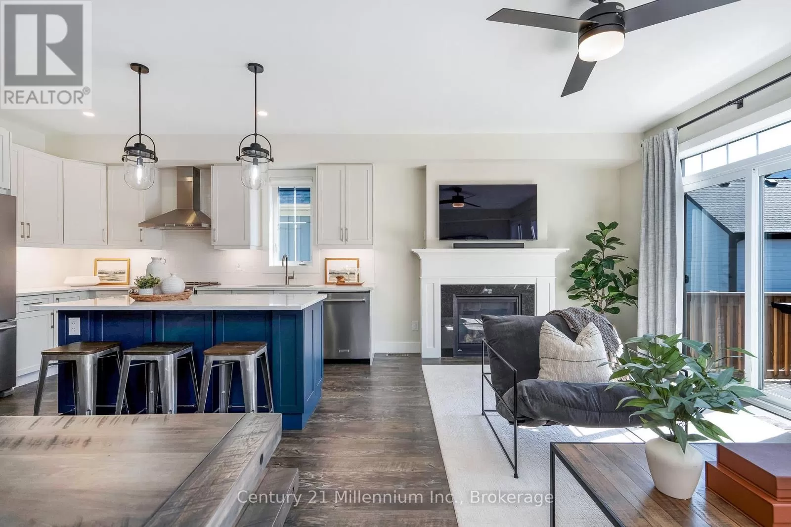 Cross Streets: Mountain Rd/Crosswinds. ** Directions: Mountain Rd West towards Blue Mtn, Right on Crosswinds, Left on Courtland. Stunning, rare 4-bedroom Mowat model is thoughtfully upgraded for both family living and four-season fun. This gorgeous home is carpet-free throughout. The stylish chef's kitchen offers stone counters, under-cabinet lighting, and a premium induction double oven designed for entertaining with ease. This coveted layout allows for a full-sized sectional sofa to enjoy cozy evenings in front of the gas fireplace. The spacious main living area flows seamlessly to the South-facing backyard, where you will enjoy afternoon sun in your fully fenced yard. A hot tub rough-in is ready for you to create the ultimate outdoor oasis. Upstairs, the owner's suite provides a spa-like ensuite with double sinks. Four generously sized bedrooms offer plenty of space for family or guests, while modern conveniences like a Ubiquity Wi-Fi mesh system ensure strong, reliable connectivity throughout the home - designed for remote work or streaming. The driveway and garage provide parking for up to three cars, making it as functional as it is stylish. Steps from Windfall's amenity centre 'The Shed', offering a year-round heated pool, hot tub, gym, sauna and community gathering hub. Whether you're looking for a full-time home or a four-season getaway, this property offers the perfect balance of practicality and luxury in the heart of the Blue Mountains. (id:27476)