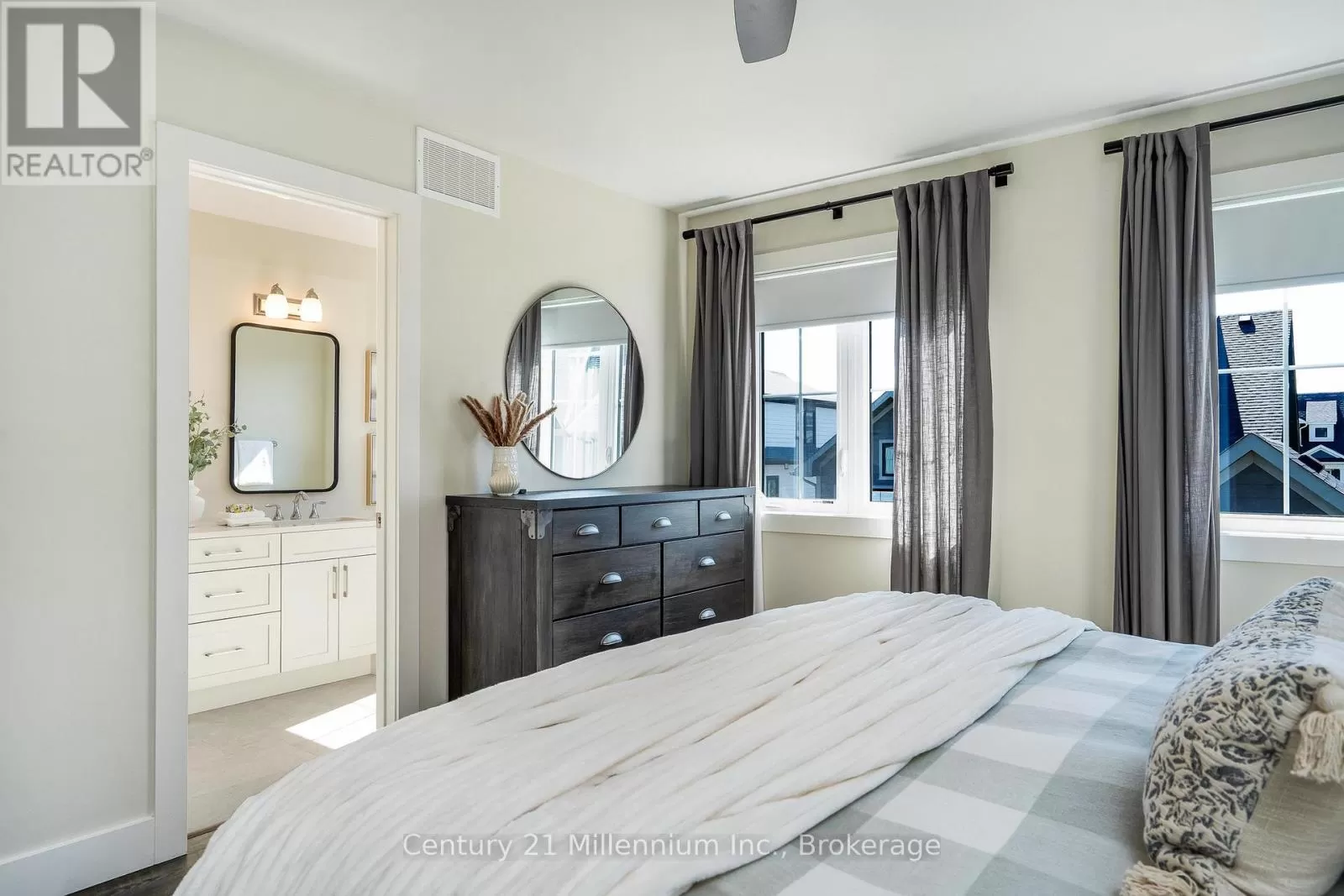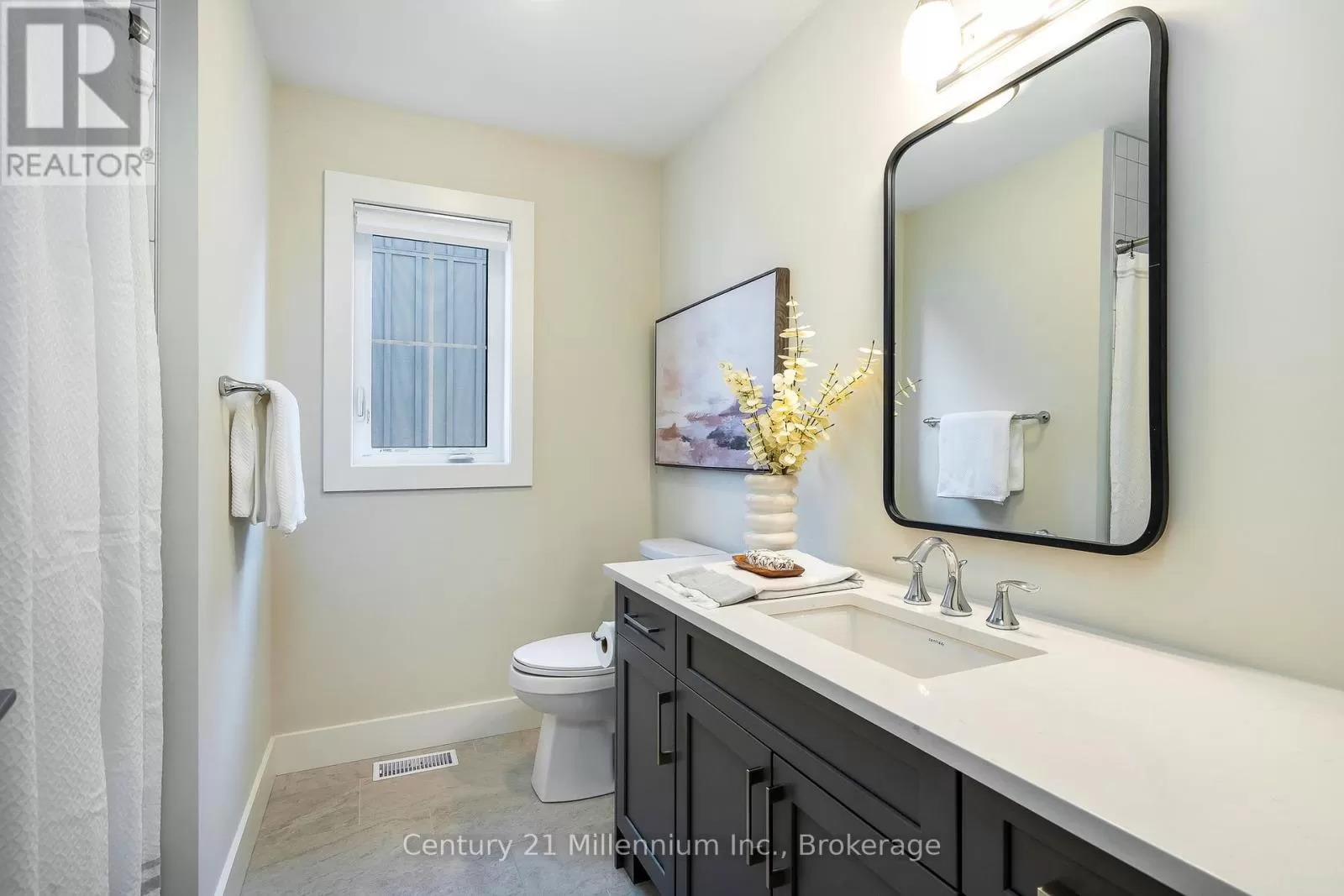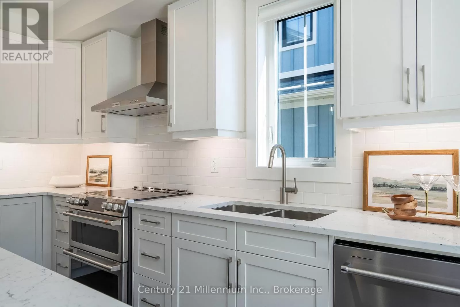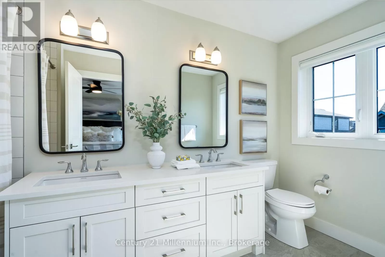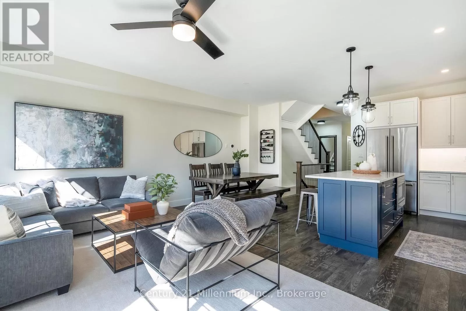 Cross Streets: Mountain Rd/Crosswinds. ** Directions: Mountain Rd West towards Blue Mtn, Right on Crosswinds, Left on Courtland. Stunning, rare 4-bedroom Mowat model is thoughtfully upgraded for both family living and four-season fun. This gorgeous home is carpet-free throughout. The stylish chef's kitchen offers stone counters, under-cabinet lighting, and a premium induction double oven designed for entertaining with ease. This coveted layout allows for a full-sized sectional sofa to enjoy cozy evenings in front of the gas fireplace. The spacious main living area flows seamlessly to the South-facing backyard, where you will enjoy afternoon sun in your fully fenced yard. A hot tub rough-in is ready for you to create the ultimate outdoor oasis. Upstairs, the owner's suite provides a spa-like ensuite with double sinks. Four generously sized bedrooms offer plenty of space for family or guests, while modern conveniences like a Ubiquity Wi-Fi mesh system ensure strong, reliable connectivity throughout the home - designed for remote work or streaming. The driveway and garage provide parking for up to three cars, making it as functional as it is stylish. Steps from Windfall's amenity centre 'The Shed', offering a year-round heated pool, hot tub, gym, sauna and community gathering hub. Whether you're looking for a full-time home or a four-season getaway, this property offers the perfect balance of practicality and luxury in the heart of the Blue Mountains. (id:27476)