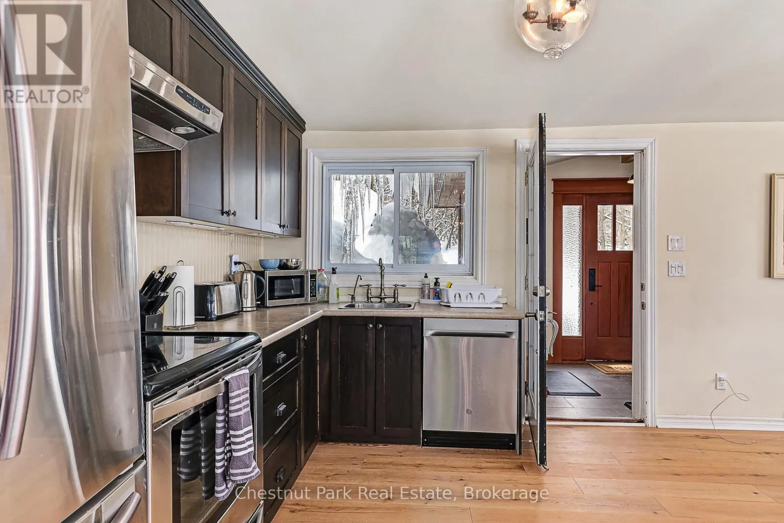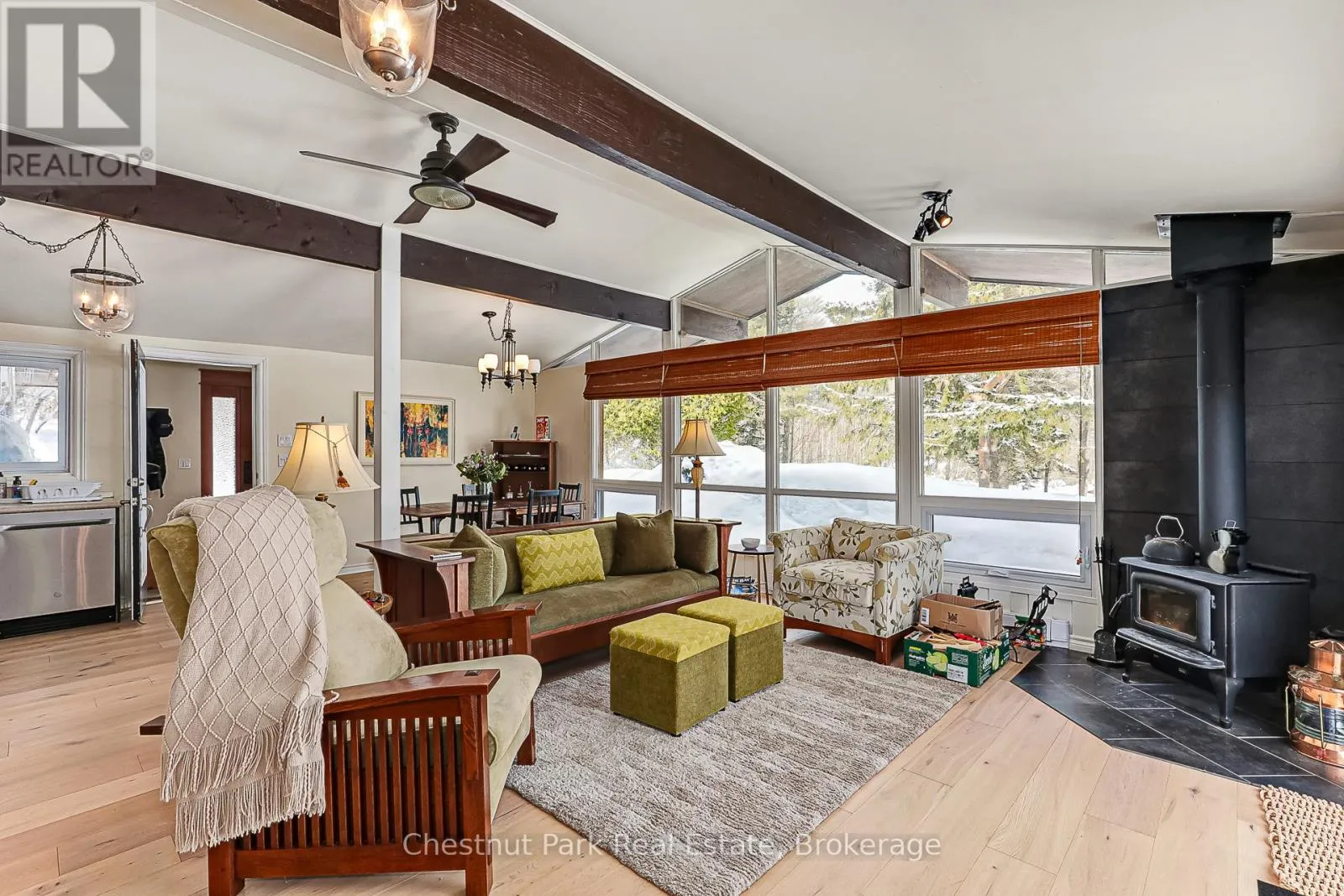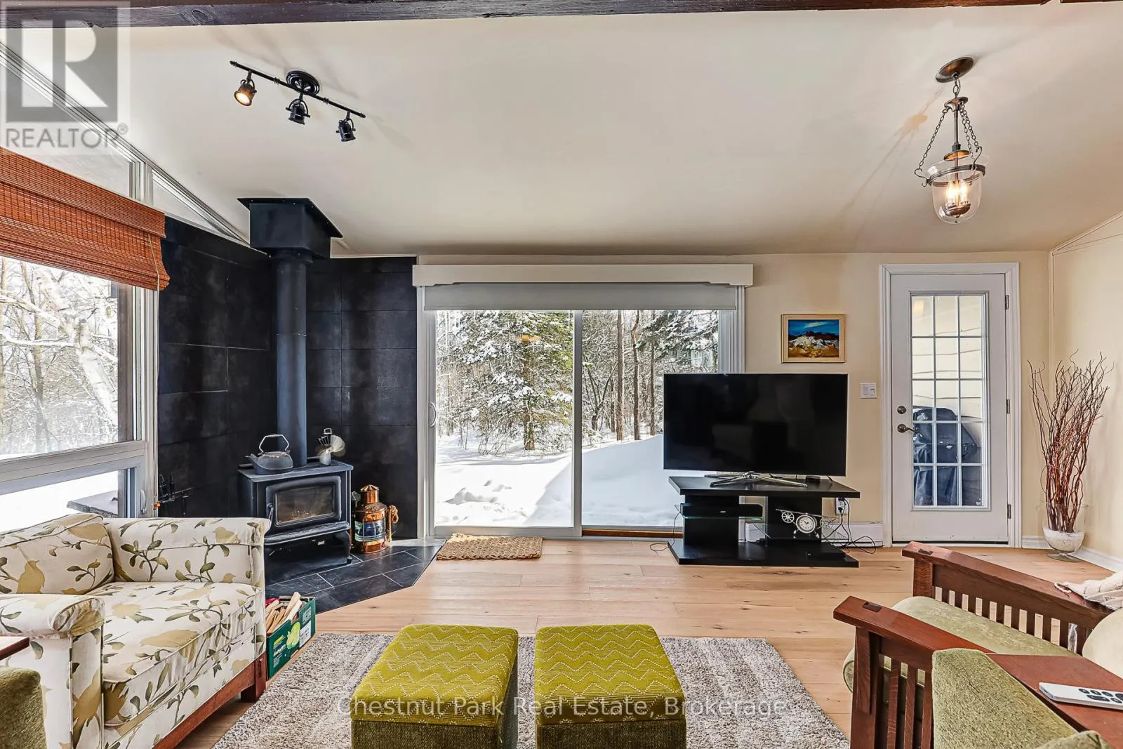Cross Streets: Castleview and Northmount. ** Directions: Grey Road 19 to Northmount Road to Castleview Road to #116 on the left. CASTLE GLEN CHALET YOUR PERFECT SKI SEASON RETREAT-This is the ski season get away you've been dreaming of. Peace & tranquility await at this 3 Bedroom idyllic cute and cozy chalet surrounded by nature yet only a few minutes drive to Osler Ski Club, minutes to downtown Collingwood and Blue Mountain Village. Open concept Living/Dining/Kitchen with a cozy wood stove to relax by after a fun day on the slopes. Nestled in the sought after community of Castle Glen you can enjoy lazy days immersing yourself in the beauty of the location from the bright and expansive windows or head to the slopes for action, cross country ski or snow shoes, browse the designer shops in Collingwood/The Village and enjoy the local nightlife with an array of restaurants to choose from the choices are endless in this fantastic 4 Season destination. Pets are welcome. LBO to write Lease paperwork. $1,000 per month rented for the Utility Deposit/Damage Deposit. Snow Removal paid by owner. ALSO LISTED FOR SALE MLS X12002652 (id:27476)