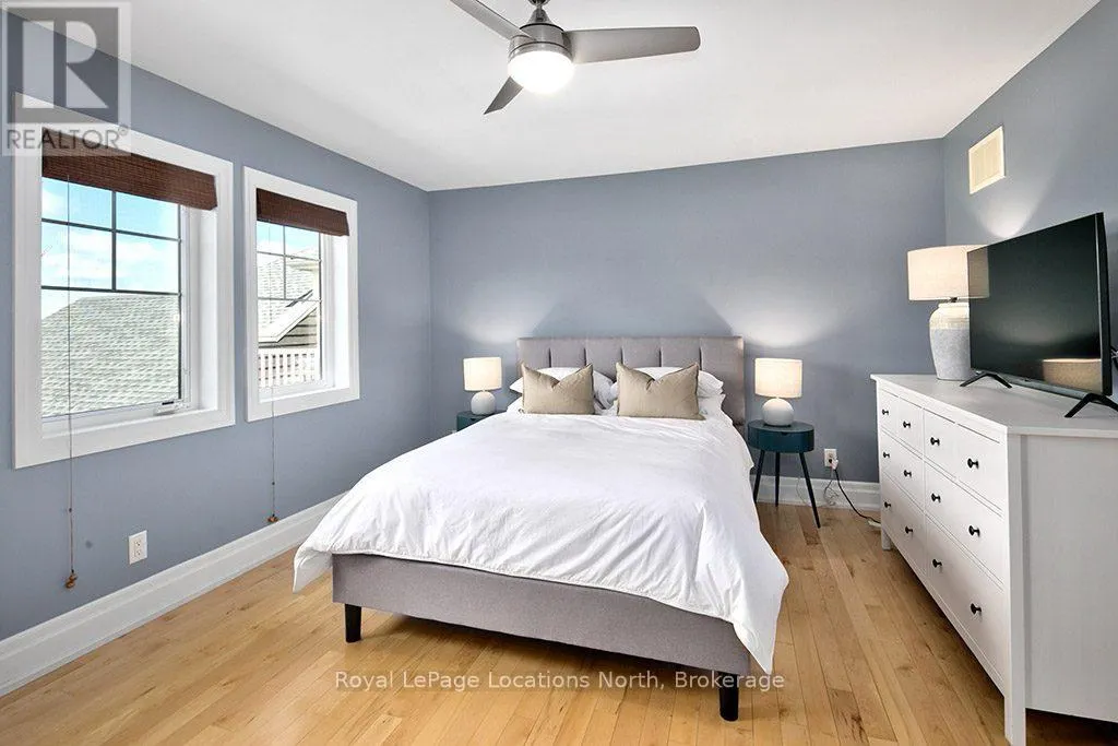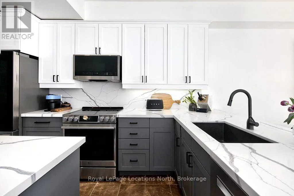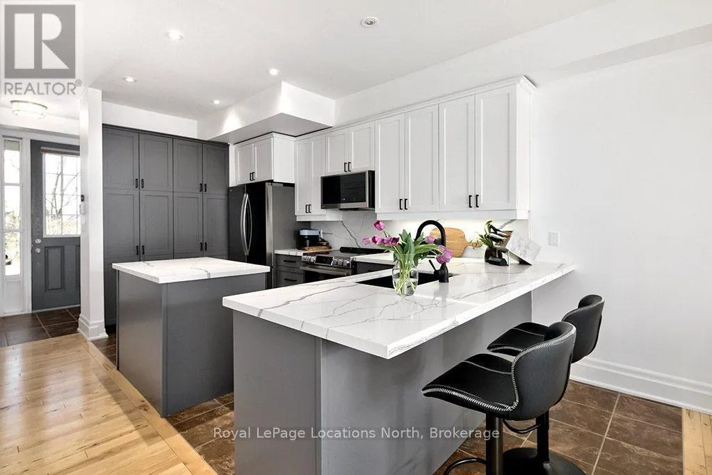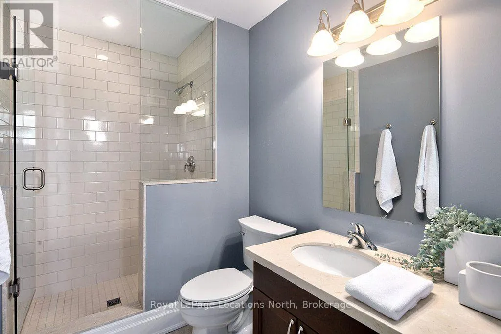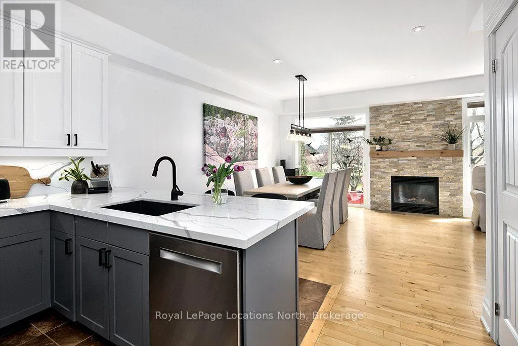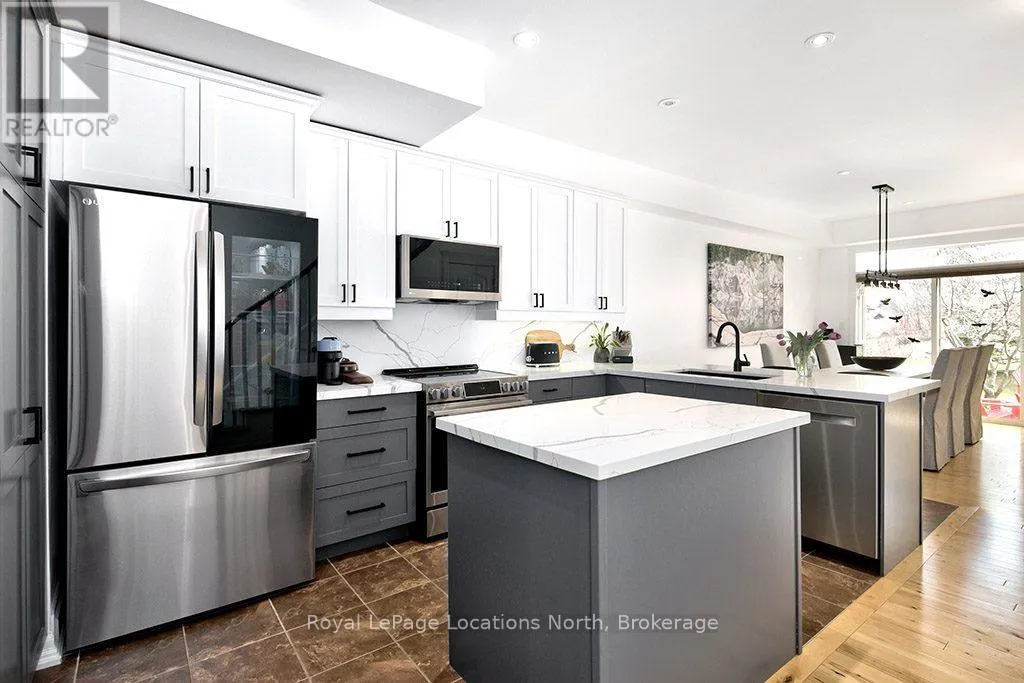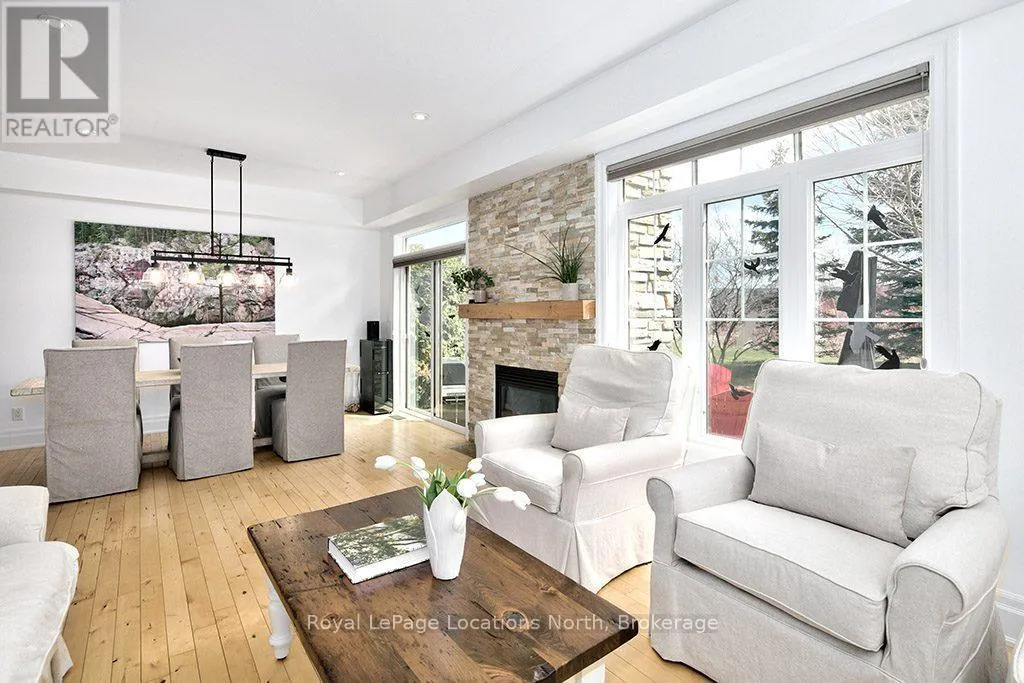 Cross Streets: HWY 26 W to Lora Bay Drive, left on West Ridge Dr, left on Landry Lane. Unit 1 is on the far right. ** Directions: Hwy 26 to Lora Bay Drive. Left to West Ridge at the Traffic Circle. Left on Landry Lane. Beautiful, updated end-unit Villa in the prestigious Lora Bay community offering low-maintenance, four-season living just minutes from downtown Thornbury.Step inside to discover a bright and welcoming open-concept main floor, featuring hardwood floors throughout and a stylishly refreshed kitchen (2024) with LG Studio appliances, sleek countertops, modern backsplash and freshly painted cabinets. The kitchen flows effortlessly into the dining area and generous living room, highlighted by a striking stone-surround gas fireplace and a walkout to a private stone patio framed by mature trees and gardens ideal for quiet mornings or outdoor entertaining. A 2pc powder room completes the main level.Upstairs, you'll find two spacious bedrooms, each with its own private ensuite bathroom. The primary suite also has a walk in closet. A laundry area and additional storage are located just off the landing for convenience.The fully finished lower level has a large rec space/bedroom perfect for guests, along with a stylish 3pc bathroom.An attached 2-car garage offers ample storage for vehicles, bikes, and recreational gear, enhancing the homes functionality.Located in the coveted Lora Bay waterfront community, residents enjoy access to golf, two beaches, a members-only lodge, restaurant, and more. All this, just 5 minutes to downtown Thornbury, where you'll find award-winning restaurants, coffee shops, boutiques, and close proximity to the areas private ski and golf clubs. (id:27476)