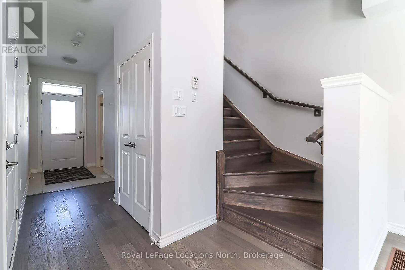 Cross Streets: HWY 26/DELPHI. ** Directions: HWY 26 TO DELPHI TO ROSIE. Location, Location! Annual rental opportunity with Georgian Peaks Ski Club on one side and Georgian Bay on the other. This well-appointed townhome is perfectly situated in one of the areas most desirable communities. Step inside to a welcoming entryway with a 2-piece bath, closet, and inside access to the single-car garage. The open-concept kitchen and living room feature plenty of natural light and a dining area that's perfect for family dinners. Patio doors open to a private backyard backing onto trees with views of the ski hills, an ideal space to relax after a day outdoors. Upstairs, the spacious primary bedroom includes a walk-in closet and a stunning ensuite with a large glass shower, double sinks, and natural light. Two additional bedrooms, each with generous closet space, share a bright 4-piece bathroom. The home also offers a full unfinished basement for storage, central air, and visitor parking conveniently located across the street. This is a rare chance to live between the slopes and the Bay in a home that combines comfort, convenience, and unbeatable location. Rental application, full credit report w score, 2 recent paystubs, rental history, photo ID and employment letter required. First and last. No smoking and no pets please. (id:27476)
