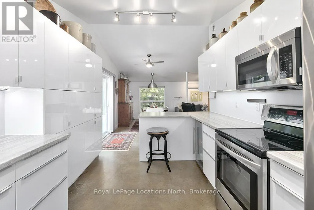 HWY 26 towards Meaford, past foodland, turn left onto Peel St S. Exceptional Multi-residential Investment Opportunity in Thornbury!Set on 4.6 acres in the heart of Thornbury, this unique property offers both immediate income and incredible development potential. The property consists of 9 fully tenanted rental unitsa mix of one- and two-bedroom townhomes.A proposed development plan outlines the potential for up to 30 units (subject to approvals), making this a rare opportunity for investors or developers looking to expand in one of the areas most sought-after communities.The main residence features a spacious living, dining, and kitchen area with a bright white kitchen, ample cupboard space, peninsula seating, and doors opening to a private back deck surrounded by mature trees. With 2 bedrooms and 2 bathrooms, its ideal as an owners unit or for additional rental income.Other units on the property provide a steady income stream, with all currently leased. Serviced by town water and septic, the property offers flexibility for future plans while continuing to deliver returns today.Perfectly located, its within walking distance to Downtown Thornbury, minutes across the road to Georgian Bay, and only a short drive to private ski and golf clubs in The Blue Mountains.Whether youre looking to sit back and collect rental income or explore the development potential, this property is a standout investment in Southern Georgian Bay.Square footage, bedroom/bathroom count and interior photos/video are from the main unit. (id:27476)