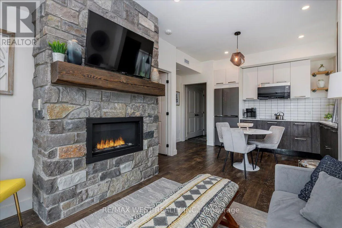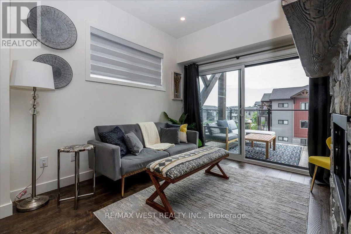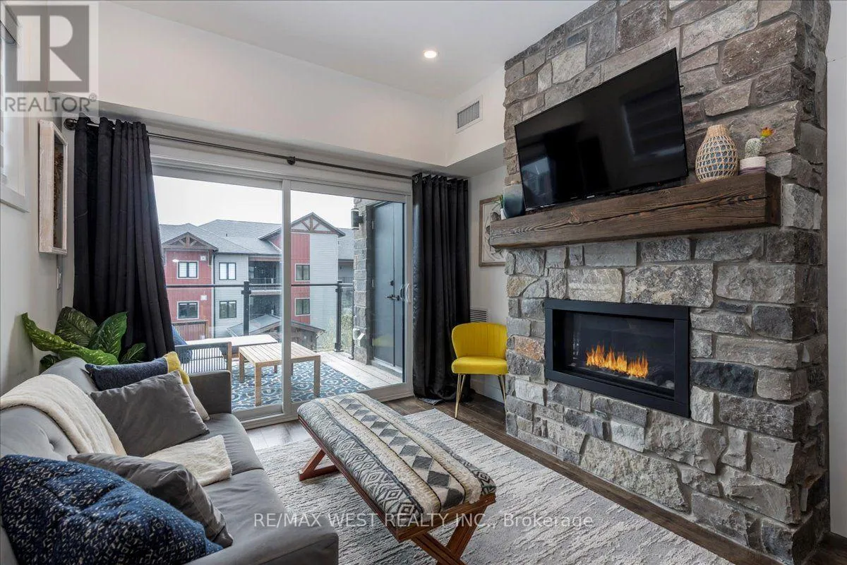 Cross Streets: Mountain Rd & Grey County Rd 21. ** Directions: Mountain Road, North on Grey Rd 21, West on Beckwith Lane. Mountain Escape Meets Modern Comfort Seasonal Short-Term Living at Mountain House! Welcome to 12 Beckwith Lane, Unit 301, a stunning penthouse corner-unit in the sought-after Aspire Building at Mountain House at Windfall. Designed for those who embrace the outdoors and crave relaxation, this bright and airy chalet-inspired retreat offers breathtaking natural light from expansive windows and sleek, rustic finishes throughout. Step into an open-concept living space highlighted by a floor-to-ceiling stone fireplace with a rustic wood mantle, seamlessly complementing the charming sliding barn-board door leading to the guest bedroom. High-end built-in Panasonic appliances, in-suite laundry with extra storage, and tons in builder upgrades add to the homes upscale appeal. Take in views of Blue Mountains ski hills from your private, sun-drenched balcony complete with a gas BBQ hookup and a bonus outdoor utility room for additional storage. As a resident at Mountain House, you'll have exclusive access to Zephyr Springs, a Nordic-inspired wellness oasis featuring year-round hot and cold outdoor pools, a rejuvenating sauna, a state-of-the-art fitness center, and a cozy après-ski lodge with a two-way fireplace leading to a beautifully landscaped outdoor haven. Nestled in one of the community's most private locations, Aspire offers a peaceful retreat surrounded by nature while remaining just steps from scenic trails and minutes from downtown Collingwood and Blue Mountain Resort. Whether you're hitting the slopes, unwinding in the spa, or exploring the great outdoors, this is the perfect seasonal escape! List Price based on 4-month rental. (id:27476)