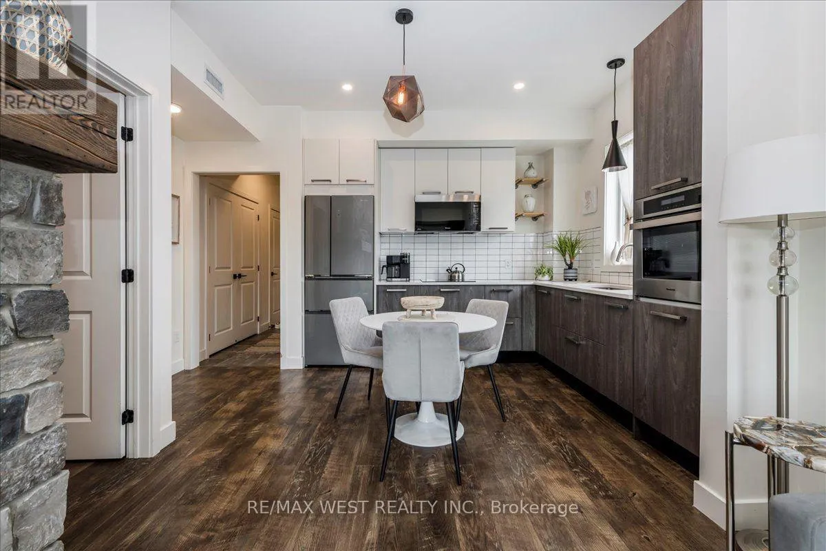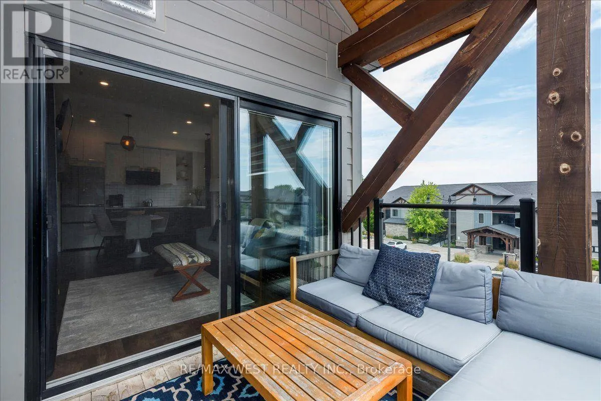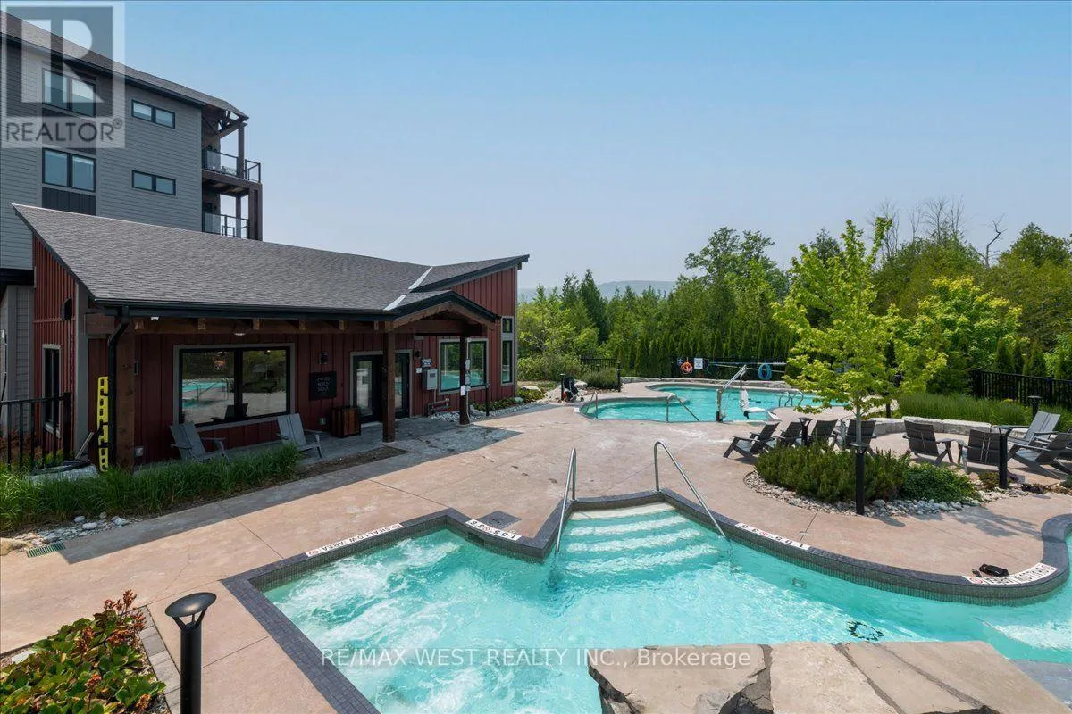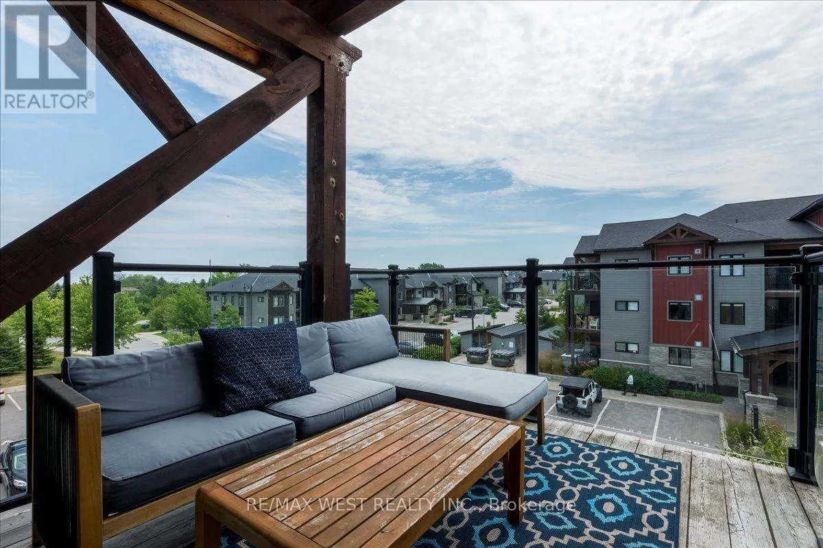 Cross Streets: Mountain Rd & Grey County Rd 21. ** Directions: Mountain Road, North on Grey Rd 21, West on Beckwith Lane. Mountain Escape Meets Modern Comfort Seasonal Short-Term Living at Mountain House! Welcome to 12 Beckwith Lane, Unit 301, a stunning penthouse corner-unit in the sought-after Aspire Building at Mountain House at Windfall. Designed for those who embrace the outdoors and crave relaxation, this bright and airy chalet-inspired retreat offers breathtaking natural light from expansive windows and sleek, rustic finishes throughout. Step into an open-concept living space highlighted by a floor-to-ceiling stone fireplace with a rustic wood mantle, seamlessly complementing the charming sliding barn-board door leading to the guest bedroom. High-end built-in Panasonic appliances, in-suite laundry with extra storage, and tons in builder upgrades add to the homes upscale appeal. Take in views of Blue Mountains ski hills from your private, sun-drenched balcony complete with a gas BBQ hookup and a bonus outdoor utility room for additional storage. As a resident at Mountain House, you'll have exclusive access to Zephyr Springs, a Nordic-inspired wellness oasis featuring year-round hot and cold outdoor pools, a rejuvenating sauna, a state-of-the-art fitness center, and a cozy après-ski lodge with a two-way fireplace leading to a beautifully landscaped outdoor haven. Nestled in one of the community's most private locations, Aspire offers a peaceful retreat surrounded by nature while remaining just steps from scenic trails and minutes from downtown Collingwood and Blue Mountain Resort. Whether you're hitting the slopes, unwinding in the spa, or exploring the great outdoors, this is the perfect seasonal escape! List Price based on 4-month rental. (id:27476)