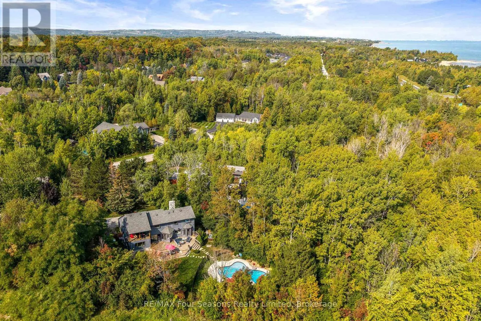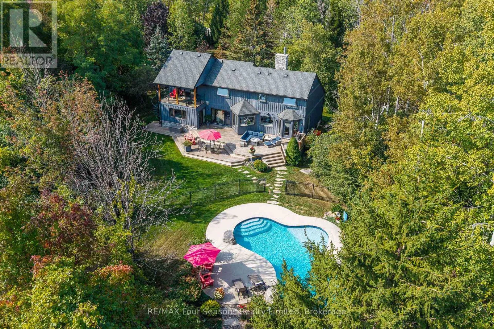 Cross Streets: Grey Road 40 and Indian Circle. ** Directions: Highway 26 to Grey Road 40 to Indian Circle. Nestled at the end of a quiet cul-de-sac and set on nearly an acre (0.969), this exceptional 4-bedroom, 3-bathroom residence offers the perfect blend of privacy, luxury, and lifestyle. Backing directly onto the 14th hole of the prestigious Georgian Bay Golf Club, the property is surrounded by mature landscaping and serene natural beauty. Inside, sunlight pours through expansive windows, highlighting tranquil views of the gardens, pool, and fairways. The thoughtfully designed kitchen features Caesarstone counters, induction cooktop, walk-in pantry, and warm hickory floors, flowing seamlessly into inviting living spaces anchored by two gas fireplaces. A built-in Sonos sound system ensures your favorite music follows you throughout the home. The main floor includes a versatile bedroom with walkout access to the deck ideal as a guest suite or convenient primary. Upstairs, two spacious bedrooms accompany the luxurious primary suite, complete with spa-inspired ensuite, walk-in closet, and a private deck overlooking lush greenery perfect for morning coffee or evening relaxation. The newly renovated lower level expands the living space with fresh finishes, vinyl plank flooring, and a cozy fireplace. With direct walkout access to the backyard, its the ultimate après-ski lounge or retreat after a day on the course. Outdoors, the home shines as a private oasis designed for relaxation and entertaining. Pebble Tec in-ground pool, hot tub, expansive deck, and fully fenced yard provide both comfort and peace of mind. Blending sophistication, comfort, and the best of Georgian Bay living, this one-of-a-kind retreat is a rare offering not to be missed. (id:27476)