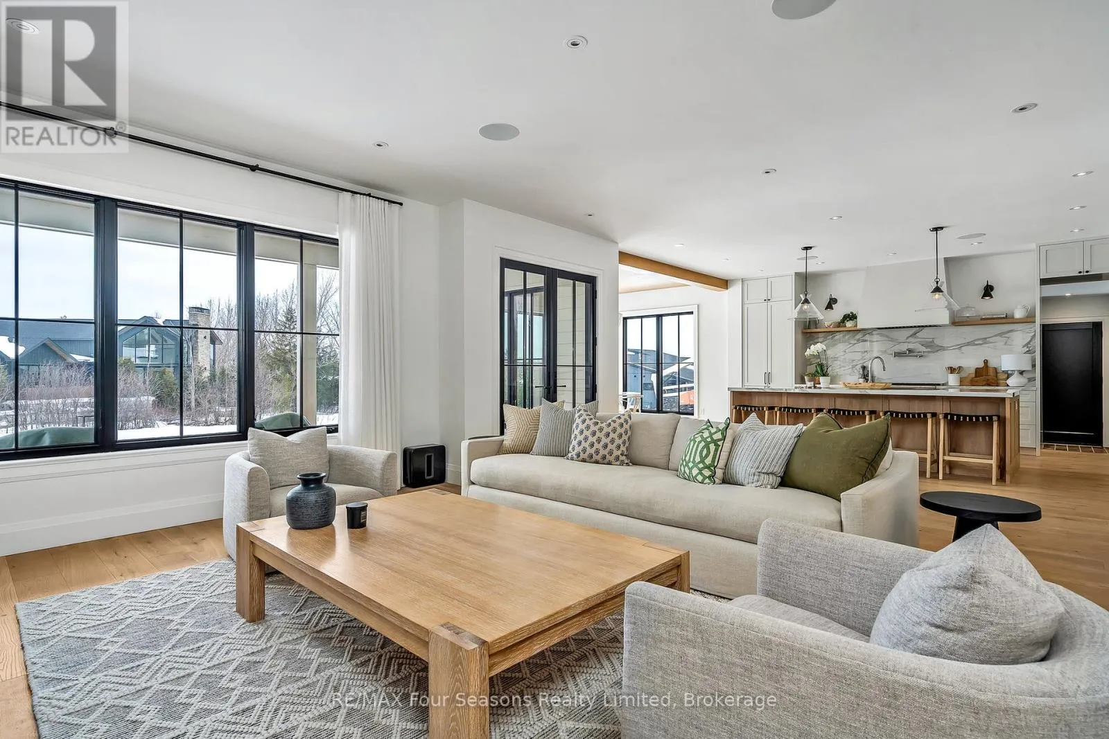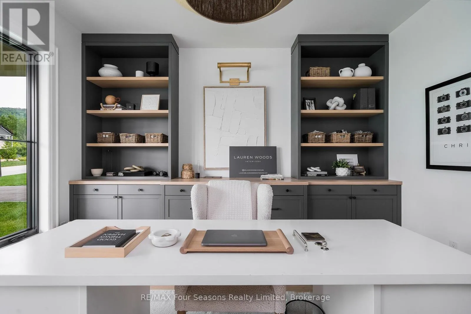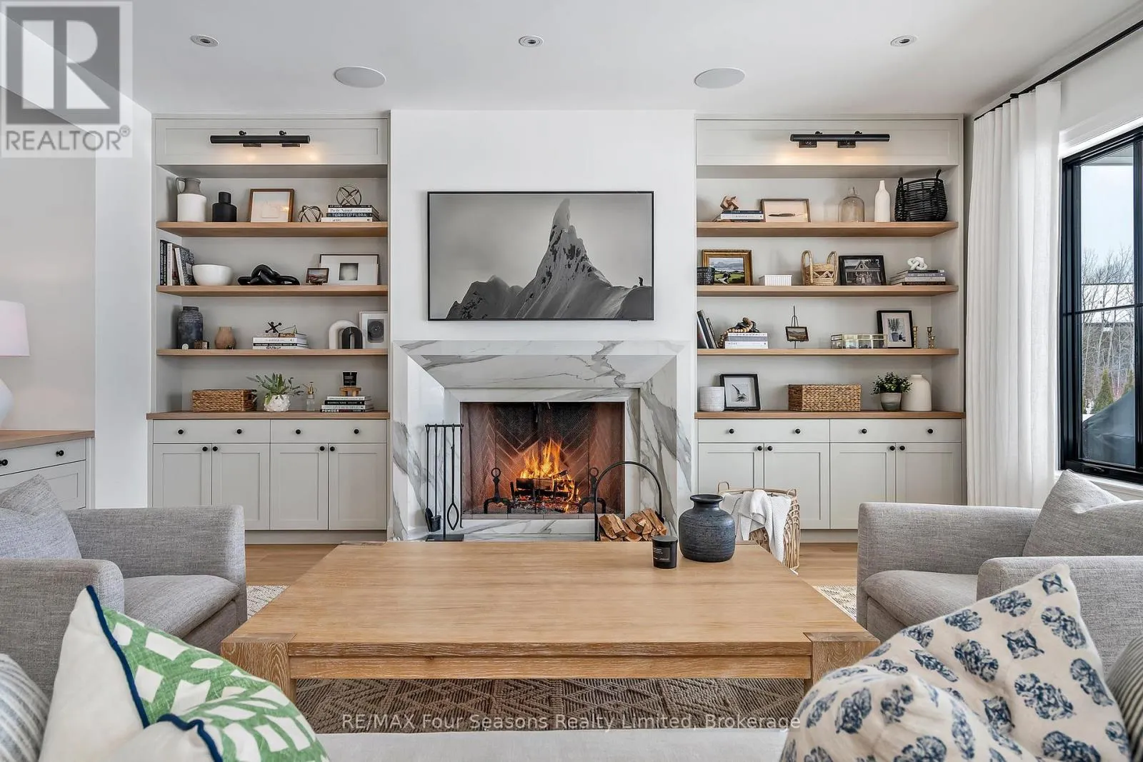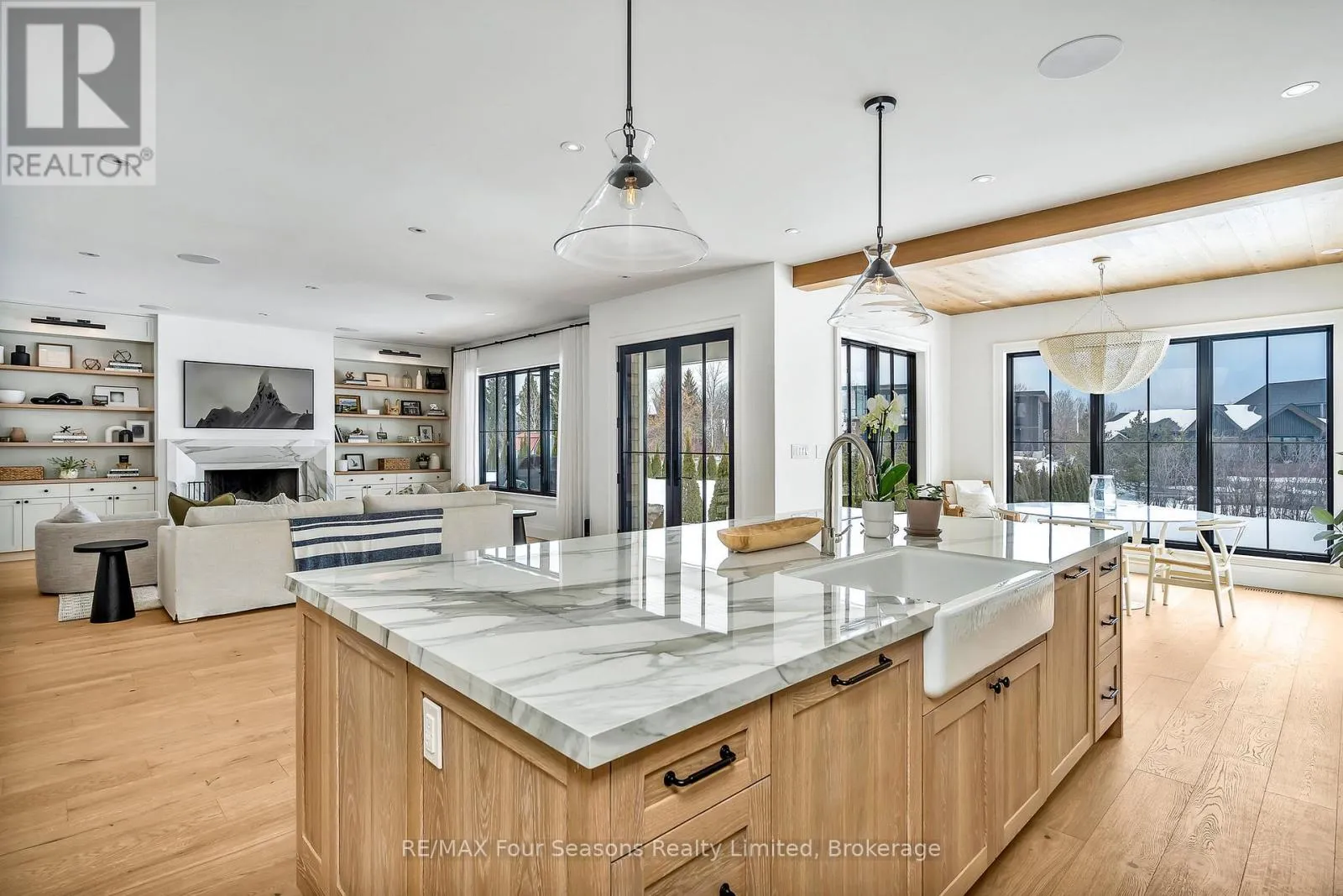 Cross Streets: Grey Rd 19/Craigleith Rd. ** Directions: Grey Rd 19 to Craigleith Rd to Alexandra Way to Lendvay Alley. SPECTACULAR CUSTOM-BUILT HOME STEPS FROM CRAIGLEITH SKI CLUB AND GEORGIAN BAY: This 5-bedroom, 5-bathroom residence offers 4,000 sq. ft. of beautifully designed living space, plus a 1,900 sq. ft. semi-finished lower level and 2+ car garage. Only 1.5 years old, this cedar shake home with steel roof blends timeless craftsmanship with modern luxury, boasting breathtaking ski hill views and a short walk to Craigleith Ski Club. Designed by Lauren Woods Interiors, every detail has been thoughtfully curated with high-end finishes. The main floor showcases 9'4" ceilings, elegant barrel archways, and heated floors in the foyer and mudroom. The chefs kitchen features Thermador appliances, porcelain countertops, and a large oak island, with a hidden door to the mudroom offering breathable storage and access to garage and backyard. A fully loaded butlers pantry connects to the formal dining room with ski hill views. The living room is anchored by a striking wood-burning fireplace, built-ins, and expansive windows, while the dedicated office includes floor-to-ceiling cabinetry, file drawers, and oversized closets. Upstairs, the luxurious primary suite offers a walk-in closet and spa-like ensuite with Carrara marble finishes. Bedroom two includes wainscoting and an ensuite bath, while bedrooms three and four share a 4-piece bath. A private suite above the garage features heated floors, a family room, laundry, bedroom 4, and 3-piece bath. The lower level provides 1,900 sq. ft. of semi-finished space, requiring only trim and flooring, and is roughed-in for a bedroom, bathroom and bar. With a large rec room, storage, and potential 6th bedroom, the options are endless. This one-of-a-kind home offers luxury, comfort, and adventure just minutes to Blue Mountain Village, skiing, Georgian Bay beaches, golf, hiking, and year-round recreation. Truly a must-see for those seeking the best of mountain living. (id:27476)