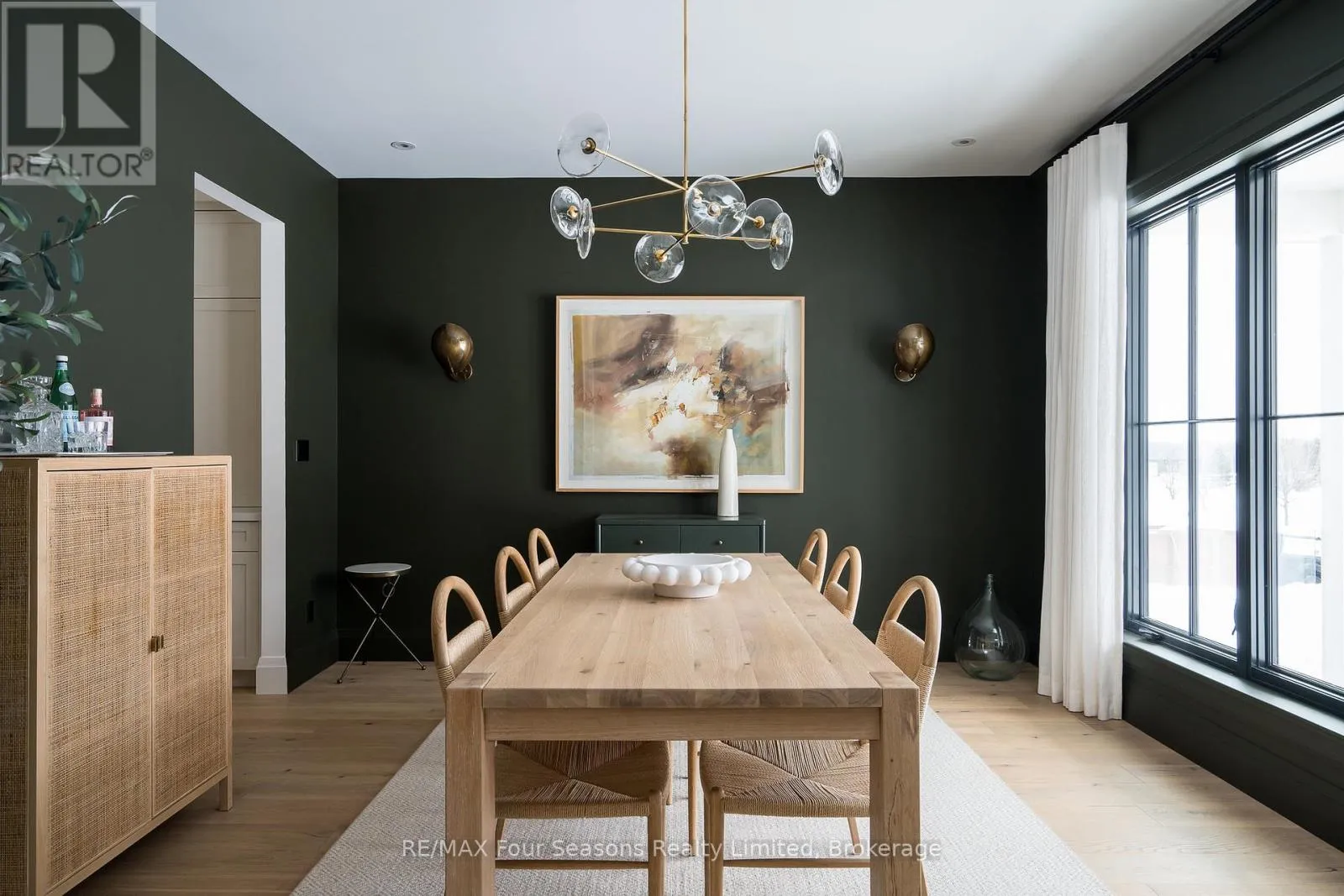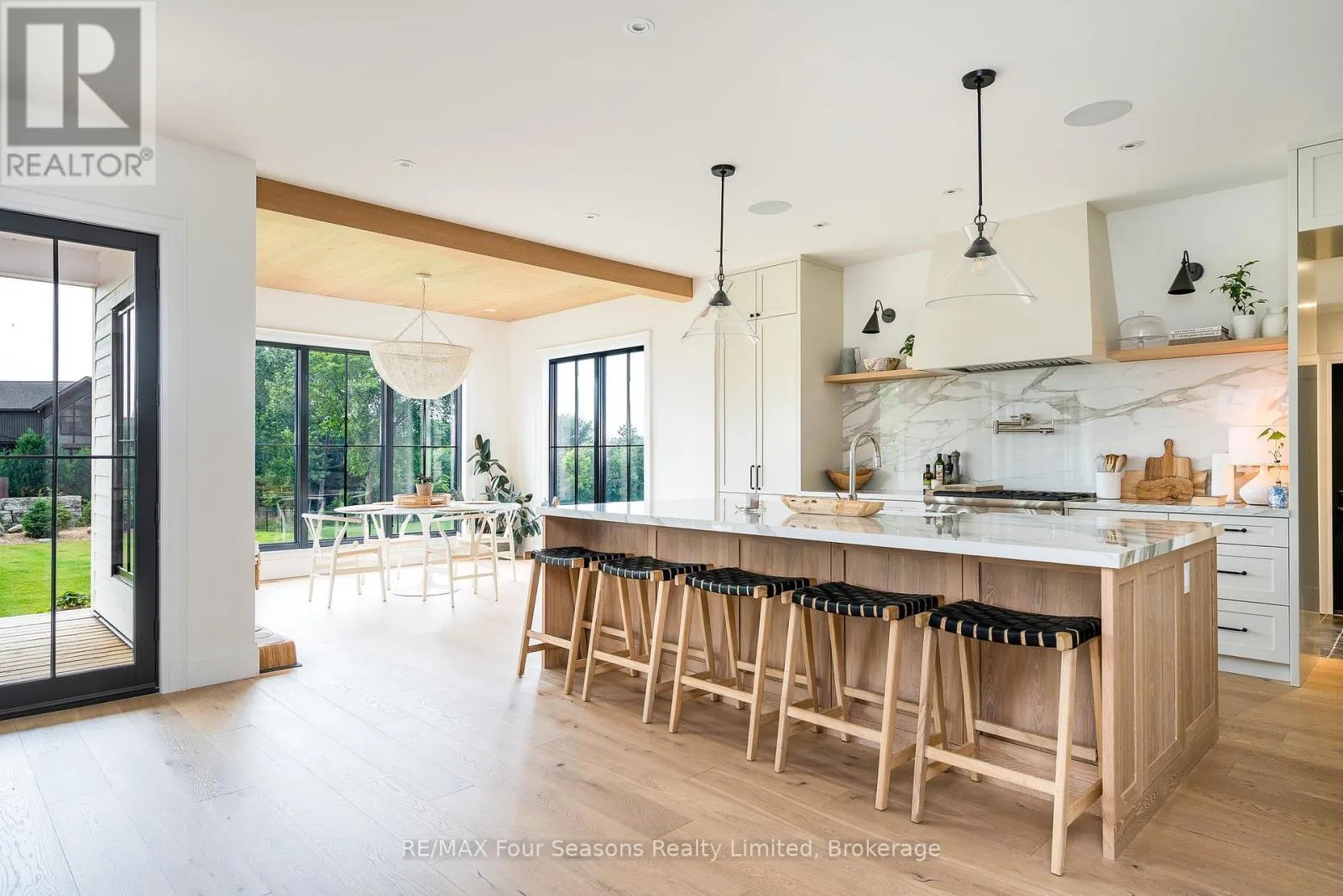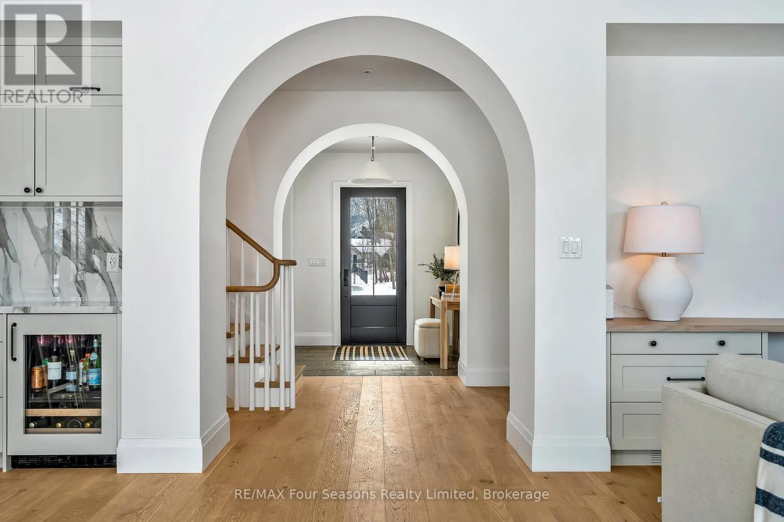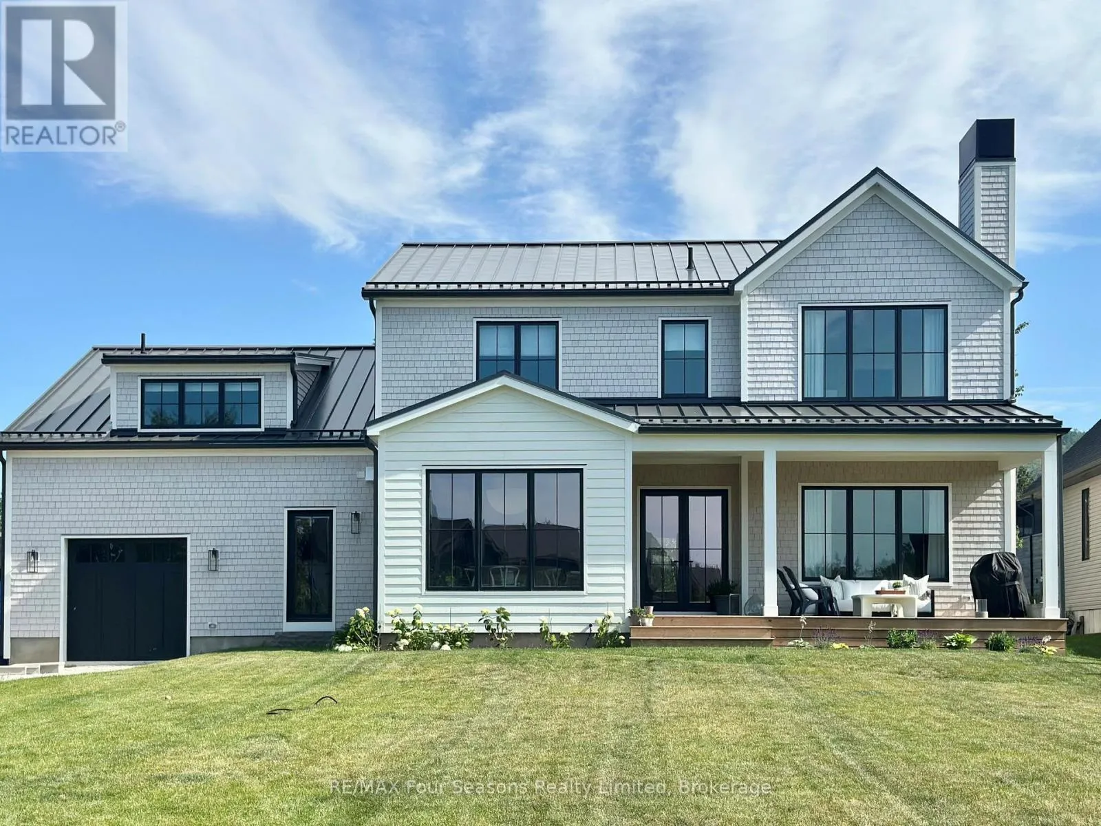 Cross Streets: Grey Rd 19/Craigleith Rd. ** Directions: Grey Rd 19 to Craigleith Rd to Alexandra Way to Lendvay Alley. SPECTACULAR CUSTOM-BUILT HOME STEPS FROM CRAIGLEITH SKI CLUB AND GEORGIAN BAY: This 5-bedroom, 5-bathroom residence offers 4,000 sq. ft. of beautifully designed living space, plus a 1,900 sq. ft. semi-finished lower level and 2+ car garage. Only 1.5 years old, this cedar shake home with steel roof blends timeless craftsmanship with modern luxury, boasting breathtaking ski hill views and a short walk to Craigleith Ski Club. Designed by Lauren Woods Interiors, every detail has been thoughtfully curated with high-end finishes. The main floor showcases 9'4" ceilings, elegant barrel archways, and heated floors in the foyer and mudroom. The chefs kitchen features Thermador appliances, porcelain countertops, and a large oak island, with a hidden door to the mudroom offering breathable storage and access to garage and backyard. A fully loaded butlers pantry connects to the formal dining room with ski hill views. The living room is anchored by a striking wood-burning fireplace, built-ins, and expansive windows, while the dedicated office includes floor-to-ceiling cabinetry, file drawers, and oversized closets. Upstairs, the luxurious primary suite offers a walk-in closet and spa-like ensuite with Carrara marble finishes. Bedroom two includes wainscoting and an ensuite bath, while bedrooms three and four share a 4-piece bath. A private suite above the garage features heated floors, a family room, laundry, bedroom 4, and 3-piece bath. The lower level provides 1,900 sq. ft. of semi-finished space, requiring only trim and flooring, and is roughed-in for a bedroom, bathroom and bar. With a large rec room, storage, and potential 6th bedroom, the options are endless. This one-of-a-kind home offers luxury, comfort, and adventure just minutes to Blue Mountain Village, skiing, Georgian Bay beaches, golf, hiking, and year-round recreation. Truly a must-see for those seeking the best of mountain living. (id:27476)