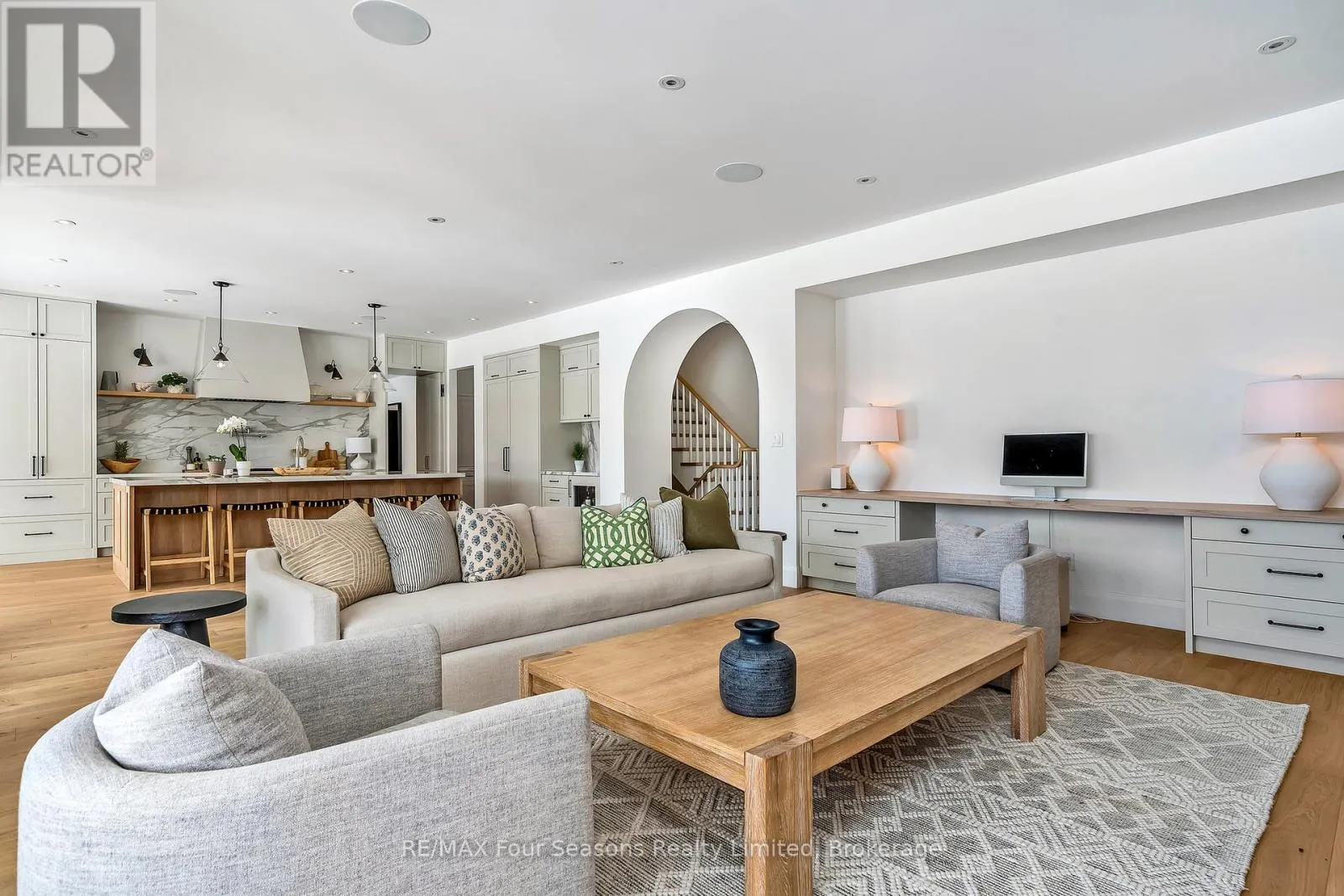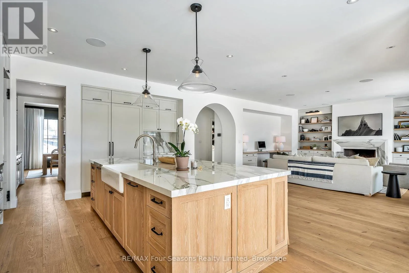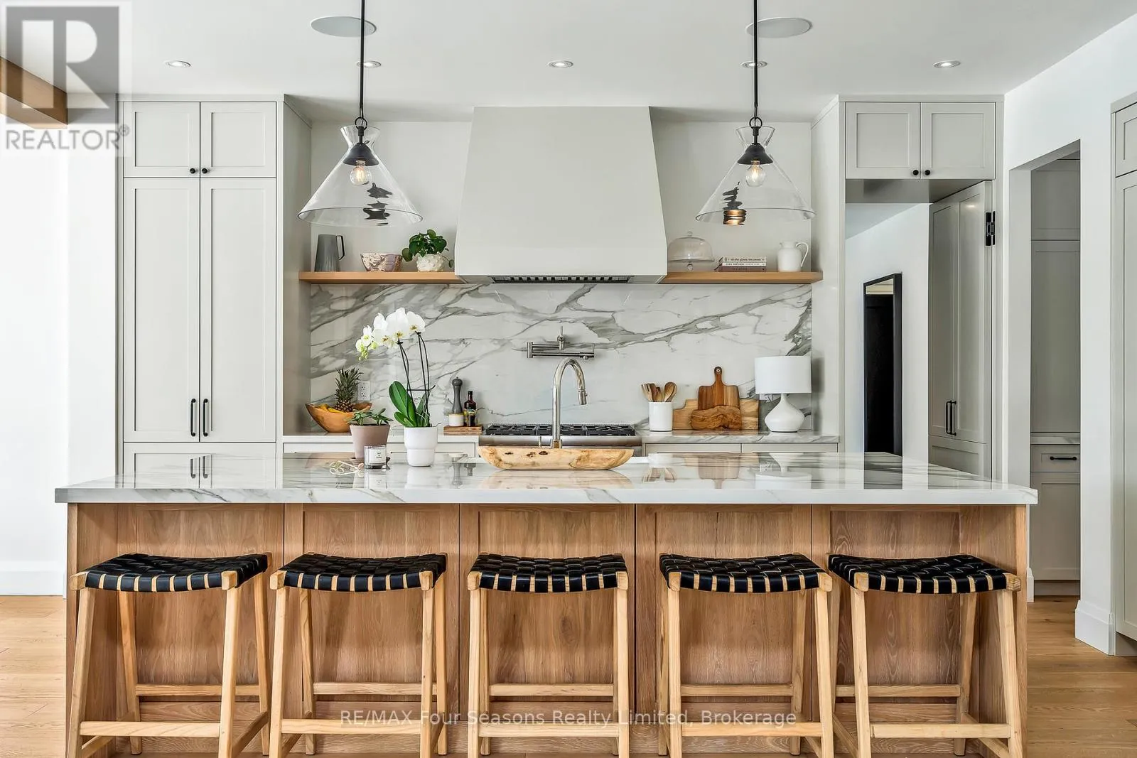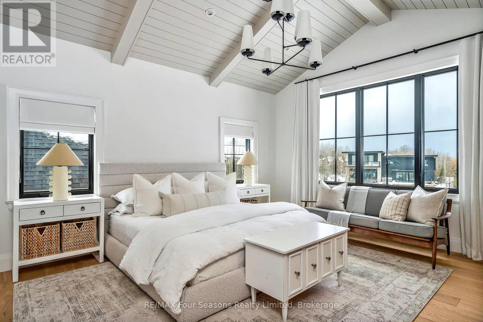 Cross Streets: Grey Rd 19/Craigleith Rd. ** Directions: Grey Rd 19 to Craigleith Rd to Alexandra Way to Lendvay Alley. SPECTACULAR CUSTOM-BUILT HOME STEPS FROM CRAIGLEITH SKI CLUB AND GEORGIAN BAY: This 5-bedroom, 5-bathroom residence offers 4,000 sq. ft. of beautifully designed living space, plus a 1,900 sq. ft. semi-finished lower level and 2+ car garage. Only 1.5 years old, this cedar shake home with steel roof blends timeless craftsmanship with modern luxury, boasting breathtaking ski hill views and a short walk to Craigleith Ski Club. Designed by Lauren Woods Interiors, every detail has been thoughtfully curated with high-end finishes. The main floor showcases 9'4" ceilings, elegant barrel archways, and heated floors in the foyer and mudroom. The chefs kitchen features Thermador appliances, porcelain countertops, and a large oak island, with a hidden door to the mudroom offering breathable storage and access to garage and backyard. A fully loaded butlers pantry connects to the formal dining room with ski hill views. The living room is anchored by a striking wood-burning fireplace, built-ins, and expansive windows, while the dedicated office includes floor-to-ceiling cabinetry, file drawers, and oversized closets. Upstairs, the luxurious primary suite offers a walk-in closet and spa-like ensuite with Carrara marble finishes. Bedroom two includes wainscoting and an ensuite bath, while bedrooms three and four share a 4-piece bath. A private suite above the garage features heated floors, a family room, laundry, bedroom 4, and 3-piece bath. The lower level provides 1,900 sq. ft. of semi-finished space, requiring only trim and flooring, and is roughed-in for a bedroom, bathroom and bar. With a large rec room, storage, and potential 6th bedroom, the options are endless. This one-of-a-kind home offers luxury, comfort, and adventure just minutes to Blue Mountain Village, skiing, Georgian Bay beaches, golf, hiking, and year-round recreation. Truly a must-see for those seeking the best of mountain living. (id:27476)