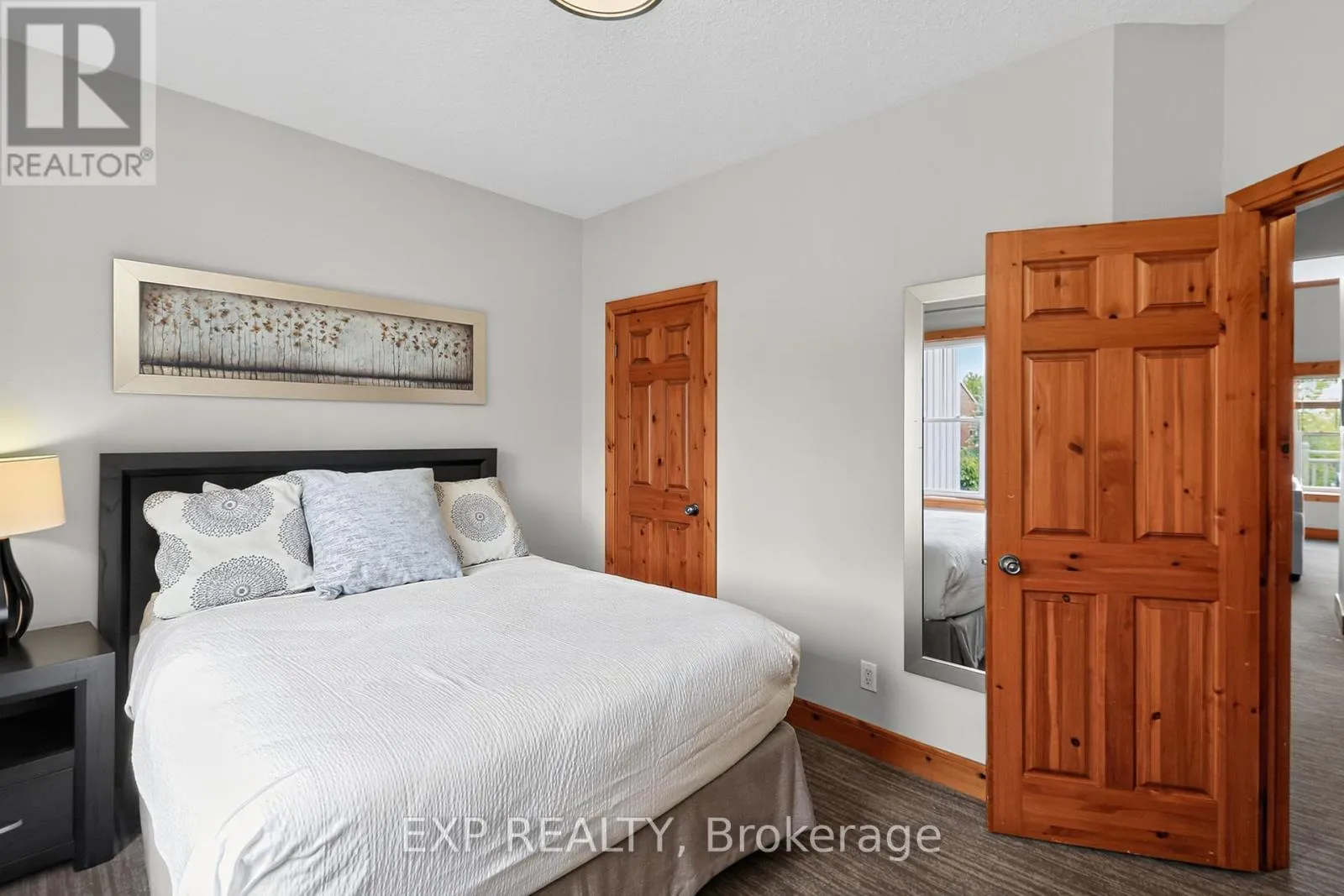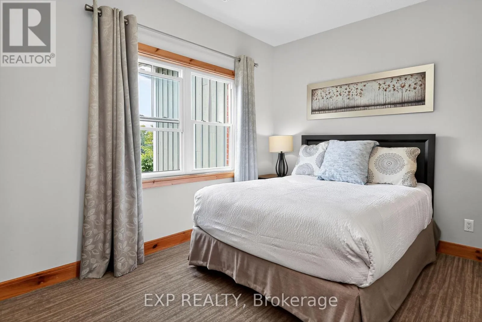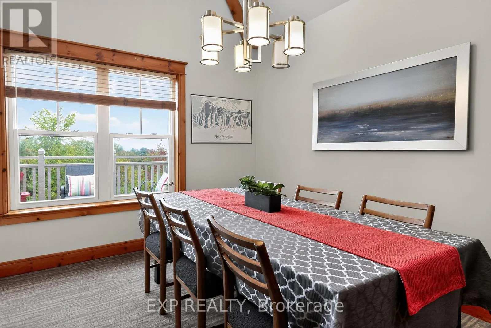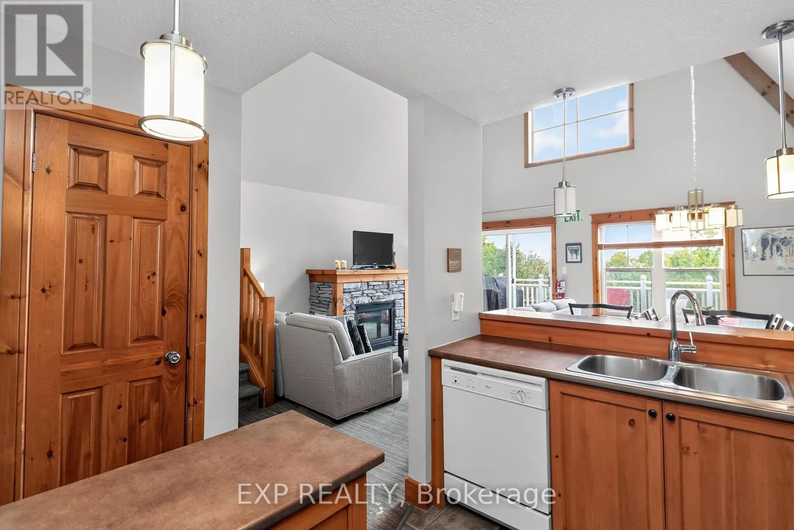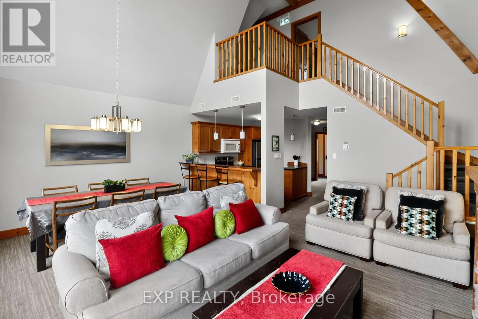Cross Streets: Mtn Road and Snowbridge Way. ** Directions: Mtn Rd to Snowbridge Way. Licensed for Short-Term Rentals! This beautifully designed 2-bedroom, 2-bathroom upper-level condo is located in the sought-after Historic Snowbridge community at Blue Mountain Resort. With its established rental potential, this property offers an ideal opportunity for investors or those seeking a four-season getaway. Enjoy unobstructed golf course views from the private balcony, primary bedroom, and dining area, setting the scene for morning coffee or an evening glass of wine. The open-concept layout features soaring vaulted ceilings, oversized windows that flood the space with natural light, and a cozy gas fireplace for après-ski relaxation. The spacious primary suite includes a private 4-piece ensuite, while the second bedroom and full bath provide comfort for family and guests. This unit also features convenient in-suite laundry, a ski locker for secure storage, and access to a seasonal outdoor pool exclusively for owners and guests. With strong short-term rental demand in the Blue Mountain area, this property combines personal enjoyment with consistent income-generating potential. Owners and visitors alike will love the free resort shuttle offering direct access to Blue Mountain Village, ski hills, restaurants, shops, and nightlife. In summer, enjoy nearby private beaches, golf courses, and scenic hiking trails. Whether its skiing, hiking, relaxing, or entertaining, Historic Snowbridge is the ultimate four-season escape and a proven short-term rental investment. (id:27476)