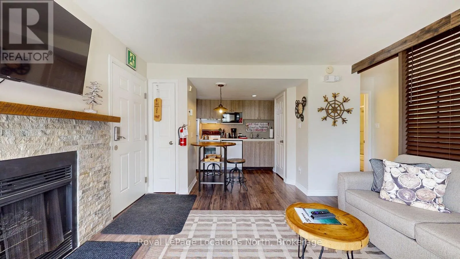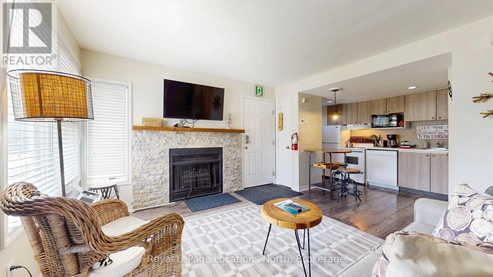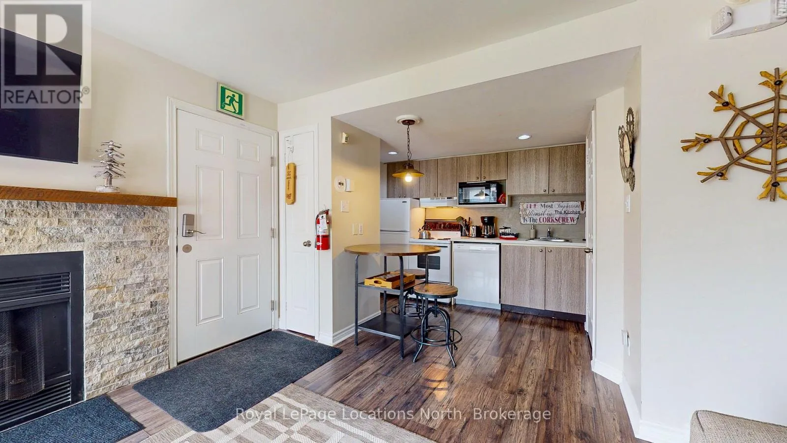 Cross Streets: Grey Rd 19 & Craigmore Cres. ** Directions: Grey Rd 19 & Craigmore Cres (at North Creek Resort, next to Toronto Ski Club). Welcome to Unit 508 at North Creek Resort. This condo complex is situated next to the Toronto Ski Club and the Weider Express/North Chair Lift. You can ski in and ski out! The property is surrounded by stunning natural scenery, with trails and Northwinds Beach just a short walk away. Enjoy Apres-Ski drinks on your private balcony. This unit is currently included in the short-term rental program managed by Trillium Property Management. Are you a passionate skier seeking a weekend getaway? Or perhaps you need a condo for occasional visits? Utilize the rental programs to ensure you earn income when you're not using the property. The condo features amenities such as a clubhouse/lounge with an Indian restaurant, a seasonal outdoor pool, two hot tubs, tennis/pickleball courts, charcoal BBQs, and security services. Condo fees cover water, sewer, basic cable TV, internet, visitor parking, and shuttle service to Blue Mountain Village. You'll feel at home as soon as you step inside. This open-concept studio unit includes one bed and one bath, a sitting area with a wall-mounted TV, an electric fireplace, an apartment-sized kitchen, and electric heating/AC systems. The bathroom features a tub, perfect for relaxing those muscles after a long day on the slopes. The unit is being sold 'turnkey' with furniture included. It's available just in time for ski season...don't miss out on the opportunity for short-term rental income. Note: HST is applicable which can be deferred if the buyer is an HST registrant. A 0.5% BMVA fee payable on closing (and VAF royalty fees apply when renting). (id:27476)