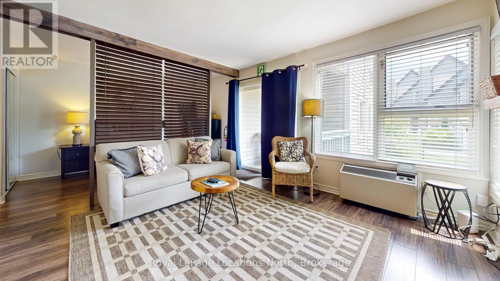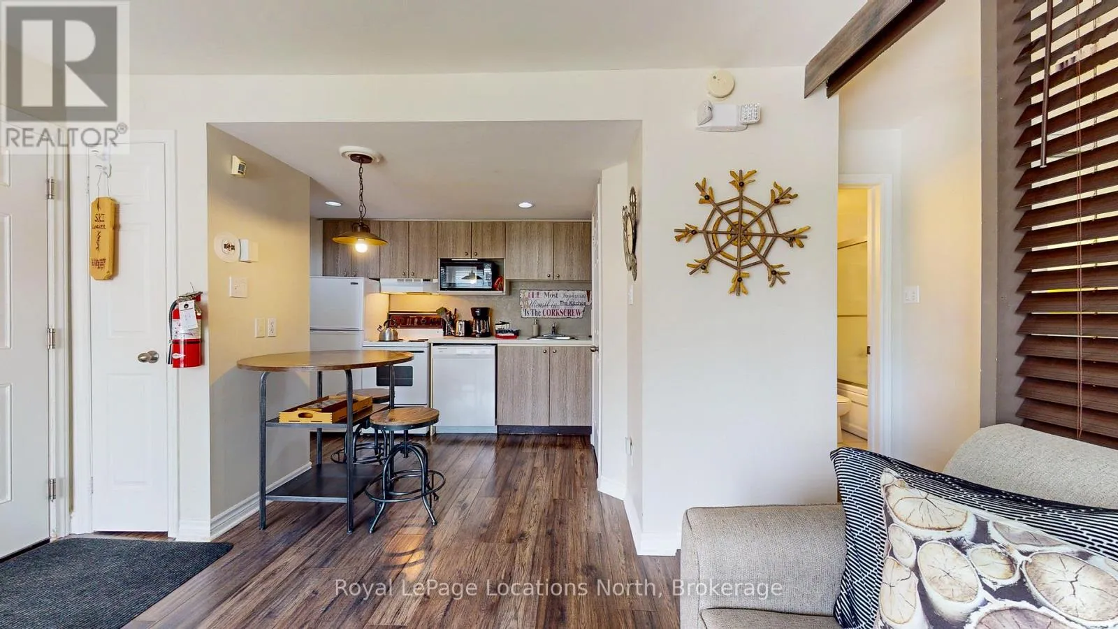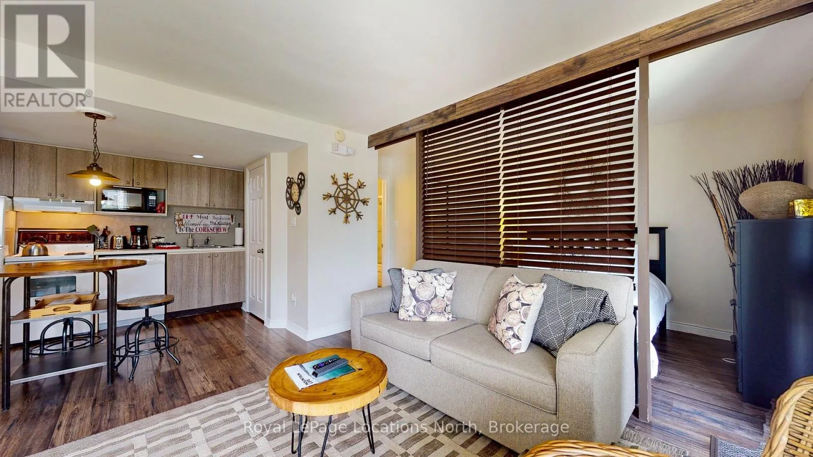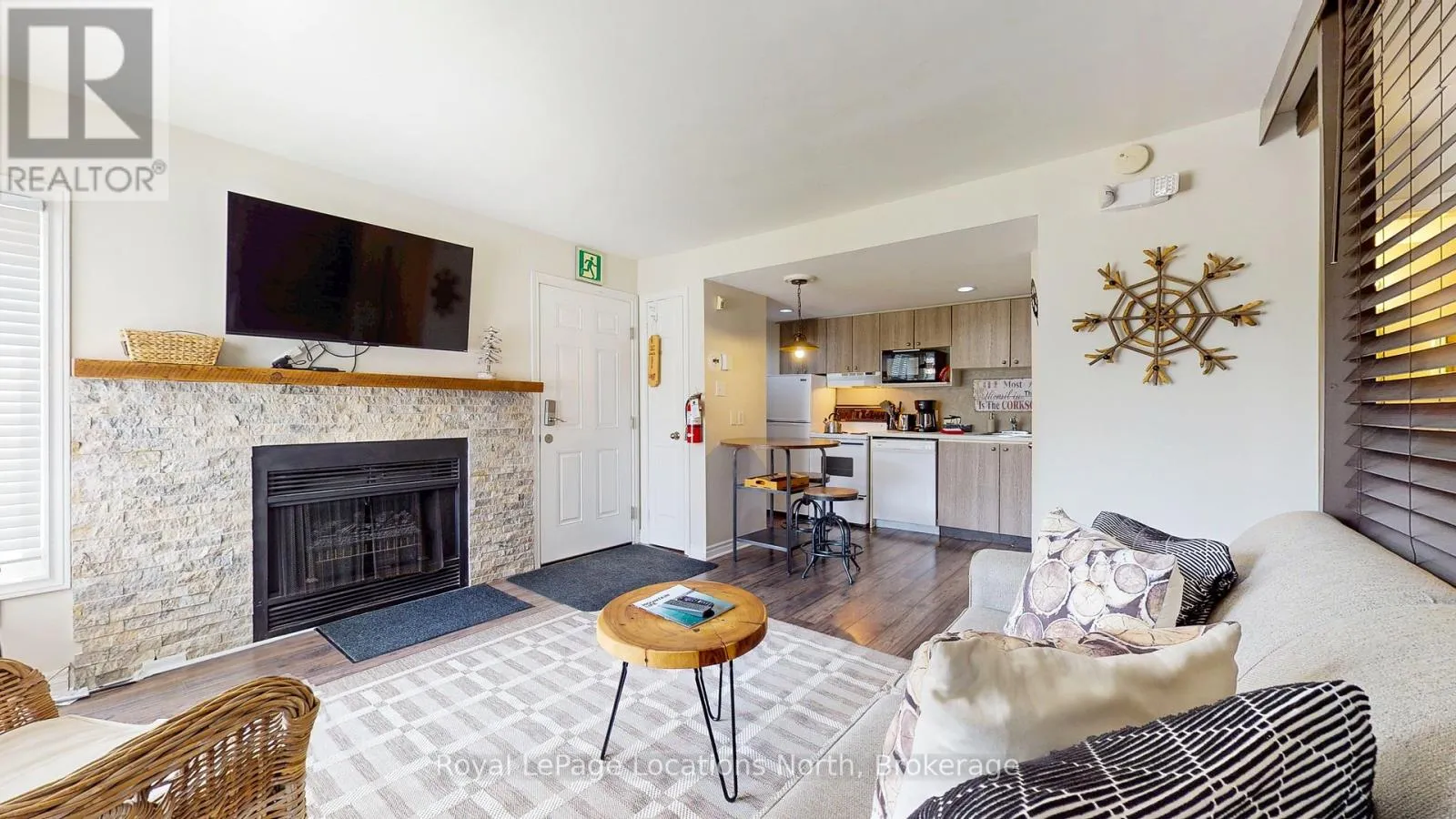Cross Streets: Grey Rd 19 & Craigmore Cres. ** Directions: Grey Rd 19 & Craigmore Cres (at North Creek Resort, next to Toronto Ski Club). Welcome to Unit 508 at North Creek Resort. This condo complex is situated next to the Toronto Ski Club and the Weider Express/North Chair Lift. You can ski in and ski out! The property is surrounded by stunning natural scenery, with trails and Northwinds Beach just a short walk away. Enjoy Apres-Ski drinks on your private balcony. This unit is currently included in the short-term rental program managed by Trillium Property Management. Are you a passionate skier seeking a weekend getaway? Or perhaps you need a condo for occasional visits? Utilize the rental programs to ensure you earn income when you're not using the property. The condo features amenities such as a clubhouse/lounge with an Indian restaurant, a seasonal outdoor pool, two hot tubs, tennis/pickleball courts, charcoal BBQs, and security services. Condo fees cover water, sewer, basic cable TV, internet, visitor parking, and shuttle service to Blue Mountain Village. You'll feel at home as soon as you step inside. This open-concept studio unit includes one bed and one bath, a sitting area with a wall-mounted TV, an electric fireplace, an apartment-sized kitchen, and electric heating/AC systems. The bathroom features a tub, perfect for relaxing those muscles after a long day on the slopes. The unit is being sold 'turnkey' with furniture included. It's available just in time for ski season...don't miss out on the opportunity for short-term rental income. Note: HST is applicable which can be deferred if the buyer is an HST registrant. A 0.5% BMVA fee payable on closing (and VAF royalty fees apply when renting). (id:27476)