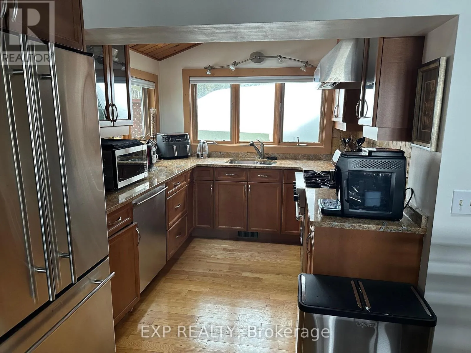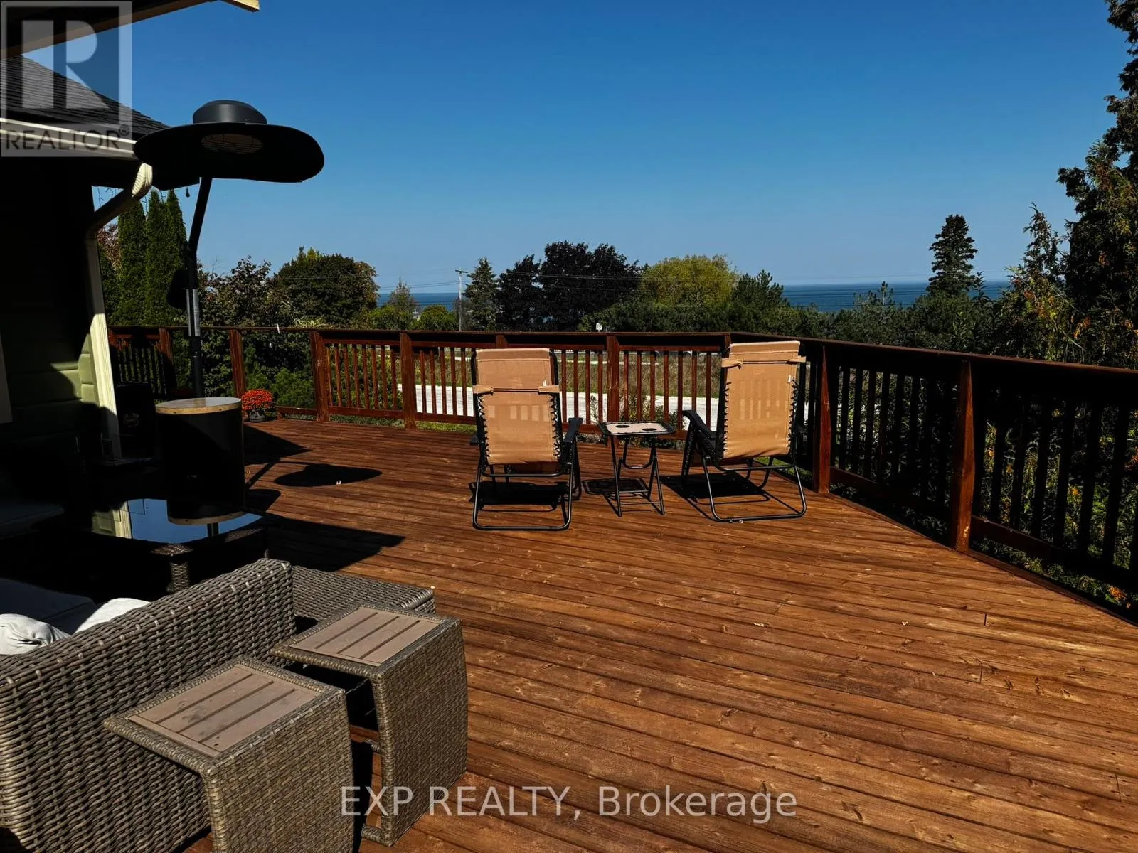 Lakeshore Rd E & Chamonix Cres Location! Location! Location! This beautiful and well-maintained four-season chalet is directly across from Northwinds Beach and the Georgian Trail, and only 5 minutes from the ski hills at Blue Mountain. With stunning views of Georgian Bay and quick access to local ski clubs, it offers the perfect balance of beach and mountain living. Featuring over 2,500 sq ft of living space, 3+1 bedrooms, and 3 bathrooms, this home is designed for family and guests year-round. The backyard is an entertainers dream with a large deck, cedar hot tub, basketball court, golf greens, BBQ, and fire pit. Recent updates include a new roof (2022), energy-efficient heat pump (2023), new fence (2023), solar panels (2024) for potential free hydro, and a Generac generator. Inside, the main floor exudes log cabin charm with hardwood floors, soaring ceilings, exposed beams, and oversized windows that flood the rooms with natural light. The living room features a cozy gas fireplace with water views, while the dining area and bright winterized sunroom continue the rustic chalet feel. The finished ground-level offers a family room, second fireplace, guest bedroom, and large mudroom with direct driveway access - ideal for ski gear. A full permit to build a carport is included. Move-in ready and full of character, this chalet is your opportunity to enjoy the very best of Blue Mountain and Georgian Bay living all year long. Furniture may be negotiable. (id:27476)
