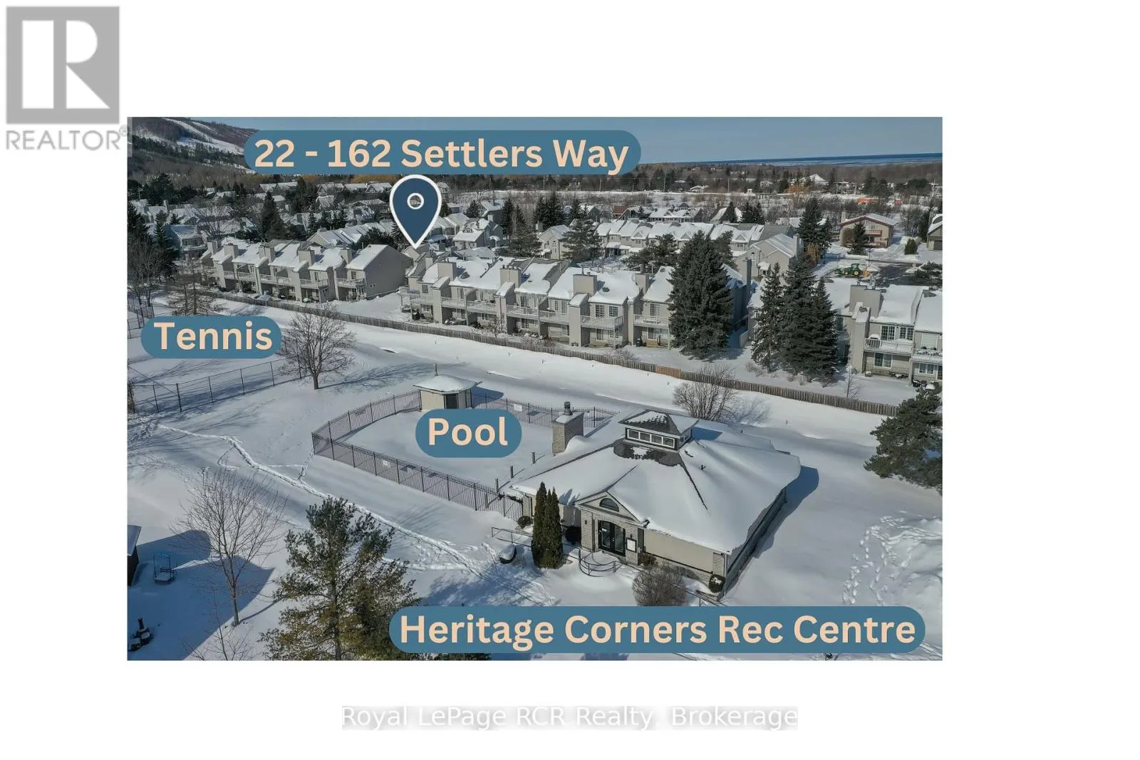 Cross Streets: Grey Rd 19 and Heritage Dr. ** Directions: Grey Rd 19 to Heritage Dr to 162 Setters Way. INCOME PROPERTY! Fully furnished and turnkey, this spacious end-unit in Heritage Corners is one of the few in the entire complex eligible for an STA licence. The largest model available, it features 4 bedrooms, 3 bathrooms, and a fully finished basement complete with a games/recreation room, sauna, bathroom, and the 4th bedroom. The modern kitchen and updated baths pair beautifully with a stylish living area with a cathedral ceiling, gas fireplace, and dining space that opens onto a private patio perfect for entertaining or relaxing. Upstairs, the primary suite offers a serene retreat with its own balcony, a spa-like ensuite with a soaker tub, and a separate shower. A loft sitting area adds a cozy nook for reading, working, or unwinding. Resort-style amenities include a seasonal outdoor pool and tennis courts. Plus, The Village at Blue is just a short stroll away, offering fantastic dining, shopping, and year-round activities. This rare opportunity sleeps 10, generates income, and comes with no BMVA resort fees. Don't wait, properties like this don't come up often! (id:27476)