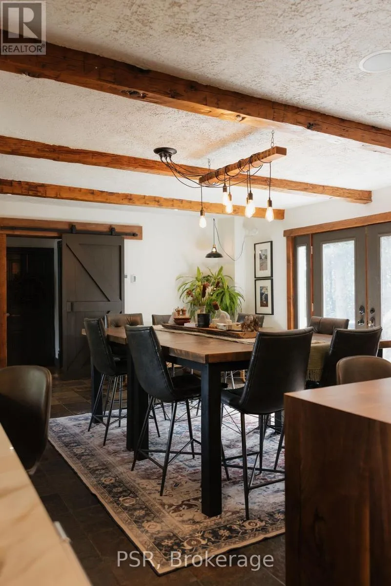 Cross Streets: Grey Rd 119 & 4th Line. ** Directions: Grey Rd 119 to 4th Line. This beautiful, secluded 5+ bedroom farmhouse with attached garage, outdoor firepit, sauna, family room fireplace, huge party kitchen, bonus office/nursery/bedroom sitting on 20 serene acres is just a 6 minute drive from the Century Express lift and Woodview Mountain Top Skating located at the top of Blue Mountain. Fully turn-key with beautiful linens, games, books, firewood and everything you can think of for your personal retreat, this farmhouse has it all! The 5 well-appointed bedrooms, 3 bathrooms, attached garage and even attached room to store all of your winter gear, give you loads of flexibility. Main floor bedroom has 1 Queen, Second floor has 2 Queen bedrooms, a bedroom with two twins as well as one primary King with it's own ensuite with soaker tub. In behind the primary is where you will find the extra bonus room. EV charger just beside the garage entrance allows for great versatility. Close to trails and your own personal 20 acres to cross-country ski, snowmobile or ATV on. Right beside the snowmobile trailway system, the Loree forest and your own personal ravine, this retreat won't disappoint. Rental period is from Dec 20-Mar 20 or Possibility to extend lease on either side for $8,000 per month. (id:27476)