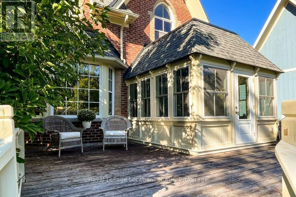 Cross Streets: Grey Road 19 and Snowbridge Way. ** Directions: Follow First St/ON-26 W, Mountain Rd and Grey County Rd 19 to Snowbridge Way in The Blue Mountains. Welcome to our modern Victorian country home in historic Snowbridge. This stunning, custom-built red brick home, set on a large 212-foot-deep private lot with mature landscaping, is an ideal home for anyone looking to enjoy four-season living. This beautifully maintained home blends Victorian charm with modern amenities, featuring: 3 spacious bedrooms, 3 bathrooms, a home office, cathedral windows throughout, an attached garage, a picture-perfect sunroom, an oversized back deck for entertaining, two fireplaces, an outdoor fire pit area ideal for après-ski evenings, and the list goes on. The interior design by Catherine Arcaro (Farrow Arcaro Design) embraces the warmth of country life while offering an inviting retreat from the busy city, a perfect setting to enjoy time with family and friends. A bright four-season sunroom on the main floor is a true showstopper and your ideal spot for relaxing, entertaining, or taking in serene escarpment views. The sunroom opens up onto a large back deck w/ gas BBQ hookup and long yard making this a unique feature of this lovely home. The large lower level includes an entertainment room, full bathroom, storage room, and utility space, providing versatility and the potential to add another bedroom to the home. The attached garage ensures winter convenience, with an added driveway bump-out for extra parking. Whether as a full-time residence, weekend escape, or investment property, this home delivers the ideal balance of comfort and dependability, location, and lifestyle. Ideally located steps from the Georgian Trail, Monterra Tennis & Golf Club, and both private and public ski hills. Enjoy seamless access to skiing, hiking, biking, golf, and all the amenities of Blue Mountain Village, making this a rare opportunity to own a timeless mountain retreat in one of Ontario's most celebrated four-season destinations. Full property feature sheet available upon request, including amenities for Historic Snowbridge & Pool. (id:27476)