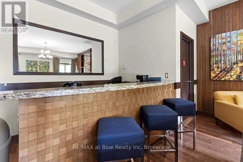 Cross Streets: Grey Road 19. ** Directions: Highway 26 to Mountain Road to Grey Road 19 to Jozo Weider Blvd. MOSAIC ONE-BEDROOM SUITE WITH COURTYARD AND POOL VIEW - Popular boutique-hotel inspired suite in Mosaic at Blue, located in the heart of Ontario's most popular four-season resort, Blue Mountain Village. Fully furnished condominium sleeps up to four with king size bed in the master bedroom and queen pull out in living area. Great location overlooking the courtyard, year round heated swimming pool with adjoining lap pool and the hot tub. Look out at the lovely mature trees off the balcony which provide added privacy and enjoy a quieter atmosphere with location being at far end of the amenities. In-suite storage locker for owners allows you to leave some personal items in your unit ready for your next stay. Separate owners ski locker and bike storage off the lobby. Separate Owners Lounge off the lobby. Direct access on the main floor to the Sunset Grill! Two levels of heated underground parking. Amenities include an exercise room, indoor sauna and outdoor year-round pool and hot tub. Easy check in right in the lobby of Mosaic. Blue Mountain Resort offer owners a fully managed rental program to help offset operating expenses. One time 2% BMVA entry fee payable on closing. Annual fees of $1.08/sq.ft. HST is applicable but can be deferred through participation in the rental program. Discounted list price due to current in-suite refurbishment. (see proposed refurbishment photos) $79K refurbishment cost to be paid by the buyer. (id:27476)