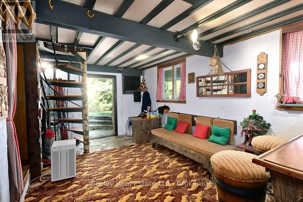 From Collingwood take Hwy 26 West to Arrowhead Rd. an turn left, follow to Alpine Ski Club on your right, to the main lodge to meet the listing agent. Rarely offered live on the slopes of Alpine Ski Club! This original ski-in/ski-out chalet is bursting with original alpine charm and offers a lifestyle few ever experience. Nestled on an expansive 0.9 acre lot, this property provides direct access to the hill along with the convenience of exclusive private parking at the Club. Enjoy four seasons of recreation and relaxation: ski from your door in winter, hike the escarpment in spring, take in the vibrant fall colours, or spend summer days at nearby beaches on Georgian Bay. The wrap-around porch is the perfect vantage point to soak in stunning water views across the Bay and watch the activity of the slopes. This is a unique chance for Alpine Ski Club members to secure a true slope side property ideal for creating a family retreat, seasonal getaway, or simply enjoying as-is with all the cozy character of a classic chalet. Or, build to suit on the footprint of 800 sq ft and design your dream chalet right on the hill. Opportunities like this are few and far between at Alpine Ski Club. (id:27476)
