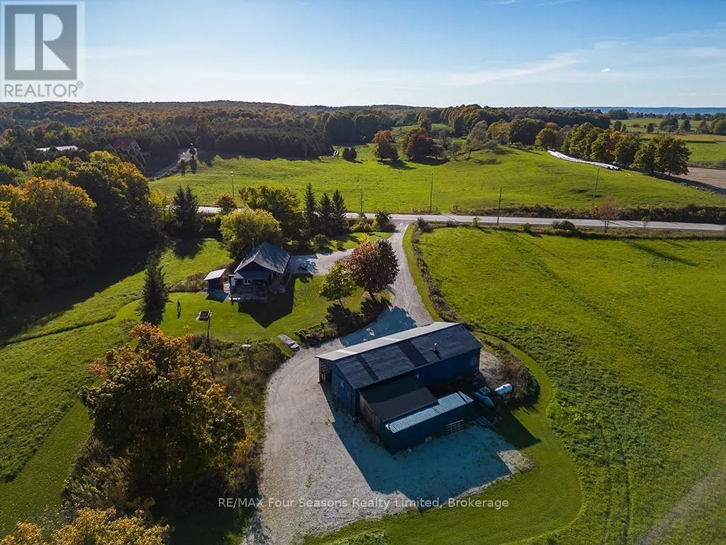 Cross Streets: GREY RD 2 and GREY ROAD 19. ** Directions: GREY RD 2 SOUTH OF RAVENNA TO 495529. SPECTACULAR VIEW PROPERTY: Nestled on almost 25 stunning acres, this property offers some of the most expansive and breathtaking views in the area, with sweeping panoramas of Georgian Bay, the Beaver Valley, and the iconic Niagara Escarpment. It's the perfect place to bring your dream home to life, on a blank canvas, with all the infrastructure already in place. The driveway is already created, providing easy access to the building site. Electrical is already installed and connected and there is a buried conduit ready for additional future services. This sprawling lot is full of potential, and previously-approved building plans help to make it easier to turn your vision into reality. From its elevated vantage point, the property delivers uninterrupted scenic beauty, with direct Bruce Trail access as it winds through the top, offering an instant connection to nature. Outdoor enthusiasts will find endless adventures, with skiing, hiking, and biking just steps away. While your new home takes shape, the recently totally renovated 2-bedroom, 1-bathroom bungalow offers a comfortable living space. Updated in 2018, the bungalow features a charming wood-burning fireplace, alongside modern upgrades to the furnace, electrical, and plumbing systems. A large heated and winterized barn adds to the property's appeal, providing ample room for equipment, recreational toys, or a workshop. This property is a rare find, offering both tranquility and endless outdoor opportunities, making it the ultimate setting for your future home. (id:27476)