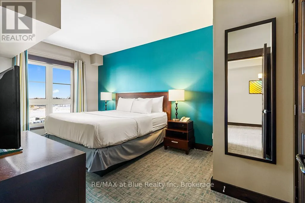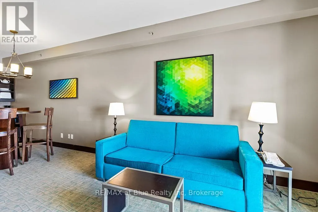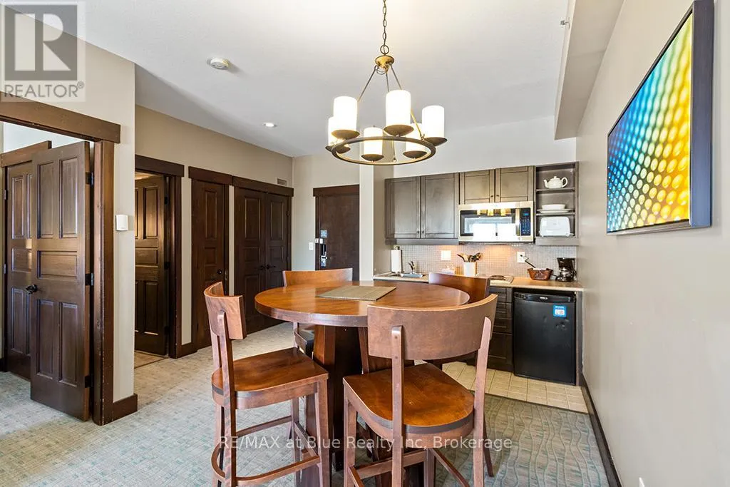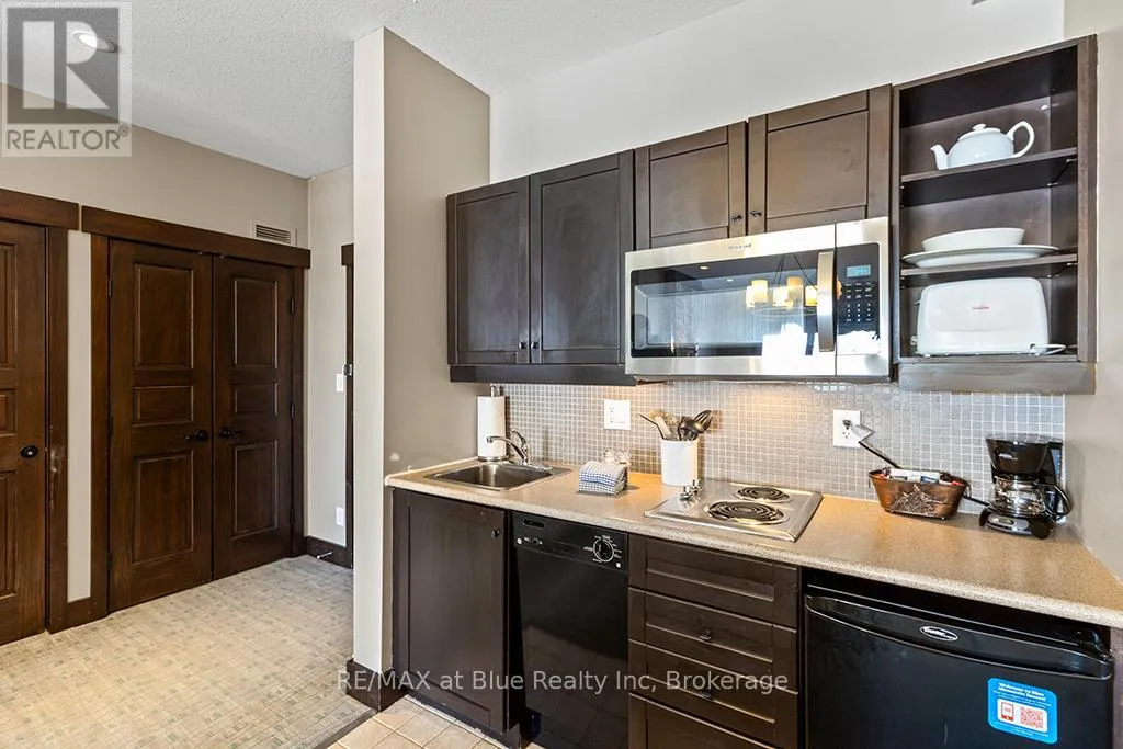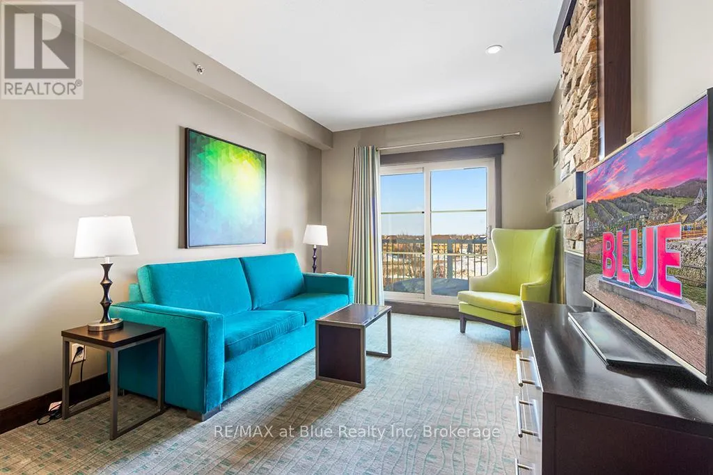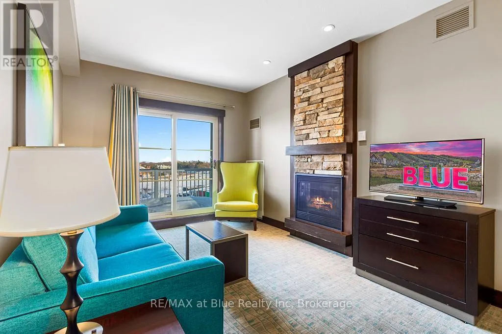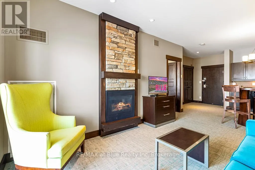 Cross Streets: Grey Road 19. ** Directions: Highway 26 to Mountain Road to Grey Road 19 to Jozo Weider Blvd. MOSAIC AT BLUE RESORT CONDOMINIUM - Beautiful one bedroom one bathroom (ensuite) fully furnished resort condominium located in The Village at Blue Mountain in the boutique-style condo-hotel known as Mosaic at Blue. Steps away from the Silver Bullet chairlift and Monterra Golf Course. Enjoy all the shops and restaurants in Ontario's most popular four season resort. Suite comes fully equipped with a kitchenette with two burners, dining area, pullout sofa, fireplace, appliances, window coverings, lighting fixtures and everything else down to the cutlery. Mosaic at Blue's amenities include a year round outdoor heated swimming pool, hot tub, owner's ski locker room, two levels of heated underground parking, exercise room and private owner's lounge to meet and mingle with other homeowners. Ownership at Blue Mountain includes an optional fully managed rental pool program to help offset the cost of ownership while still allowing liberal owner usage. The condo can also be kept for exclusive usage as a non-rental. 2% Village Association entry fee is applicable. HST is applicable but can deferred by obtaining a HST number and enrolling the suite into the rental pool program. In-suite renovations scheduled for all condominiums in Mosaic sometime in either fall 2025 or spring 2026.This suite will be completely refurbished in the fall of 2025. The Seller has paid $49,267.0 of the $78,827.49 total cost of the refurbishment. The buyer to pay the remaining three payments. Proposed refurbishment renderings included in the photos of this listing are one-bedroom renderings. All Mosaic suites will be refurbished similarly. (id:27476)