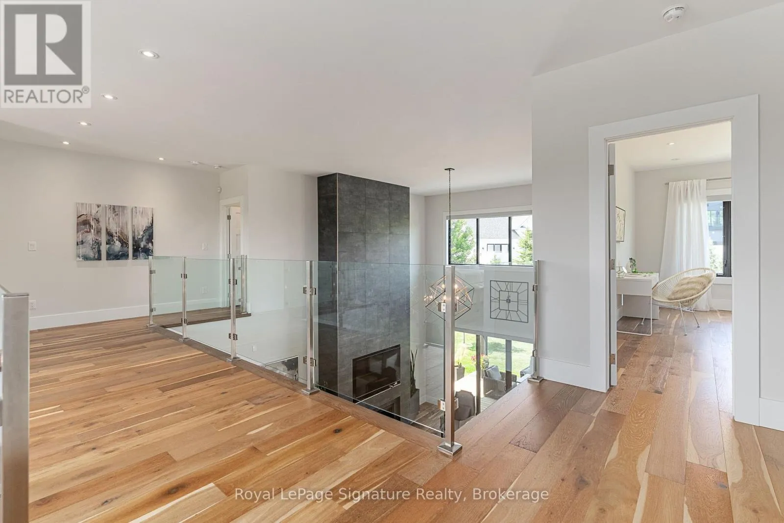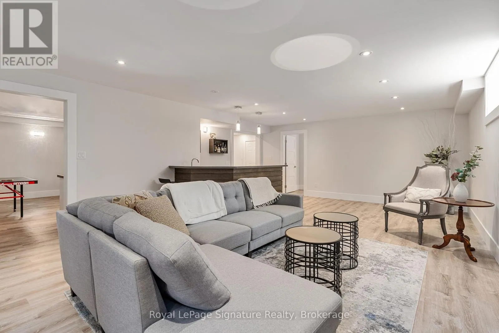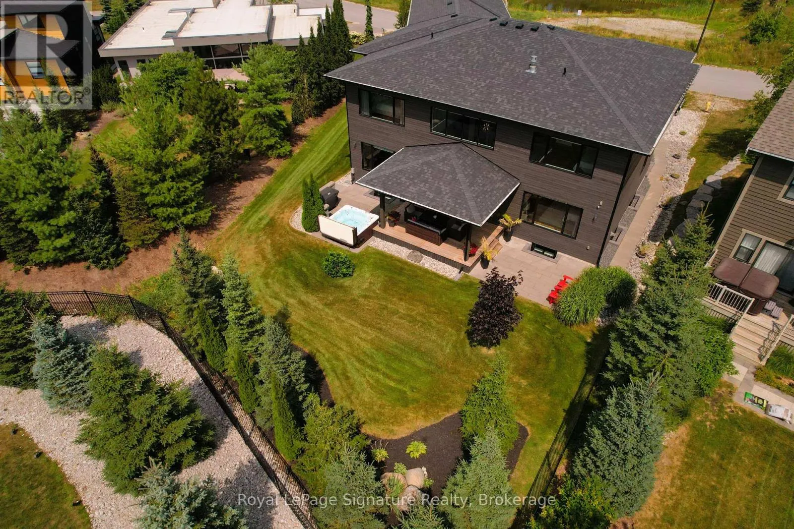 Cross Streets: Arnot Cres. ** Directions: Grey Rd 19 to Sleepy Hollow Rd to Arnot Cres. This custom-built home in the Nipissing Ridge community offers luxury mountain living at the base of Alpine Ski Club and Craigleith. Steps from skiing, hiking, and the shores of Georgian Bay, and minutes to the boutiques, restaurants, and golf courses of The Blue Mountains, it blends year-round recreation with upscale comfort. The 20-foot ceiling great room features expansive windows framing mountain views and a 48-inch linear gas fireplace. The chef's kitchen is equipped with a quartz waterfall island, prep area, beverage station, and premium appliances including a 48-inch Monogram gas range and fridge, Miele dishwasher, wine cooler, and beverage fridge. The main floor primary suite provides a private retreat with a floating vanity, double sinks, glass-enclosed double shower, freestanding tub, heated floors, and a custom dressing room. Engineered hardwood floors, a pre-wired sound system, and a dedicated office enhance everyday living. Upstairs offers a family/games room and three bedrooms, each with an ensuite. The finished lower level includes a family room, games area, two bedrooms, additional bathrooms, in-floor heating, and durable vinyl flooring. Exterior features include stone and wood finishes, an 8-foot glass-paneled entry door, and 9x9 garage doors with a lift system. Move-in ready, this is a rare opportunity to enjoy an active, four-season lifestyle in one of the areas most sought-after communities. (id:27476)