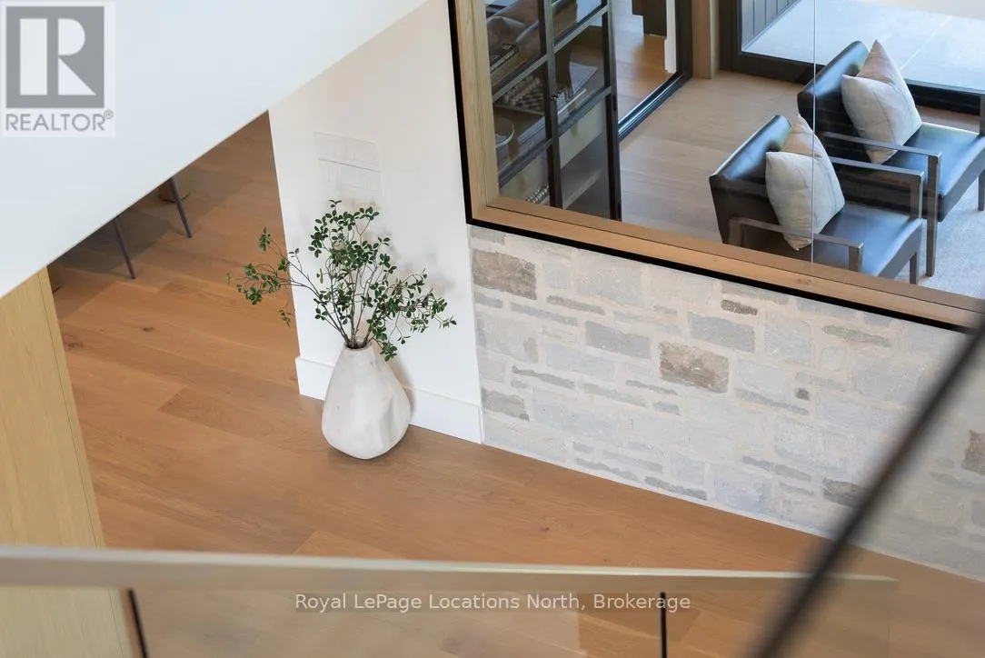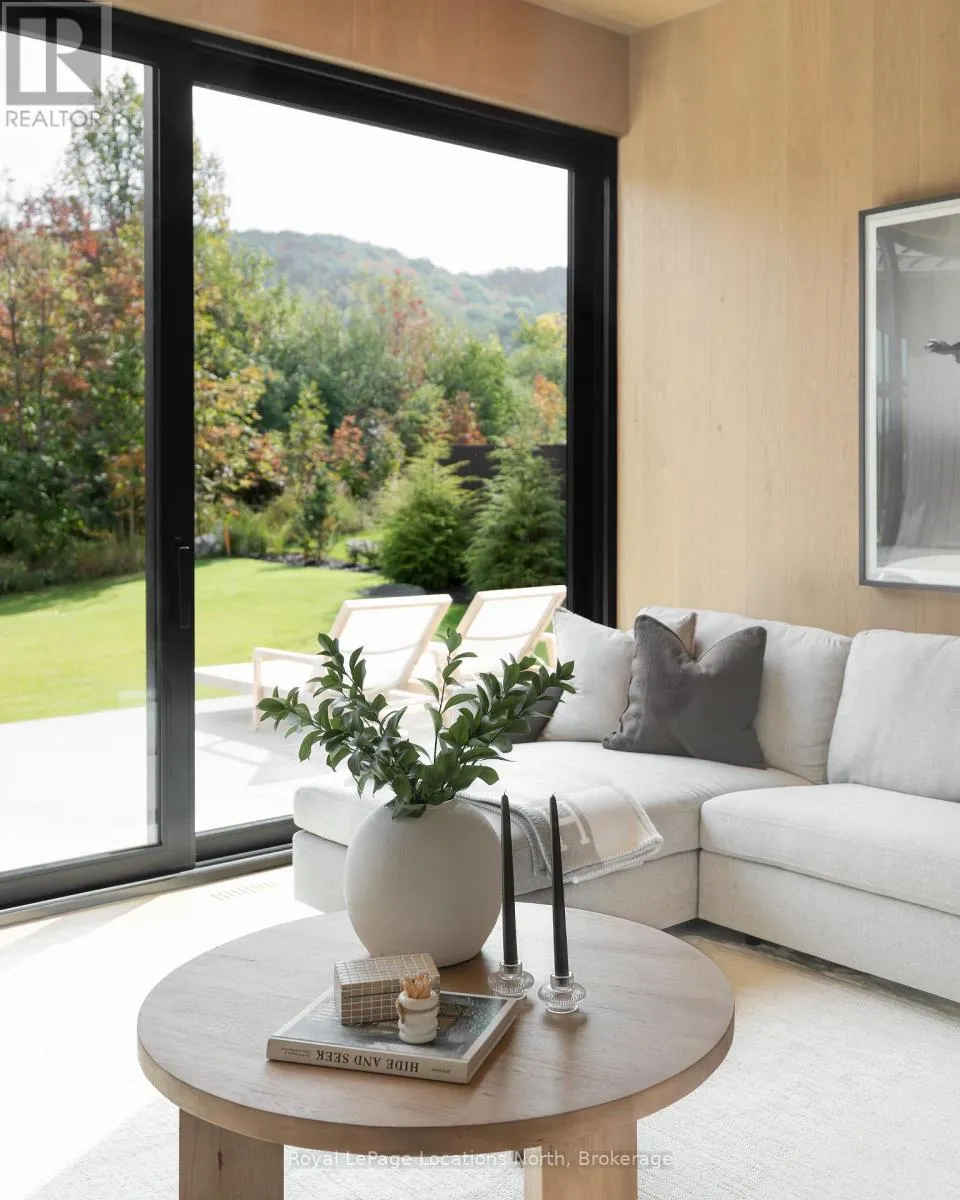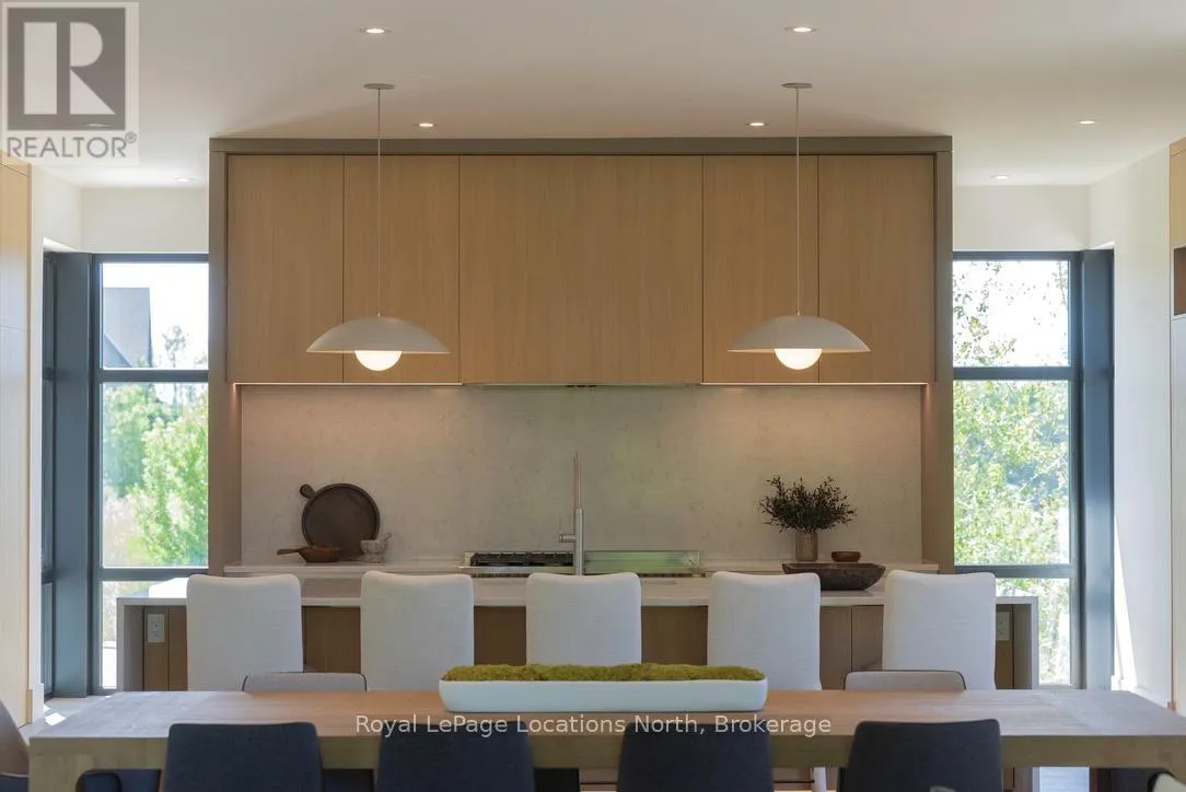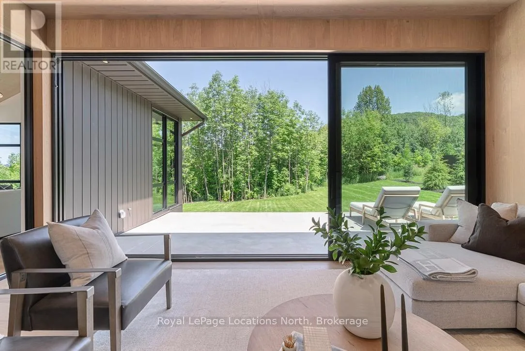 Cross Streets: George McRae. ** Directions: Camperdown, Right on George McRae, Left on Maryward. Welcome to this exceptional, architecturally refined residence where luxury, functionality, and design exist in perfect harmony. Thoughtfully curated for elevated living, this high-end custom home is a rare offering that seamlessly blends innovative features with warm, organic finishes. Step inside and be greeted by a striking wall of greenery framed by expansive windows. The great room sets the tone with soaring vaulted ceilings, rich wood accents, ambient mood lighting, and oversized aluminum windows that flood the space with natural light, creating a sense of openness and calm. At the heart of the home lies a dream kitchen, outfitted with a 30" panelled fridge and 30" freezer, a 48" induction/gas combo stove, wine fridge, ample storage and a walk-in pantry complete with a sink, second dishwasher, and built-in coffee station the perfect blend of luxury and function. The spacious dining area flows seamlessly into a heated four-season sunroom. With massive sliding doors leading to the outdoors, this flexible space is perfect for year-round entertaining and relaxed indoor-outdoor living. Main floor powder room with a full shower has been thoughtfully designed with future pool or hot tub access in mind. Upstairs, you'll find three expansive bedrooms, each with custom walk-in closets and spa-inspired ensuites. The primary retreat offers serene escarpment views from bed and a glimpse of the bay from the closet window a peaceful start to everyday. The finished lower level offers exceptional versatility, featuring two oversized bedrooms, a home office, storage, heated floors and a roughed-in wet bar. Whether you envision a media lounge, gym, or guest suite, the possibilities are endless. Perfectly located in one of the areas most desirable communities - hike from your doorstep, stroll to the water, or hop on the Georgian Trail. Just minutes from the Georgian Bay Club, private ski clubs, and the charm of Thornbury. Taxes have not yet been assessed. (id:27476)