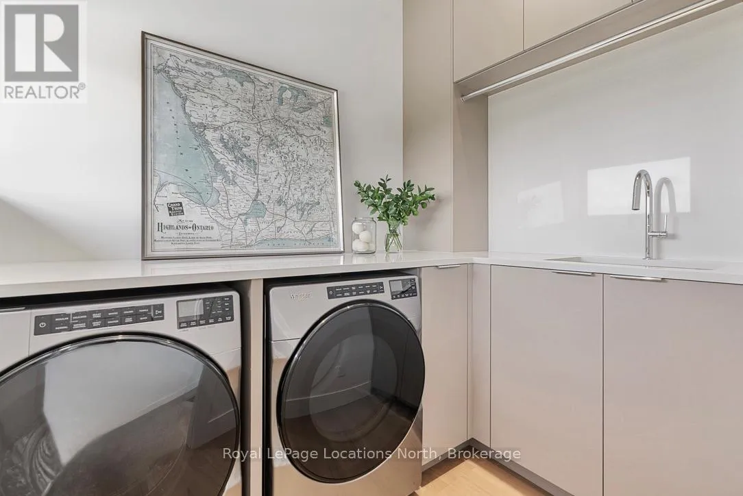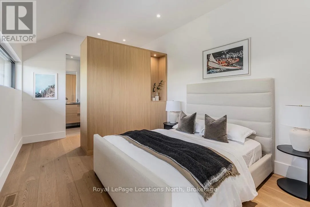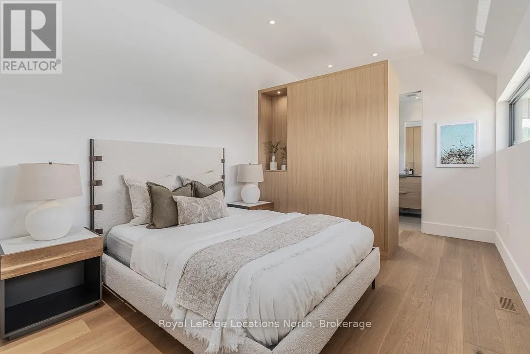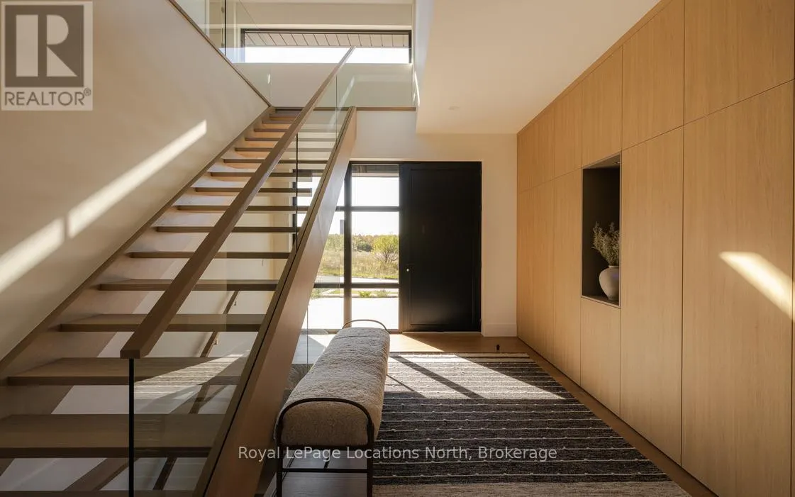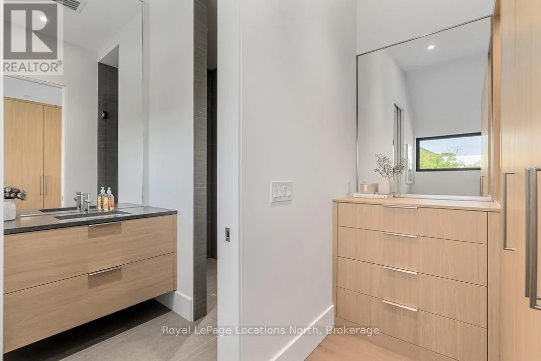 Cross Streets: George McRae. ** Directions: Camperdown, Right on George McRae, Left on Maryward. Welcome to this exceptional, architecturally refined residence where luxury, functionality, and design exist in perfect harmony. Thoughtfully curated for elevated living, this high-end custom home is a rare offering that seamlessly blends innovative features with warm, organic finishes. Step inside and be greeted by a striking wall of greenery framed by expansive windows. The great room sets the tone with soaring vaulted ceilings, rich wood accents, ambient mood lighting, and oversized aluminum windows that flood the space with natural light, creating a sense of openness and calm. At the heart of the home lies a dream kitchen, outfitted with a 30" panelled fridge and 30" freezer, a 48" induction/gas combo stove, wine fridge, ample storage and a walk-in pantry complete with a sink, second dishwasher, and built-in coffee station the perfect blend of luxury and function. The spacious dining area flows seamlessly into a heated four-season sunroom. With massive sliding doors leading to the outdoors, this flexible space is perfect for year-round entertaining and relaxed indoor-outdoor living. Main floor powder room with a full shower has been thoughtfully designed with future pool or hot tub access in mind. Upstairs, you'll find three expansive bedrooms, each with custom walk-in closets and spa-inspired ensuites. The primary retreat offers serene escarpment views from bed and a glimpse of the bay from the closet window a peaceful start to everyday. The finished lower level offers exceptional versatility, featuring two oversized bedrooms, a home office, storage, heated floors and a roughed-in wet bar. Whether you envision a media lounge, gym, or guest suite, the possibilities are endless. Perfectly located in one of the areas most desirable communities - hike from your doorstep, stroll to the water, or hop on the Georgian Trail. Just minutes from the Georgian Bay Club, private ski clubs, and the charm of Thornbury. Taxes have not yet been assessed. (id:27476)