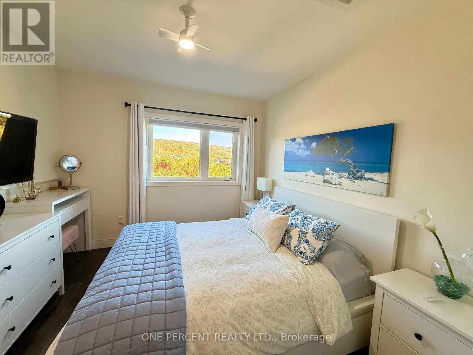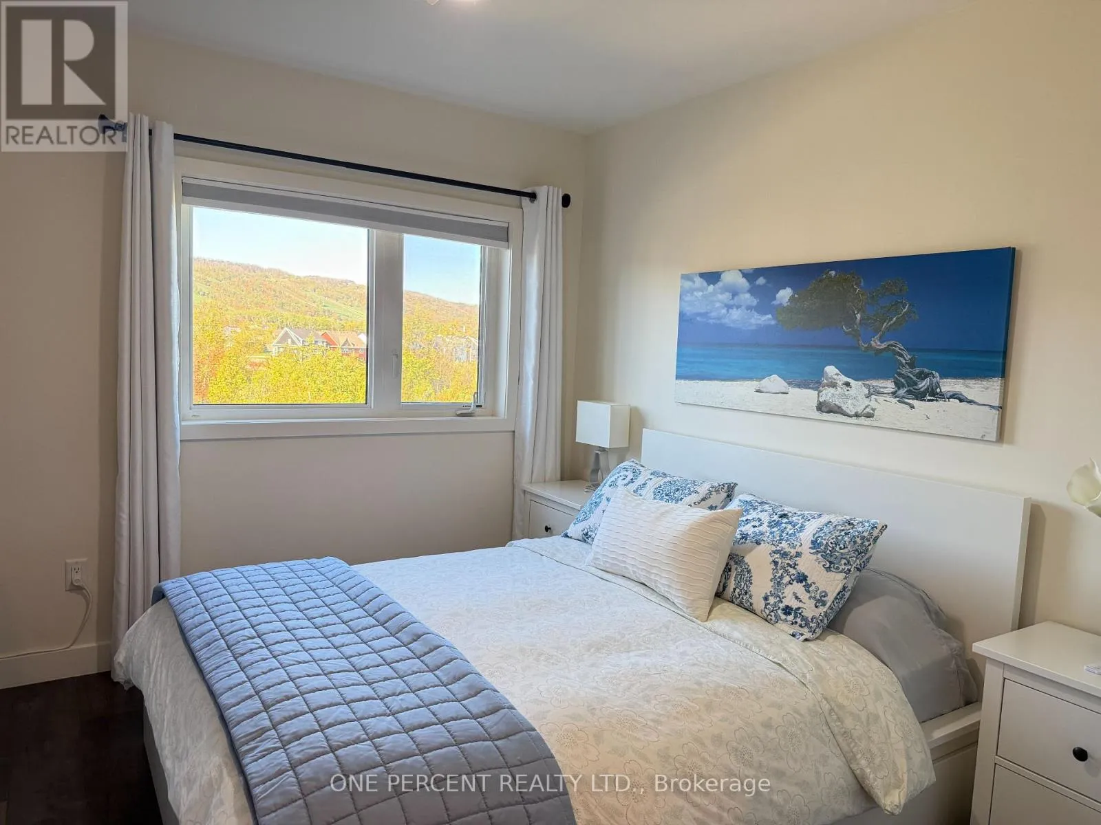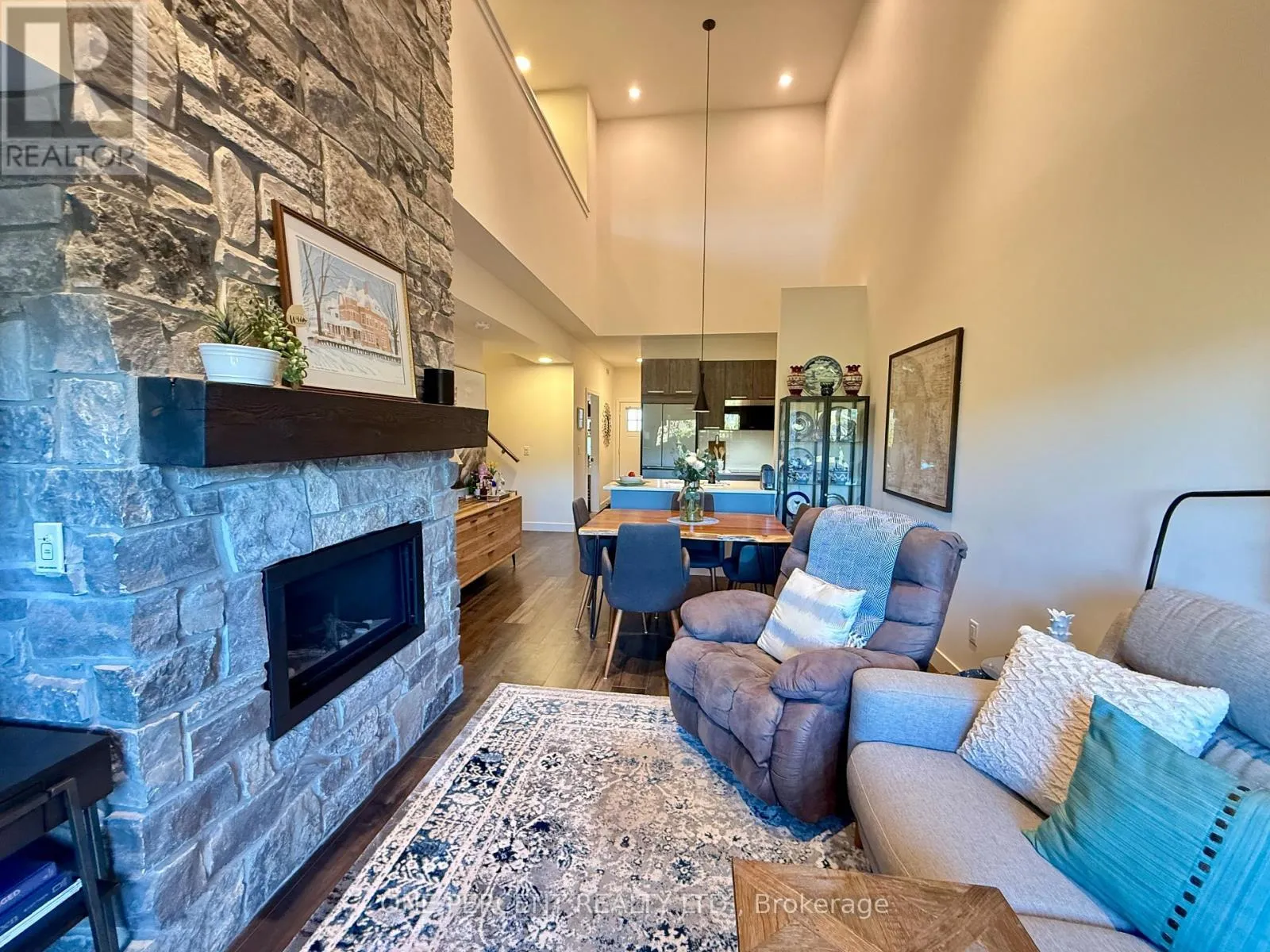 Grey 21 to Beckwith Welcome to Suite 306, 12 Beckwith Lane at Mountain House. This rare, top-floor, two-storey, three-bedroom retreat with over 1100 square feet, showcases the best of Blue. From the moment you step inside, the dramatic volume and mountain-facing windows steal the scene, filling the home with natural light and framing the escarpment in every season. Quietly positioned with no one above, its the calm, private getaway you have been looking for.The main level blends an efficient kitchen with stone counters and stainless appliances into open dining and living space with a fireplace. Ideal for relaxed evenings after the slopes or a sunny morning coffee before hitting the trails. Two generous bedrooms on this level offer flexible uses as guest rooms, home office, or kid-friendly bunk room. Also on this level you will find a well appointed bathroom and in-suite laundry adding everyday convenience. Upstairs is a loft-style primary bedroom with its own bathroom, creating a comfortable separation of space for family and guests.Step outside and you are minutes to everything: Blue Mountain Village, private and public ski clubs, golf, Scandinave Spa, Georgian Bay beaches, and downtown Collingwood. On site, owners enjoy year-round amenities including an outdoor heated pool, outdoor heated hot tub, sauna, fitness room, and the Après Lodge with its outdoor fireplace and gathering area, perfect for unwinding after a day on the escarpment.Thoughtfully maintained and move-in ready, Suite 306 delivers the hard-to-find combination of top-floor privacy, a true two-storey layout, and three full bedrooms in an unbeatable four-season location. (id:27476)