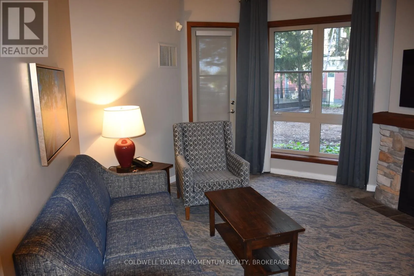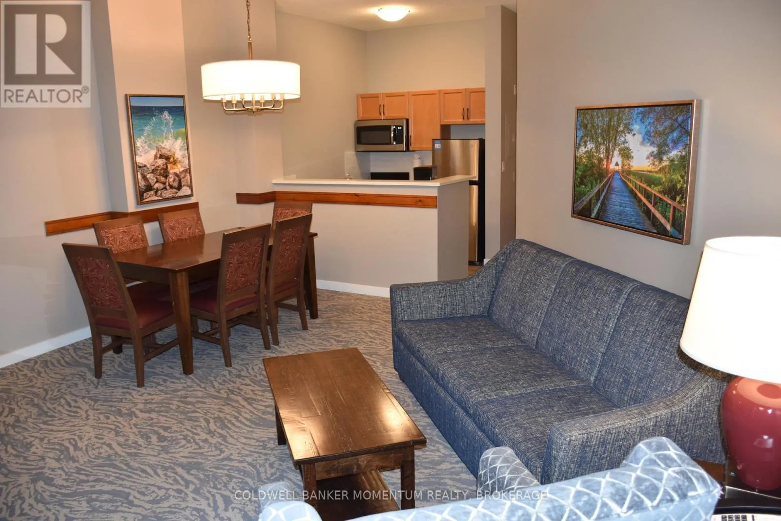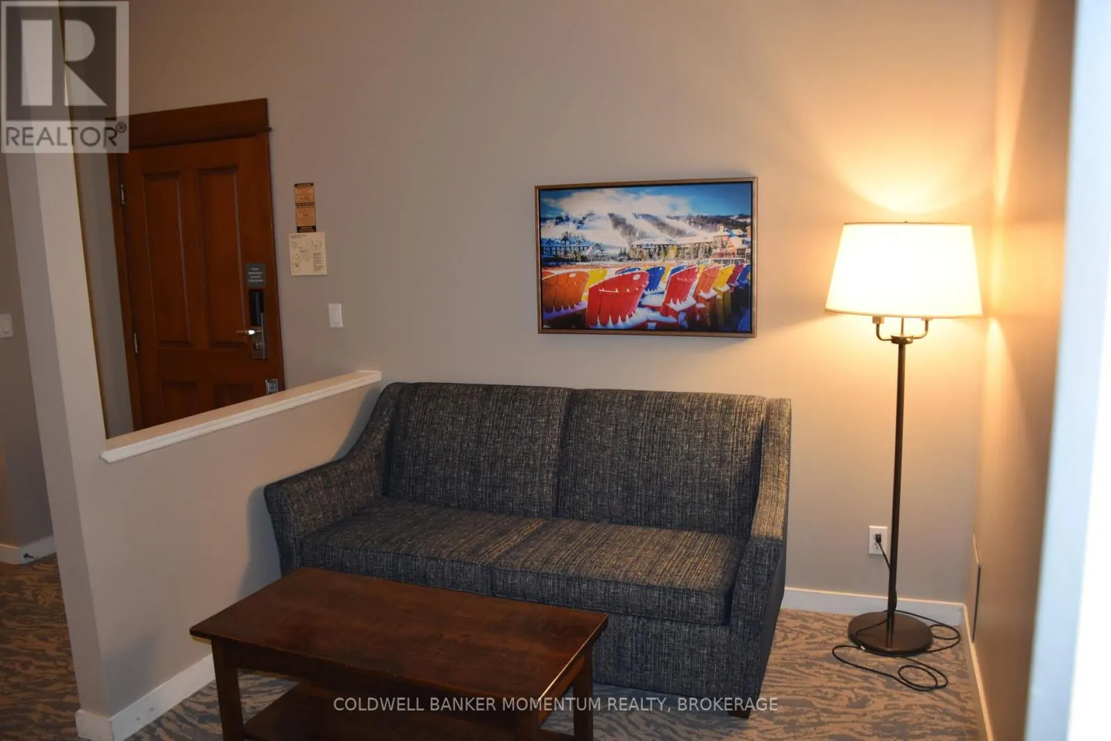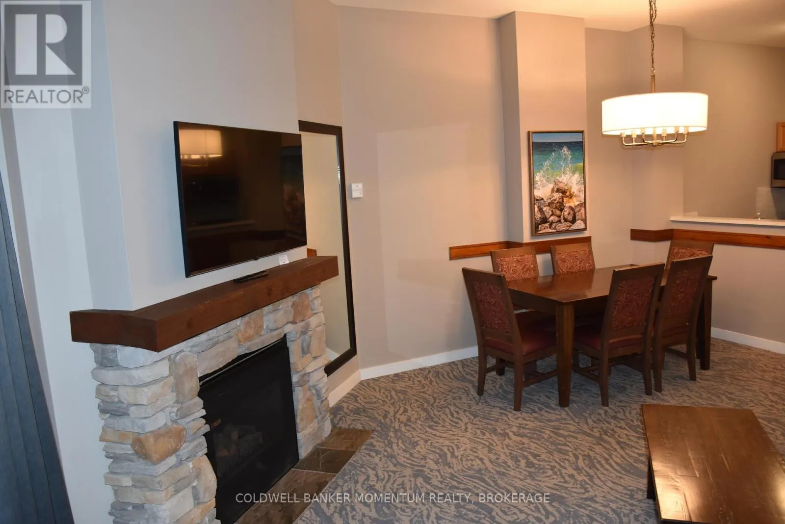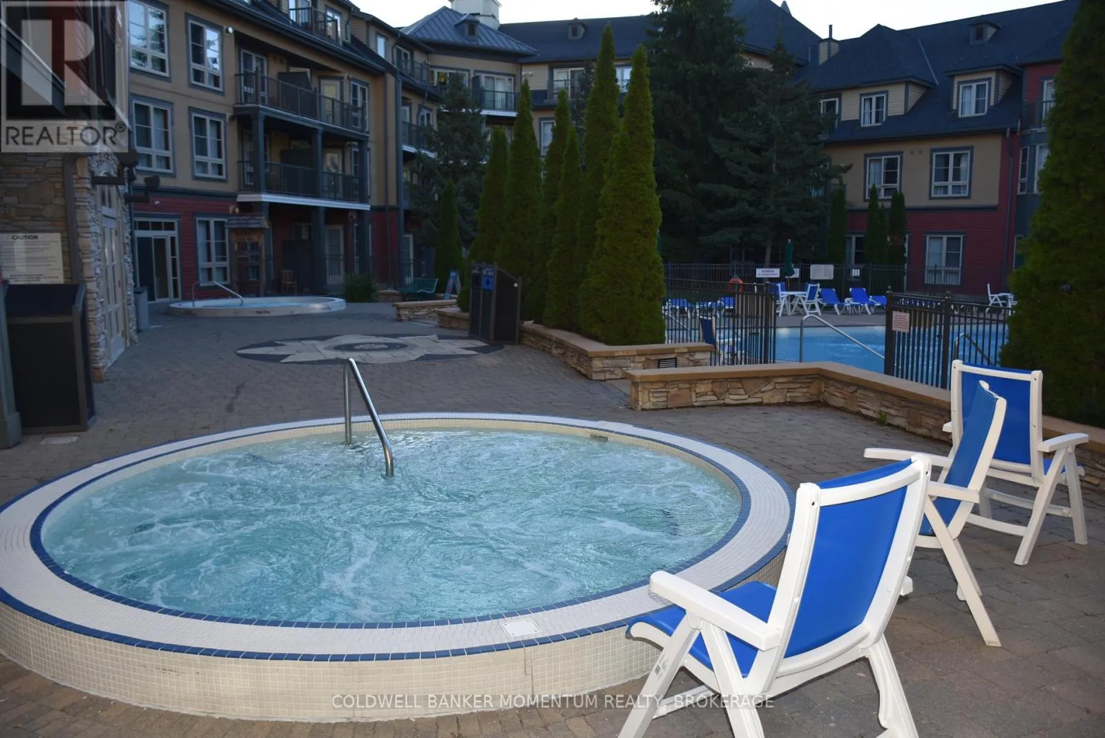 Cross Streets: Grey Rd 19 and Jozo Weider Blvd. ** Directions: HWY 410 North, left on HWY 17, Right on HWY 124, Straight through to Osprey-Clearview Line, Right on HWY 91, Left of Nottawasaga Concession Rd 10, Right on Mountain Rd. At roundabout take first exit Grey Rd 19, Left on Jozo Weider Blvd. Welcome to carefree resort living at the Grand Georgian in the heart of Blue Mountain Village! This beautifully refurbished one-bedroom plus den suite offers quick and easy access to parking and the lobby, making it one of the most convenient units in the building. The fully furnished ground-floor suite features a modern kitchen, gas fireplace, 10' ceilings, double sinks in the bathroom, and a spacious den that, along with the pull-out sofa, comfortably accommodates up to six guests. Enjoy your private patio, perfect for relaxing after a day on the slopes or exploring the vibrant village. Owners enjoy full use of Grand Georgian amenities, including a seasonal outdoor heated pool, two year-round hot tubs, sauna, fitness room, owners ski locker, and heated underground parking. Steps to the Silver Bullet Ski Lift, shops, restaurants, and year-round activities. Keep the suite for exclusive personal use or participate in the Blue Mountain Resort rental program to help offset ownership costs while maintaining personal use flexibility. Additional Features: Fully updated in 2020, All utilities (hydro, gas, water, cable, internet) included in condo fees, new Heat pump 2021. HST is applicable but can be deferred with HST number and participation in rental program, 2% + HST Blue Mountain Village Association (BMVA) entry fee applies, Annual BMVA fee: $1.08 per sq. ft. Home ownership at Blue Mountain Resorts has its privileges with fantastic discounts on seasonal recreation and activities for homeowners, their spouses and dependant children under 19. Perfect as a vacation home, investment property, or both, this turn-key suite is your key to four-season living in one of Ontarios' most sought-after resort destinations. (id:27476)