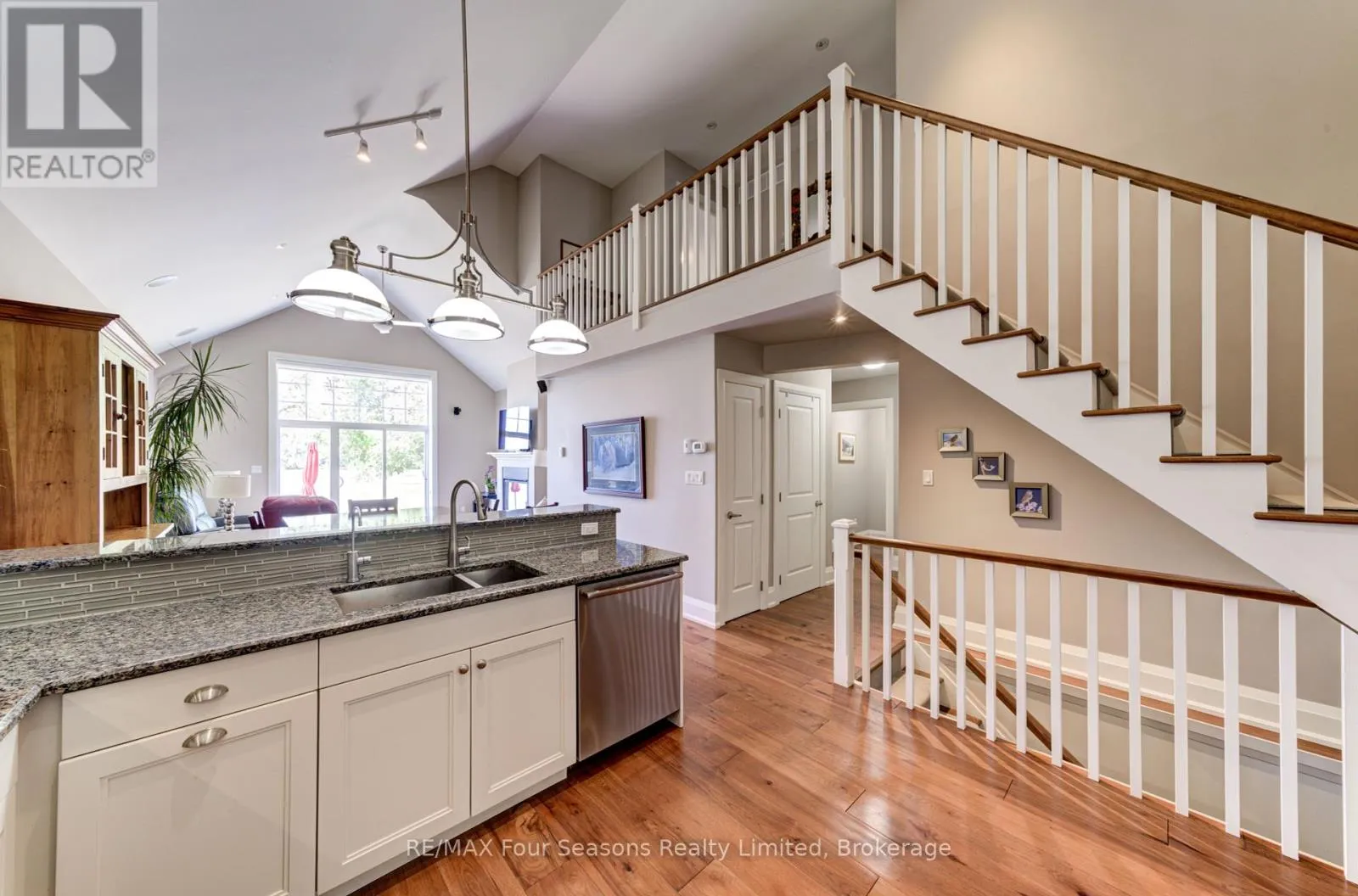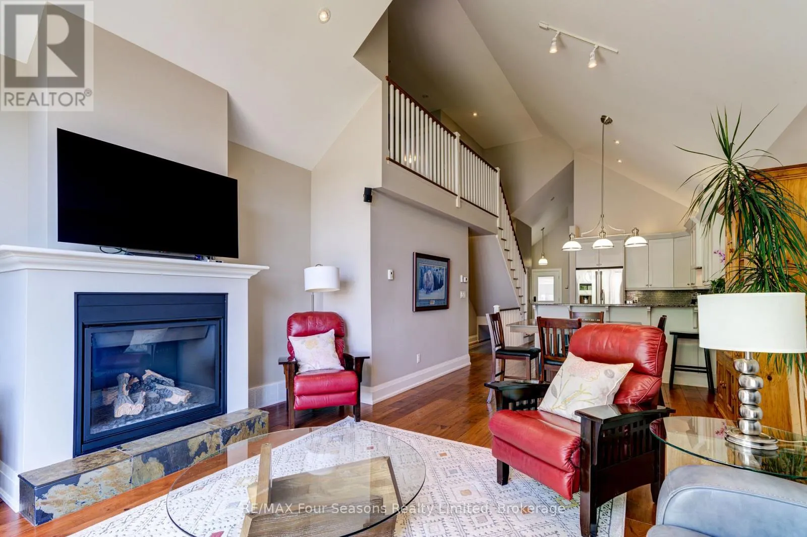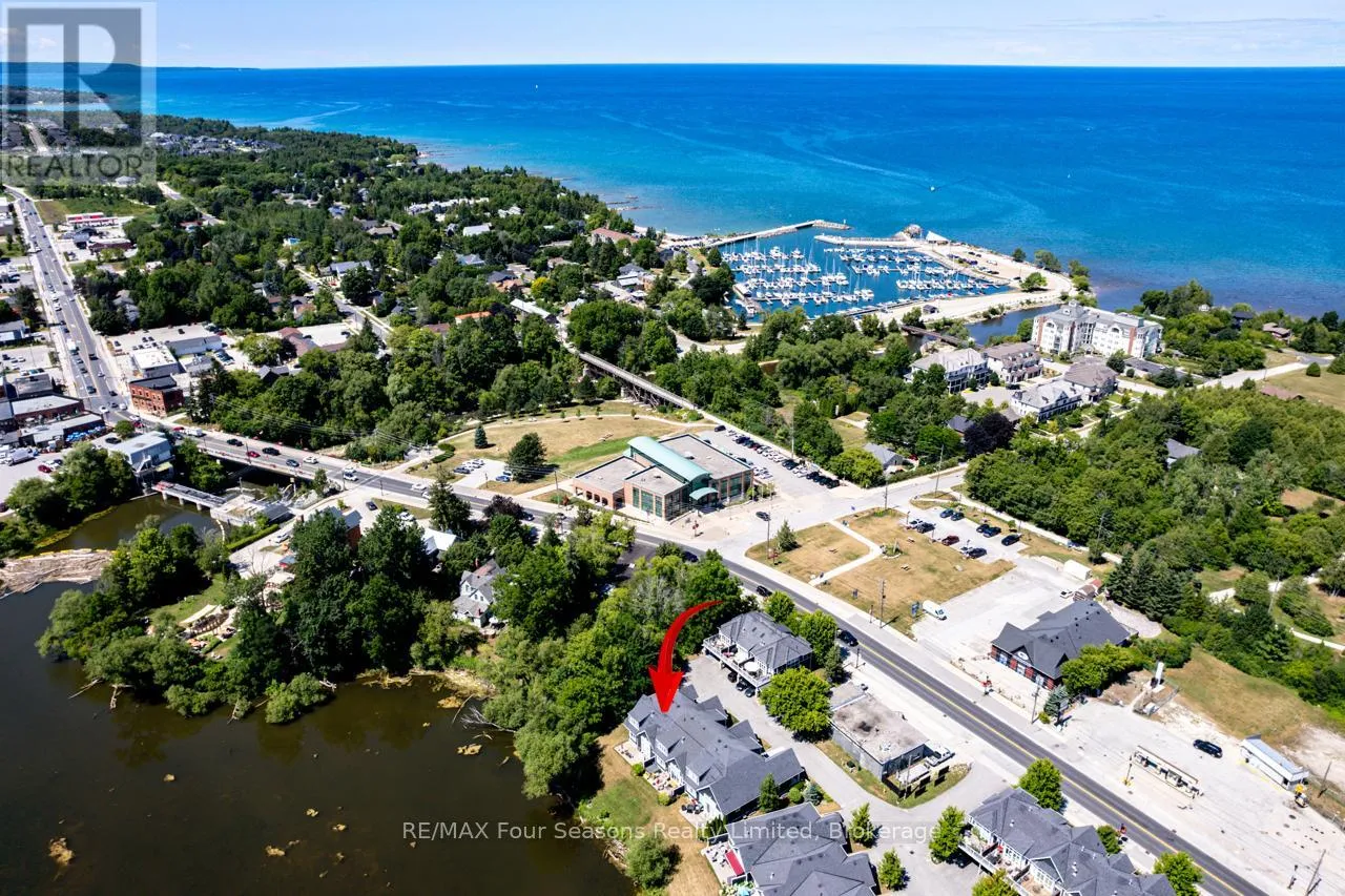 Cross Streets: King St and Mill St. ** Directions: Hwy 26 West to King Street. THE MILL POND in the heart of Thornbury presents a great waterfront opportunity. This 4 bedroom bungaloft home is the best location in this small enclave of homes where nature meets peaceful contemporary living. This million dollar unobstructed WATERFRONT VIEW offers peace and tranquility while watching the activities of swans, ducks, egrets, beaver, otters and more. Yet only a few minutes walk to the main street of Thornbury with it's boutique shops, art galleries and restaurants. Stroll down to the marina and Bayview Park or the fish ladder on the damn. For skiers it's only a 5 minute drive to Georgian Peaks and 15 minutes to Blue Mountain and other private ski clubs. This end unit bungaloft boasts the best location on the MILLPOND and the largest floorplan with a double car garage. MAIN FLOOR PRIMARY bedroom with ensuite and heated floors has large windows to take in the view of the water. A further bedroom on the main level can be an office or den. Open plan main floor living with beautiful hemlock flooring, a custom kitchen with granite counters, stainless steel appliances and island bar. Dining area and living room share soaring cathedral ceilings and a gas fireplace for those cold winter evenings. French doors open to the patio area with beautifully landscaped gardens. The lofted second level offers two further bedrooms, a large four piece bathroom and a sitting area overlooking the main level. Thoughtfully planned and constructed with extra insulation in the living room and master bedroom walls, energy efficient windows, HRV system, on demand hot water heater, The attached double car garage is insulated and has inside entry door. A shared dock offers you a place to watch beautiful s a place sunrises as well as access for your kayaks/canoes. On site rack for your canoes/kayaks. (id:27476)