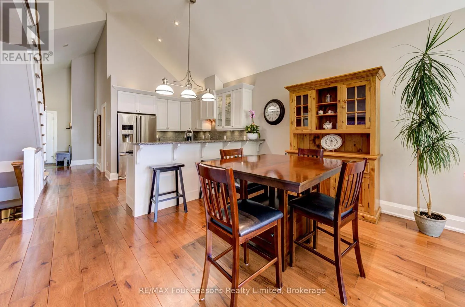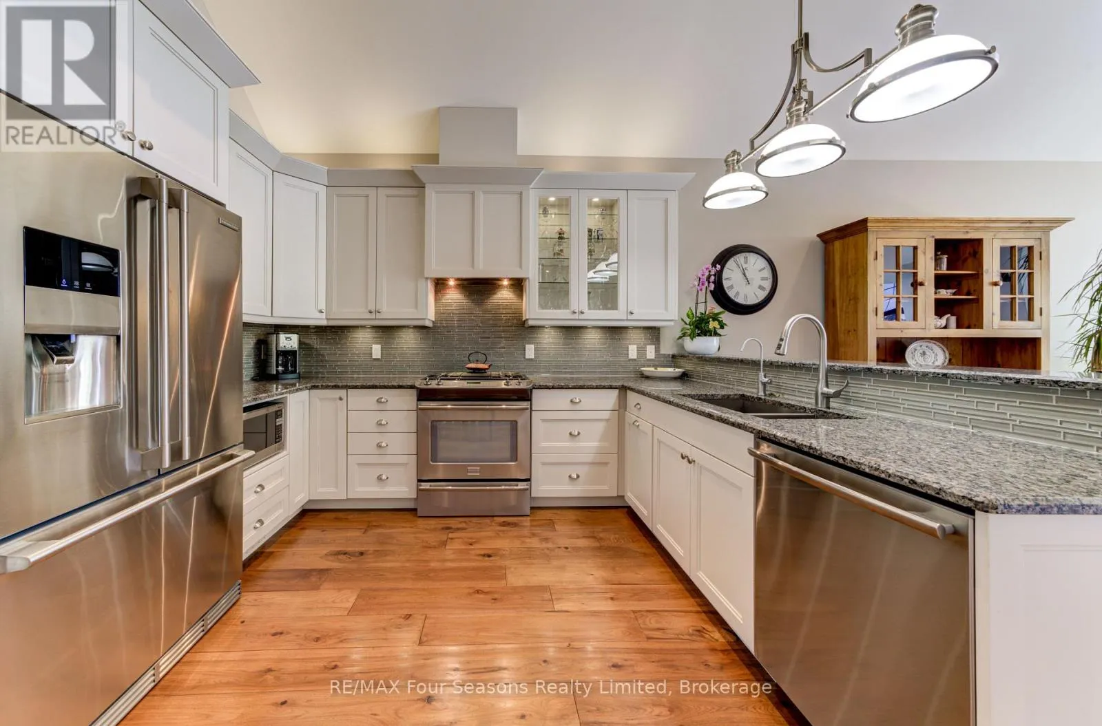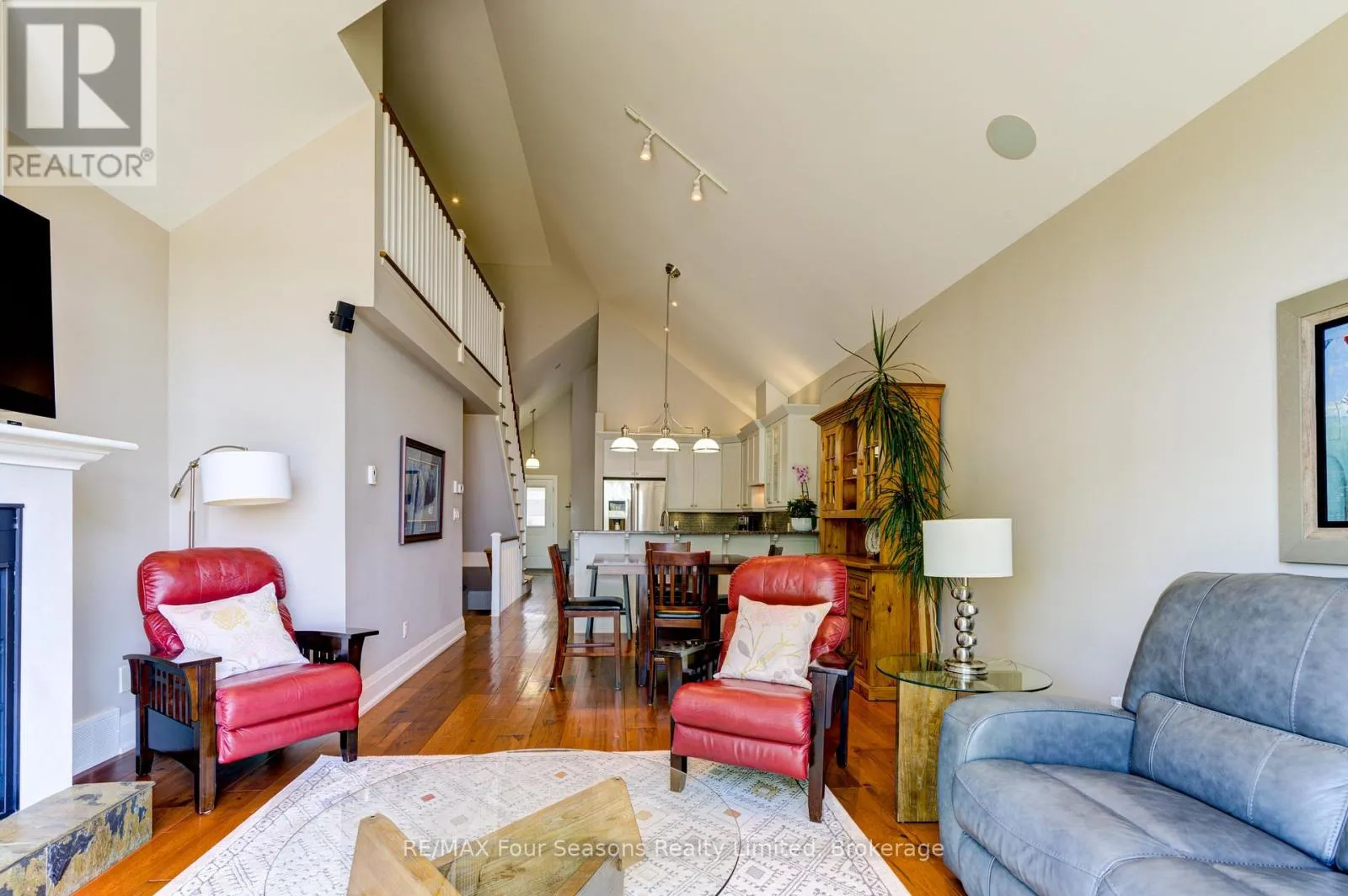 Cross Streets: King St and Mill St. ** Directions: Hwy 26 West to King Street. THE MILL POND in the heart of Thornbury presents a great waterfront opportunity. This 4 bedroom bungaloft home is the best location in this small enclave of homes where nature meets peaceful contemporary living. This million dollar unobstructed WATERFRONT VIEW offers peace and tranquility while watching the activities of swans, ducks, egrets, beaver, otters and more. Yet only a few minutes walk to the main street of Thornbury with it's boutique shops, art galleries and restaurants. Stroll down to the marina and Bayview Park or the fish ladder on the damn. For skiers it's only a 5 minute drive to Georgian Peaks and 15 minutes to Blue Mountain and other private ski clubs. This end unit bungaloft boasts the best location on the MILLPOND and the largest floorplan with a double car garage. MAIN FLOOR PRIMARY bedroom with ensuite and heated floors has large windows to take in the view of the water. A further bedroom on the main level can be an office or den. Open plan main floor living with beautiful hemlock flooring, a custom kitchen with granite counters, stainless steel appliances and island bar. Dining area and living room share soaring cathedral ceilings and a gas fireplace for those cold winter evenings. French doors open to the patio area with beautifully landscaped gardens. The lofted second level offers two further bedrooms, a large four piece bathroom and a sitting area overlooking the main level. Thoughtfully planned and constructed with extra insulation in the living room and master bedroom walls, energy efficient windows, HRV system, on demand hot water heater, The attached double car garage is insulated and has inside entry door. A shared dock offers you a place to watch beautiful s a place sunrises as well as access for your kayaks/canoes. On site rack for your canoes/kayaks. (id:27476)