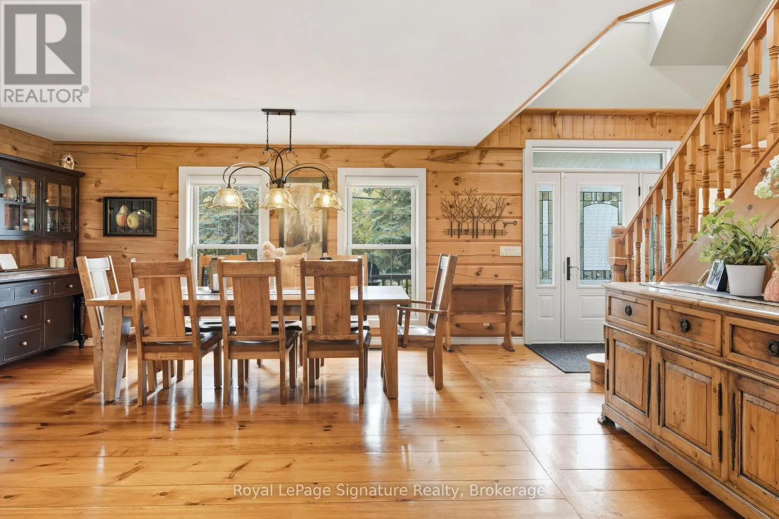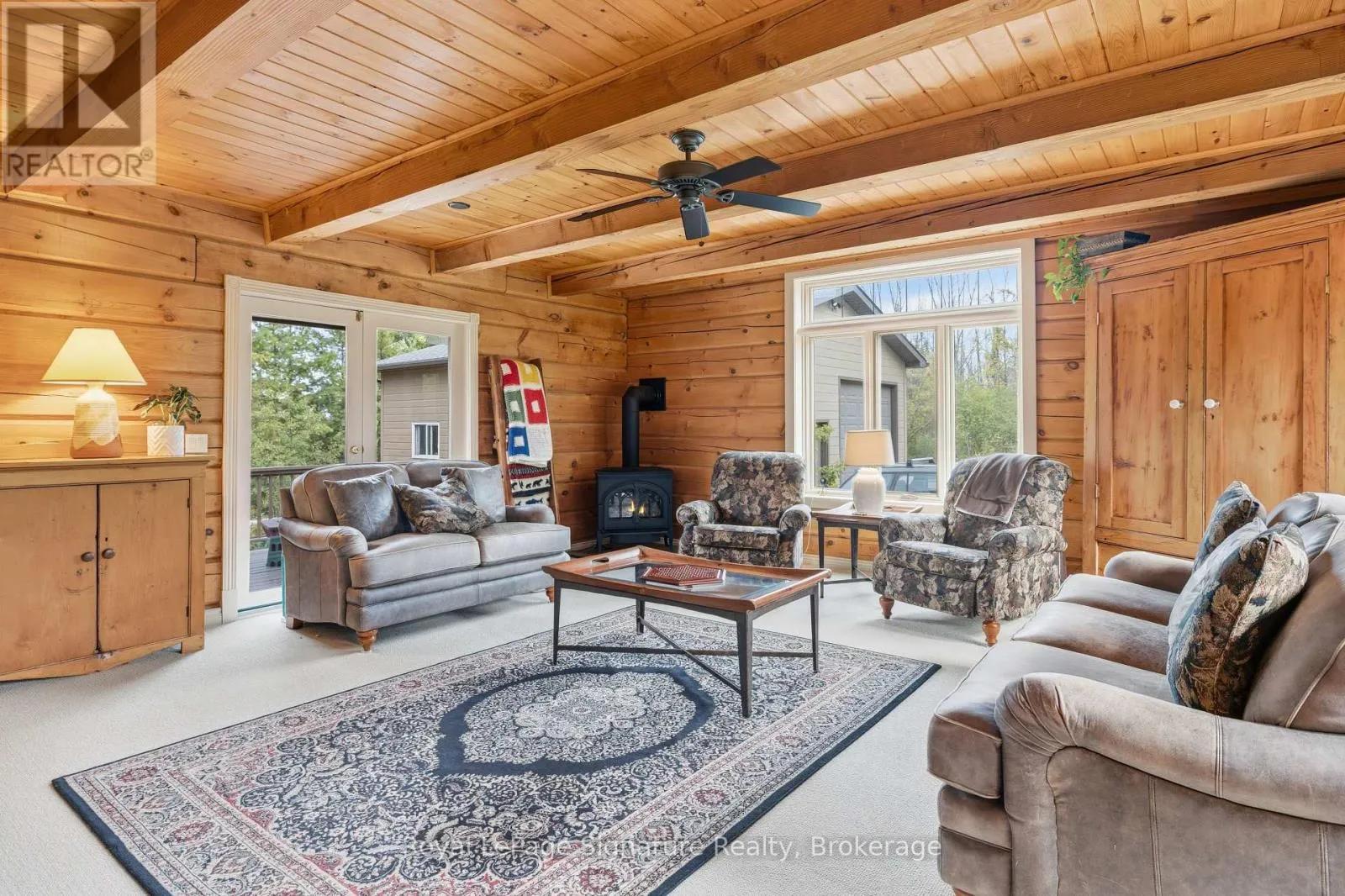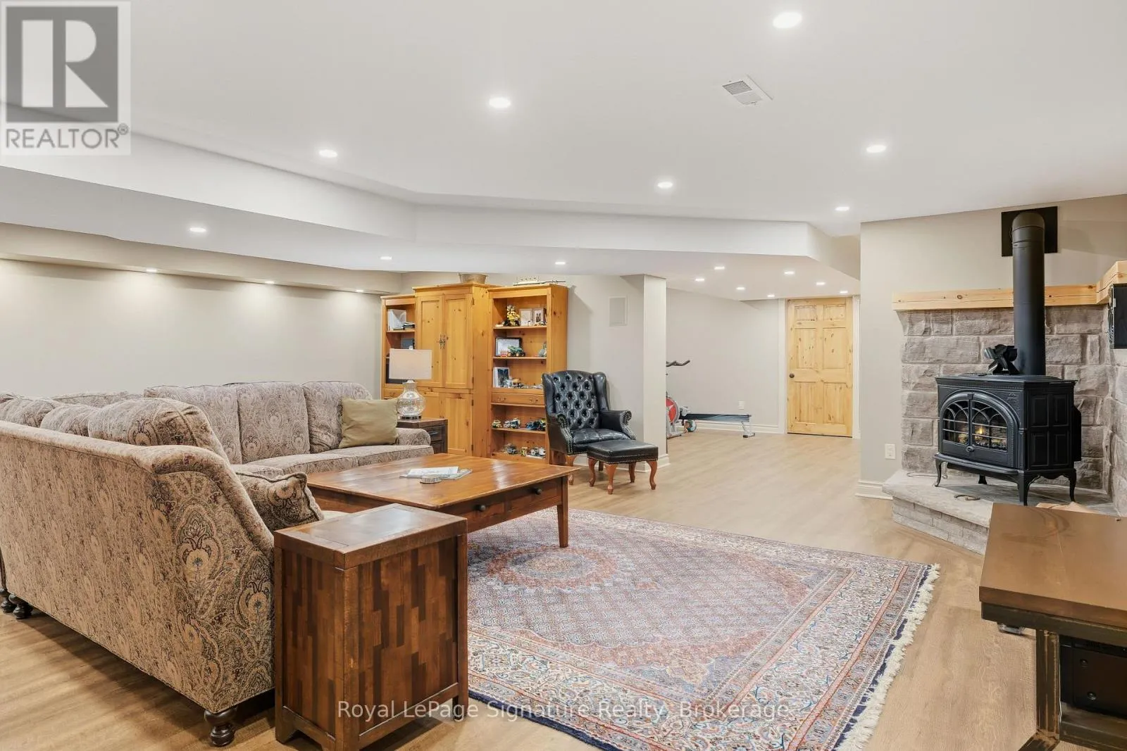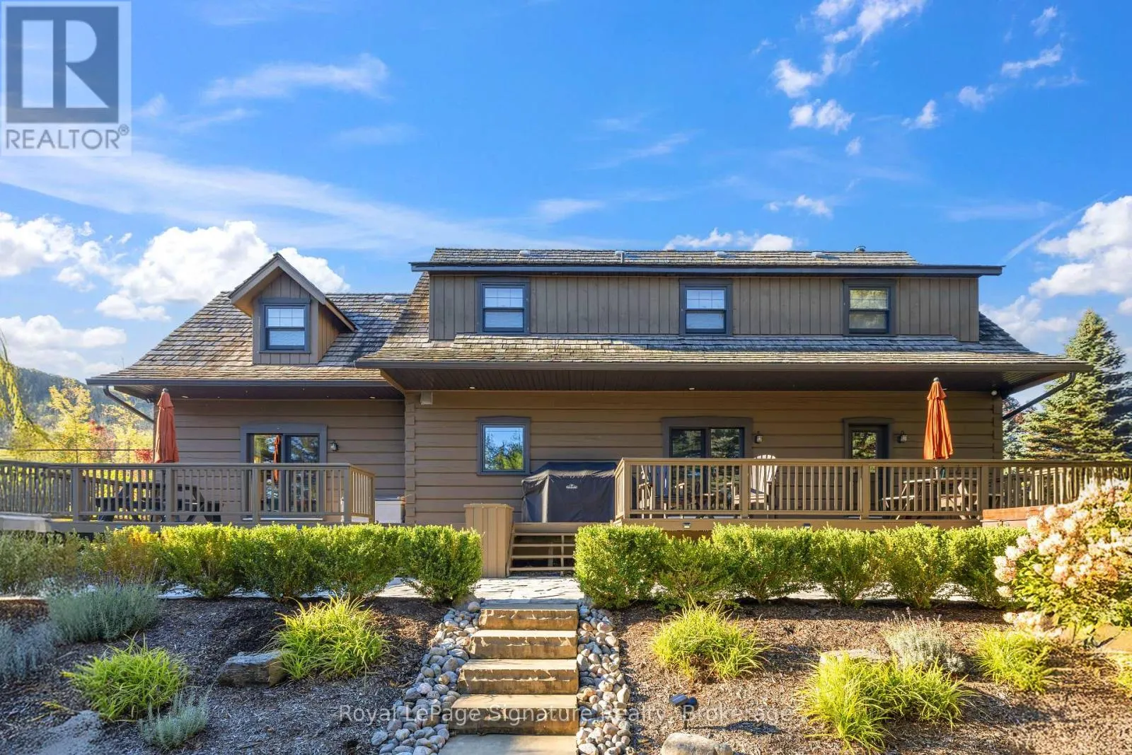 Cross Streets: Hwy 26 to Camperdown, Camperdown south to Old Lakeshore Rd. to #133. ** Directions: HWY 26 south on Camperdown Rd east on Old Lakeshore Rd to sign. Tucked between the Georgian Peaks and the Georgian Bay Club, this beautifully appointed 5-bedroom, 4-bath home offers the perfect blend of warmth, character, and recreation-ready living. Set on a large, landscaped lot that backs directly onto the Georgian Trail, this property invites a lifestyle filled with outdoor adventure and memorable gatherings with family and friends.Inside, wide-plank wood floors and a wood-burning fireplace create an inviting atmosphere, while the open-concept layout flows effortlessly for entertaining. The fully finished lower level provides plenty of space for overflow guests, a games room, or cozy movie nights after a day on the slopes or at the beach. Step outside to an expansive back deck where you can soak in the hot tub beneath the stars, or follow the trail from your backyard for a morning walk or bike ride. The oversized 36'x24' detached garage with 10'x9' door offers endless possibilities-storage for your gear, a workshop, or even future expansion. With the potential for future lot severance, this property is not only a place to live-it's a place to grow, gather, and create lasting memories. Ideally situated close to skiing, golf, trails, and the waterfront, and just a short drive to Thornbury, Blue Mountain Village, and Collingwood. (id:27476)