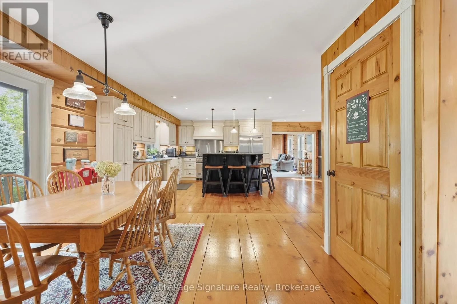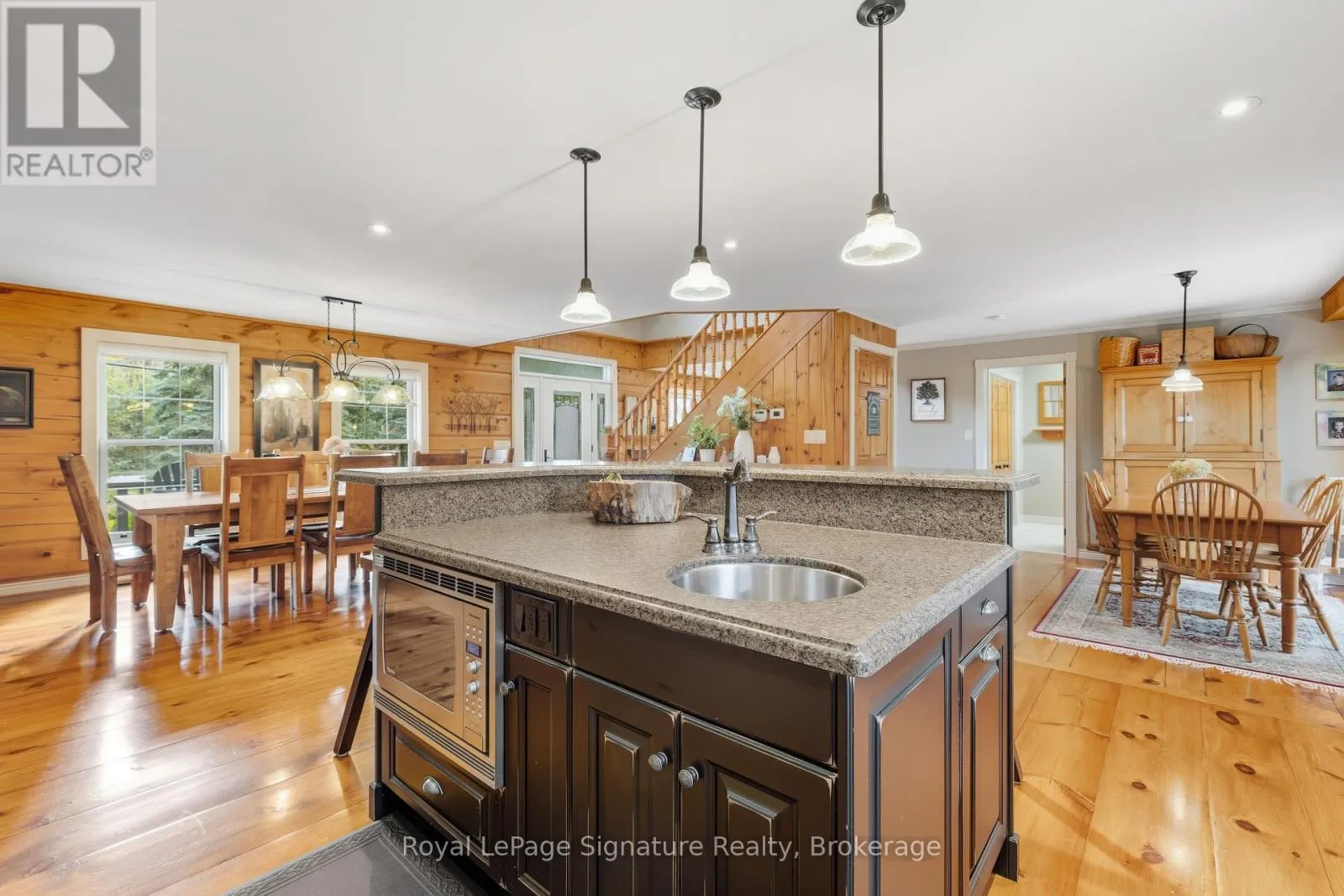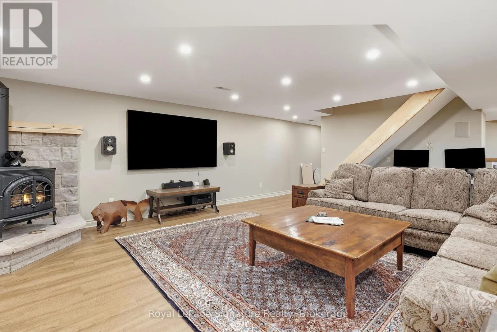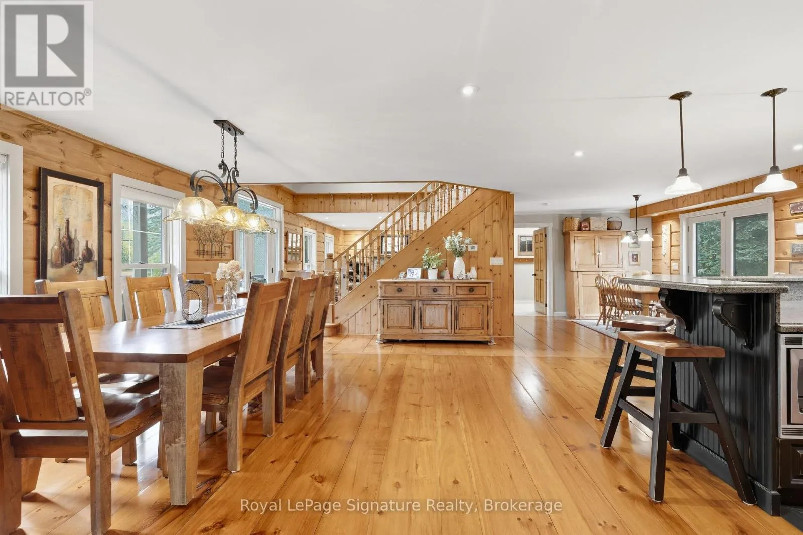 Cross Streets: Hwy 26 to Camperdown, Camperdown south to Old Lakeshore Rd. to #133. ** Directions: HWY 26 south on Camperdown Rd east on Old Lakeshore Rd to sign. Tucked between the Georgian Peaks and the Georgian Bay Club, this beautifully appointed 5-bedroom, 4-bath home offers the perfect blend of warmth, character, and recreation-ready living. Set on a large, landscaped lot that backs directly onto the Georgian Trail, this property invites a lifestyle filled with outdoor adventure and memorable gatherings with family and friends.Inside, wide-plank wood floors and a wood-burning fireplace create an inviting atmosphere, while the open-concept layout flows effortlessly for entertaining. The fully finished lower level provides plenty of space for overflow guests, a games room, or cozy movie nights after a day on the slopes or at the beach. Step outside to an expansive back deck where you can soak in the hot tub beneath the stars, or follow the trail from your backyard for a morning walk or bike ride. The oversized 36'x24' detached garage with 10'x9' door offers endless possibilities-storage for your gear, a workshop, or even future expansion. With the potential for future lot severance, this property is not only a place to live-it's a place to grow, gather, and create lasting memories. Ideally situated close to skiing, golf, trails, and the waterfront, and just a short drive to Thornbury, Blue Mountain Village, and Collingwood. (id:27476)