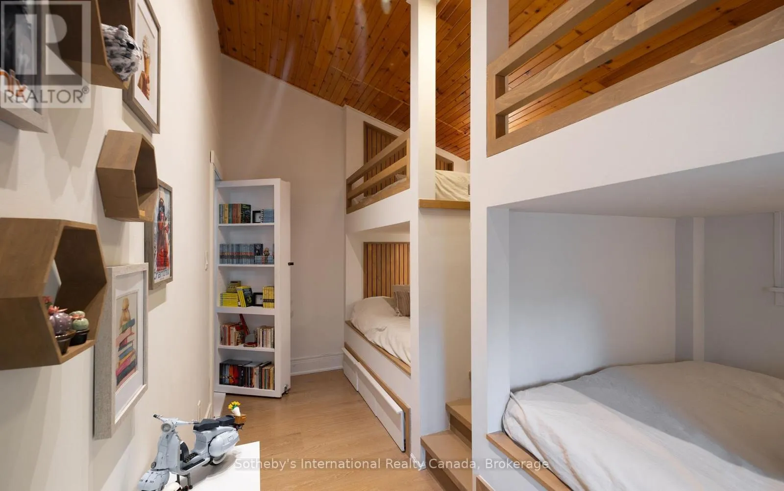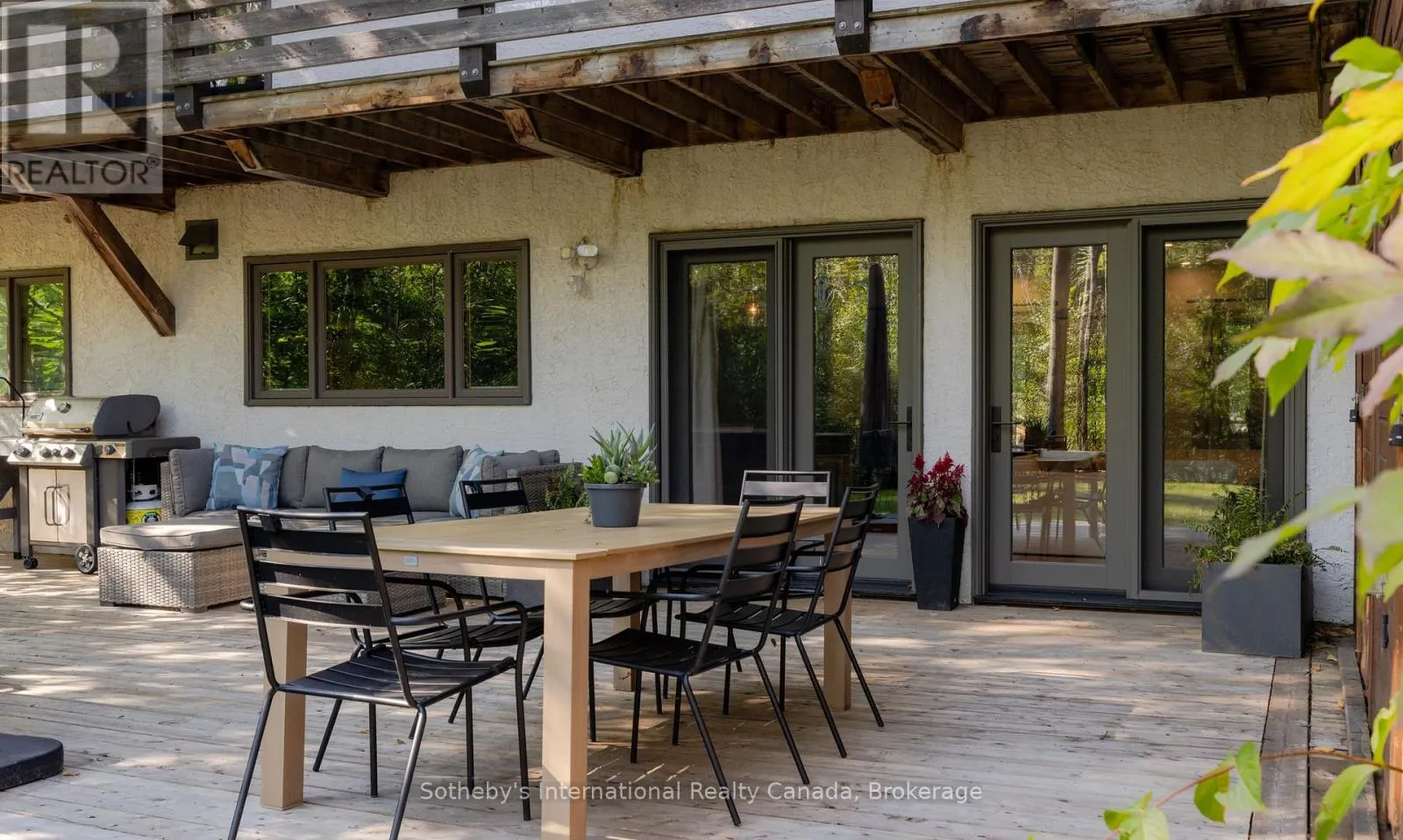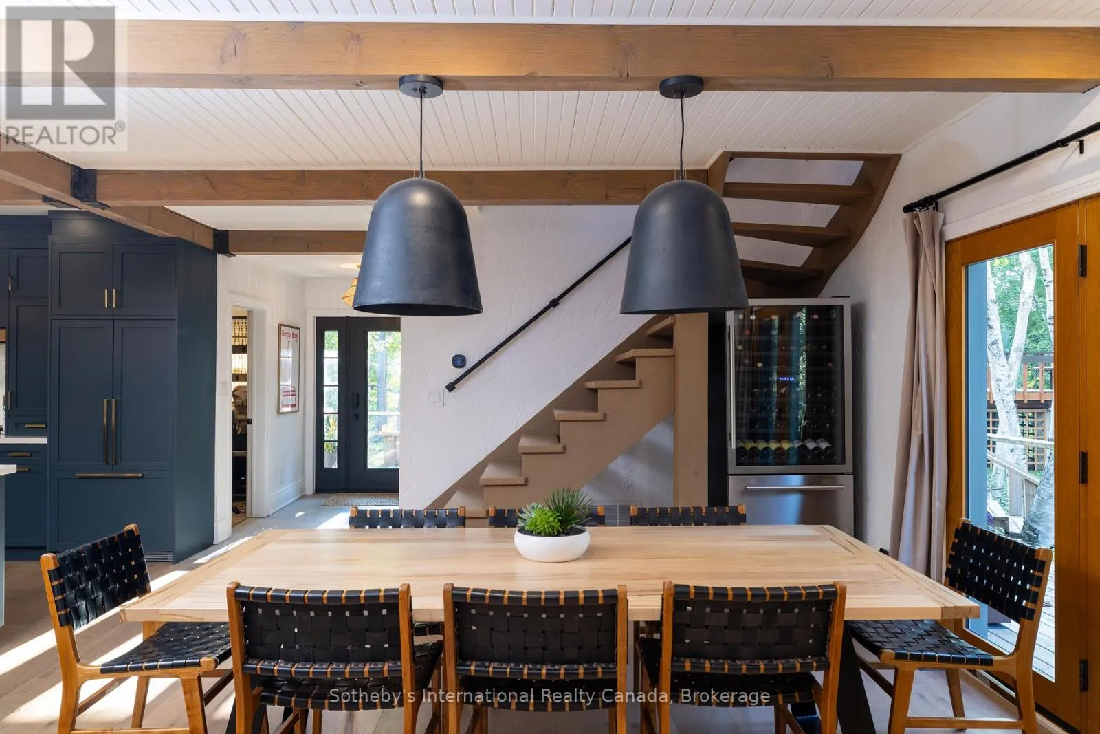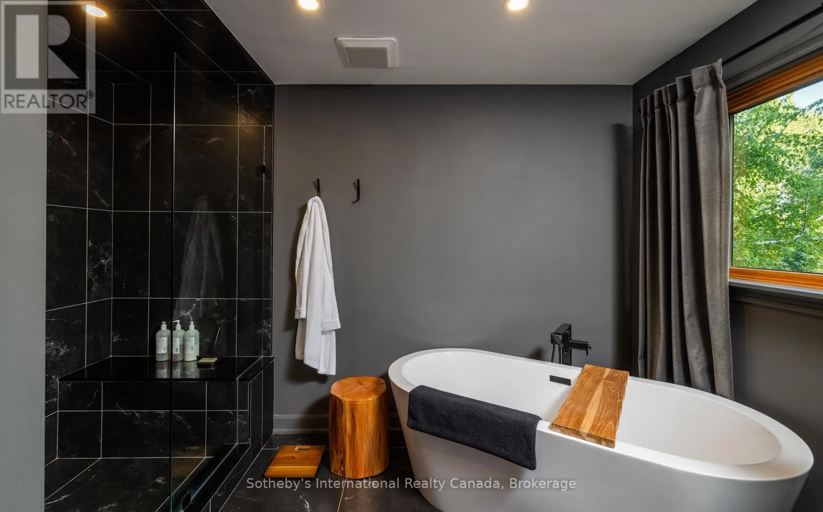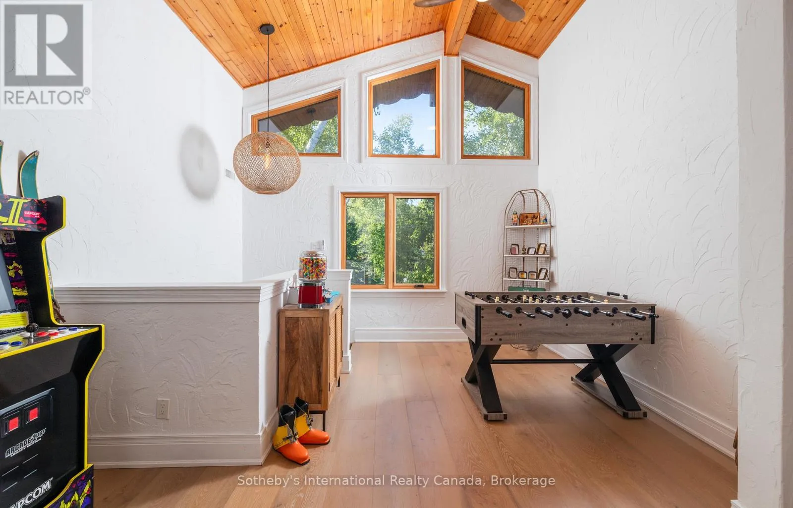 Cross Streets: Highway 26 to Timmons. ** Directions: Hope Street/Timmons Street. Welcome to the ultimate four-season retreat in the heart of Craigleith. Completely reimagined in 2021, this Tyrolean-style chalet was taken back to the studs and rebuilt as a sophisticated modern escape, thoughtfully designed for both weekenders and full-time mountain lovers. With accommodations for 12+ guests, it's the perfect place for family gatherings or entertaining friends after a day on the slopes. Ideally positioned just minutes from private ski clubs, Blue Mountain Village, the Georgian Trail, and your own private community beach, the location is second to none. At the heart of the main level is a stunning custom kitchen by Royal Classic Kitchens, designed for seamless function and flow. Outfitted with quartz countertops, Italian tile, premium appliances, sleek cabinetry, and abundant storage, it caters beautifully to everyday living and elevated entertaining alike. The adjoining dining area offers seating for 12-ideal for lively après dinners-while a custom wet bar with beverage and keg fridges takes entertaining to the next level. The oversized family room, anchored by a dramatic wood-burning fireplace, provides a warm and welcoming focal point for gatherings. From here, walk out to a sunny, south-facing deck featuring a hot tub and generous custom storage-perfect for stowing all your seasonal gear. A stylish mudroom with ski storage and a convenient powder room completes this level with both practicality and polish. Upstairs, a dedicated kids' play zone complements four spacious bedrooms and two modern bathrooms (one is a primary ensuite) with custom finishes and heated floors, while a secret bookshelf door cleverly conceals a whimsical bunk room. Set on a large private lot along one of Craigleith's most coveted streets, this exceptional property blends contemporary luxury with timeless alpine character-ideal as a weekend escape or a year-round home. (id:27476)