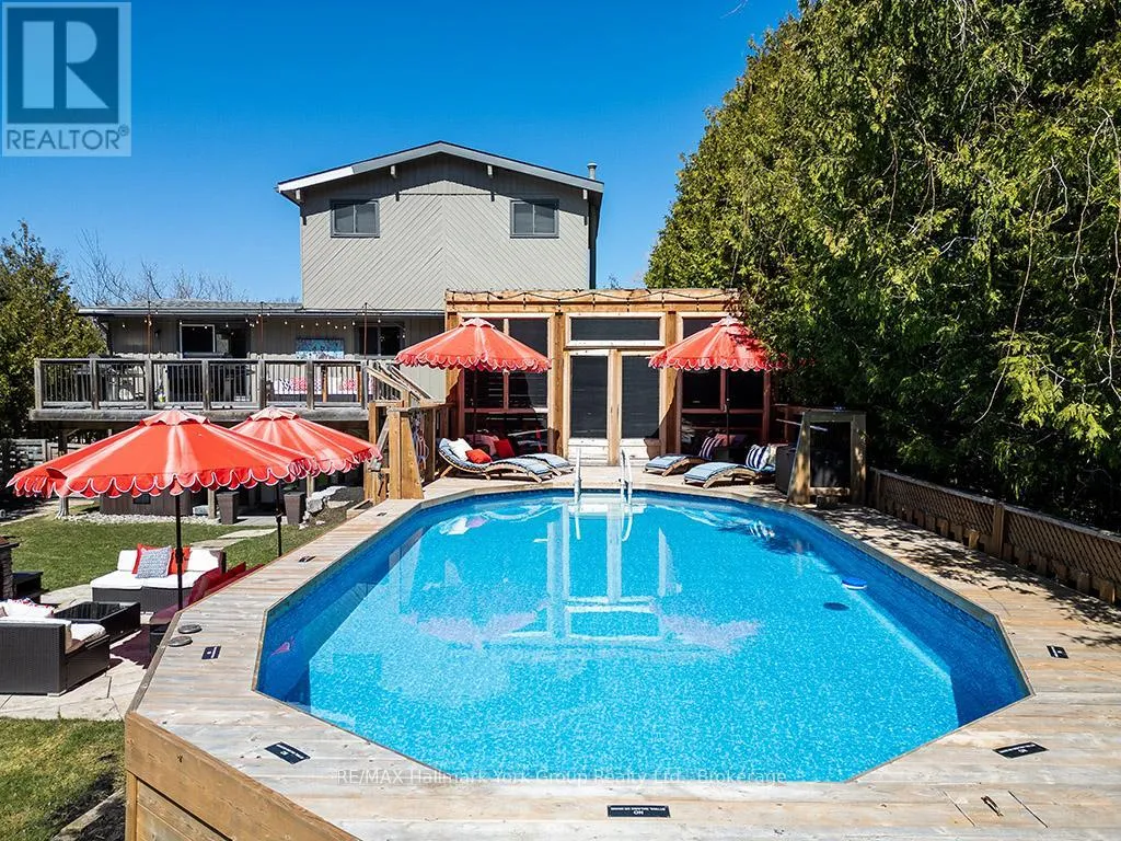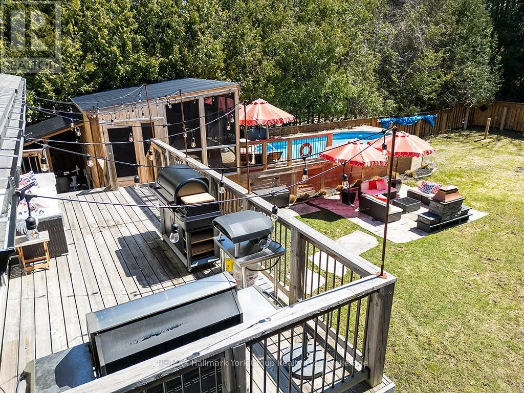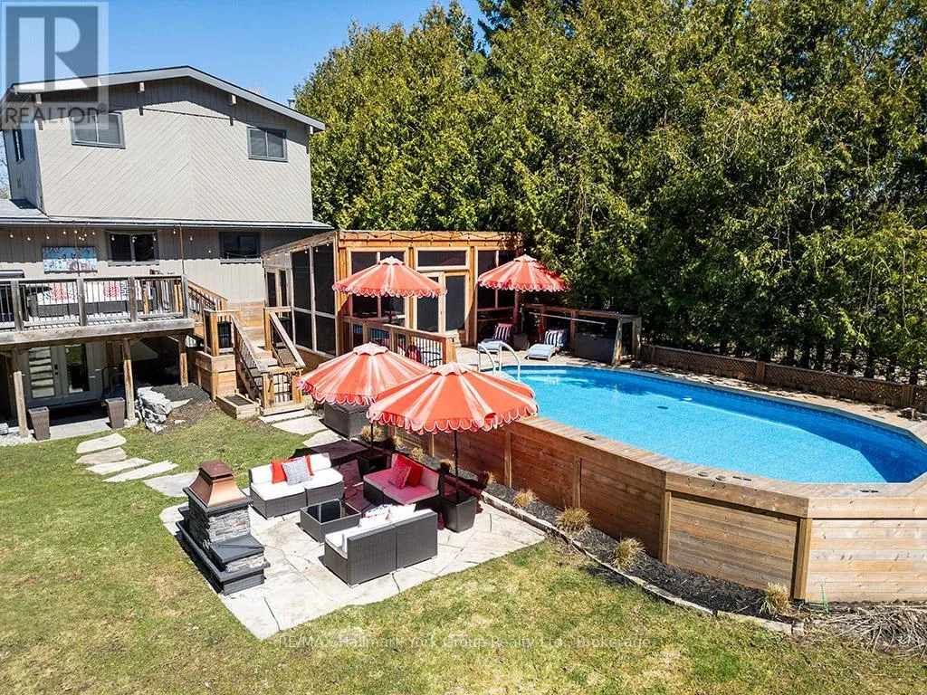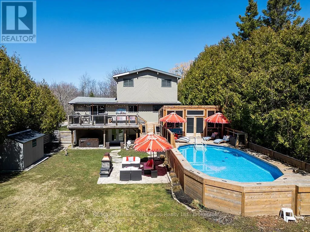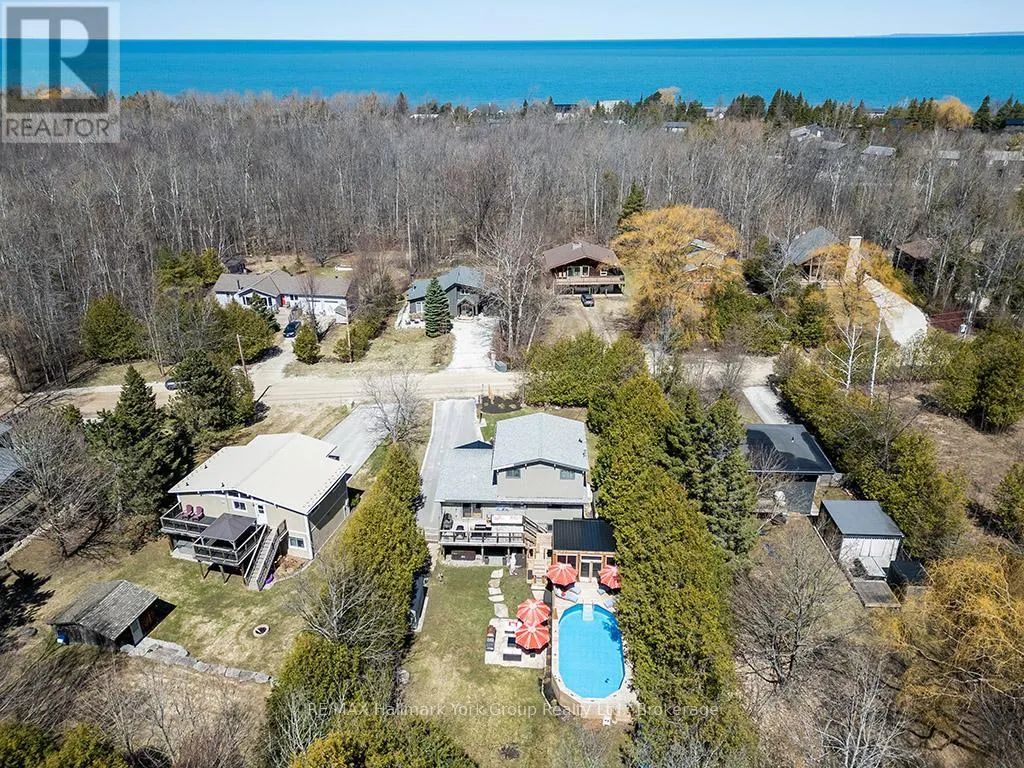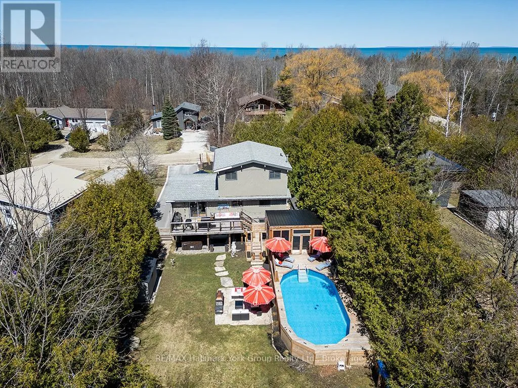 Hwy 26 to Hidden Lake Rd Epic Family Retreat with All the Bells & Whistles - Just Move In! Surrounded by natural beauty and peaceful woodlands, this stunning 5 bedroom retreat is the perfect blend of comfort, style, and functionality ideal for family living or unforgettable weekend escapes. Step inside and be welcomed by gleaming hardwood floors throughout, a bright and freshly updated interior, and modern bathrooms that add a touch of luxury to everyday living. The gourmet kitchen is built for both everyday meals and effortless entertaining, complete with high-end finishes and plenty of space to gather. The expansive Muskoka room offers year-round relaxation with tranquil views and abundant natural light. Enjoy summer days in the above-ground pool with full deck surround, then unwind in the sauna and outdoor hot tub, perfectly positioned for evening relaxation under the stars. A cozy fireplace anchors the living space, creating a warm and inviting atmosphere, while the private, wooded setting ensures peace and seclusion. Outdoors, a large firepit area invites connection and conversation, surrounded by the sights and sounds of nature. Located just steps from the crystal-clear waters of Georgian Bay, and only minutes to the vibrant town of Collingwood, this retreat is also close to premier ski hills, top-rated golf courses, and endless outdoor activities. This exceptional property is being offered fully furnished - just bring your suitcase and settle in. Whether you're seeking a full-time residence or a luxurious getaway, this home delivers space, privacy, and a lifestyle that feels like a permanent vacation. (id:27476)