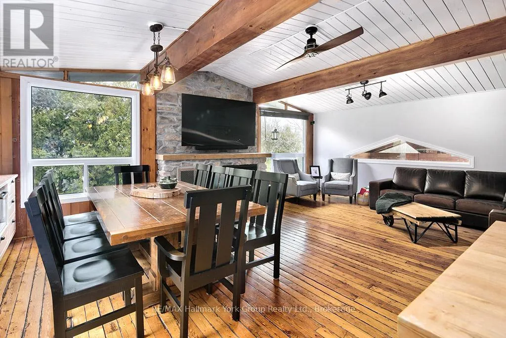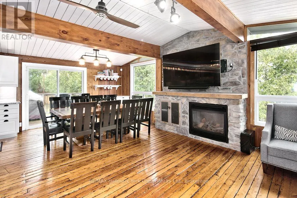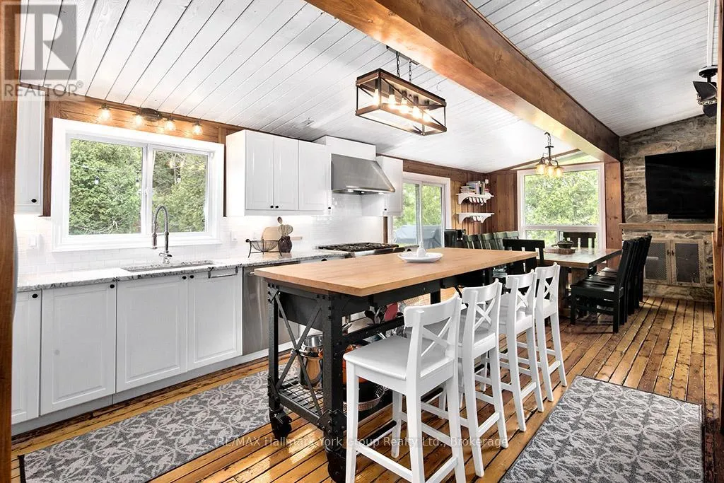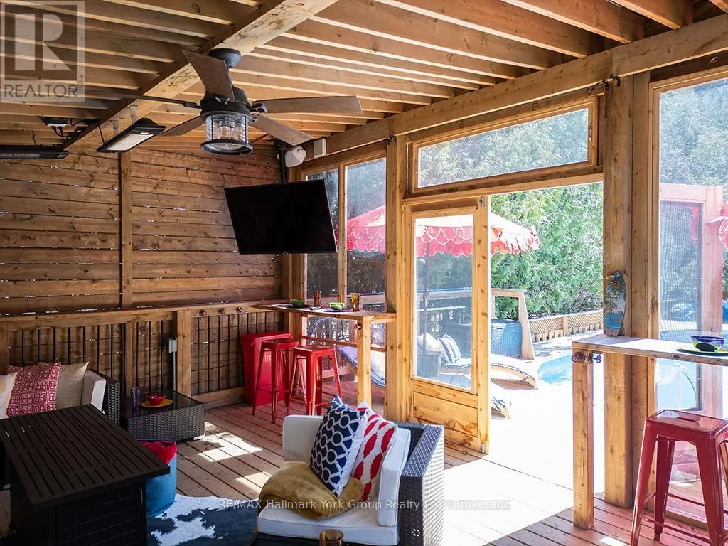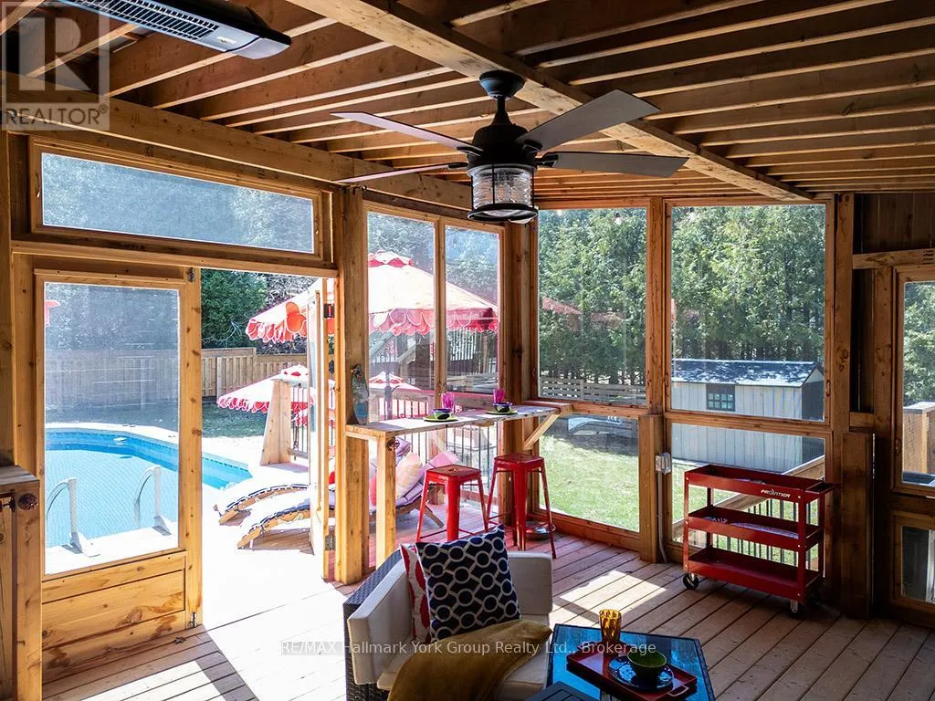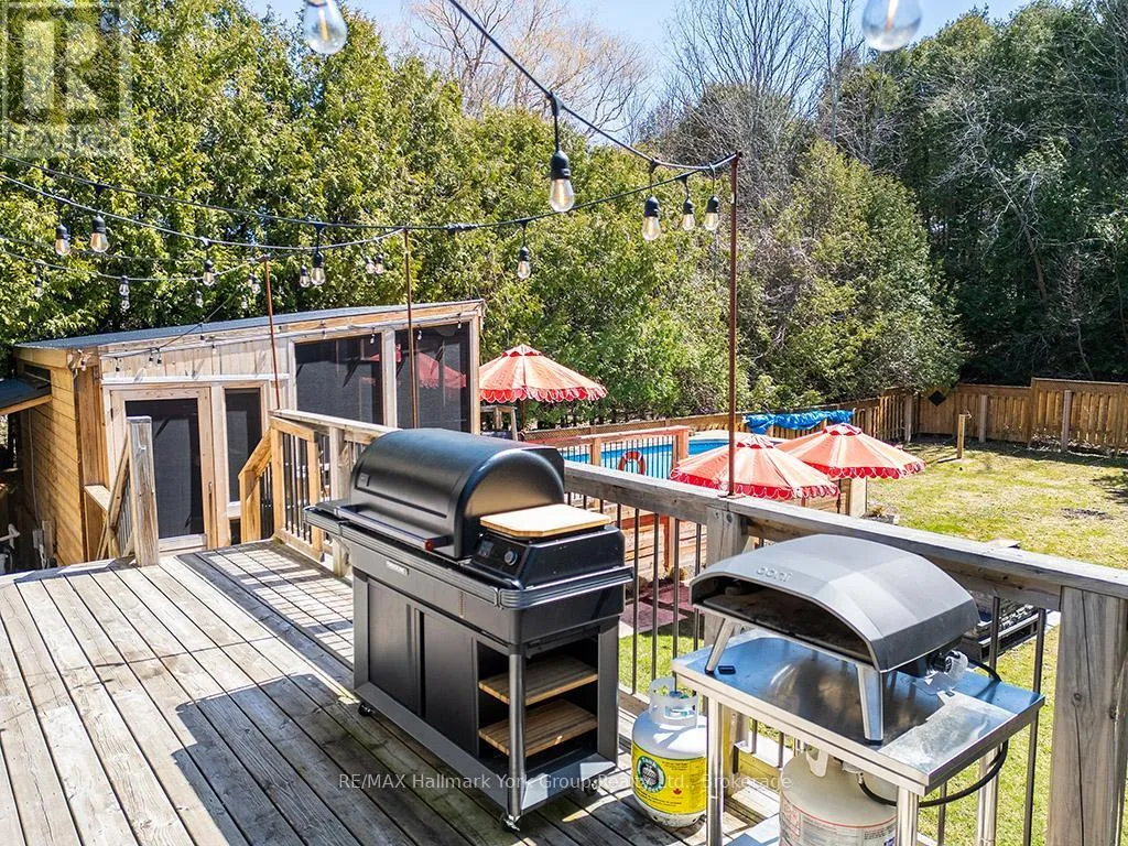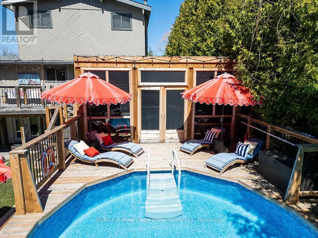 Hwy 26 to Hidden Lake Rd Epic Family Retreat with All the Bells & Whistles - Just Move In! Surrounded by natural beauty and peaceful woodlands, this stunning 5 bedroom retreat is the perfect blend of comfort, style, and functionality ideal for family living or unforgettable weekend escapes. Step inside and be welcomed by gleaming hardwood floors throughout, a bright and freshly updated interior, and modern bathrooms that add a touch of luxury to everyday living. The gourmet kitchen is built for both everyday meals and effortless entertaining, complete with high-end finishes and plenty of space to gather. The expansive Muskoka room offers year-round relaxation with tranquil views and abundant natural light. Enjoy summer days in the above-ground pool with full deck surround, then unwind in the sauna and outdoor hot tub, perfectly positioned for evening relaxation under the stars. A cozy fireplace anchors the living space, creating a warm and inviting atmosphere, while the private, wooded setting ensures peace and seclusion. Outdoors, a large firepit area invites connection and conversation, surrounded by the sights and sounds of nature. Located just steps from the crystal-clear waters of Georgian Bay, and only minutes to the vibrant town of Collingwood, this retreat is also close to premier ski hills, top-rated golf courses, and endless outdoor activities. This exceptional property is being offered fully furnished - just bring your suitcase and settle in. Whether you're seeking a full-time residence or a luxurious getaway, this home delivers space, privacy, and a lifestyle that feels like a permanent vacation. (id:27476)