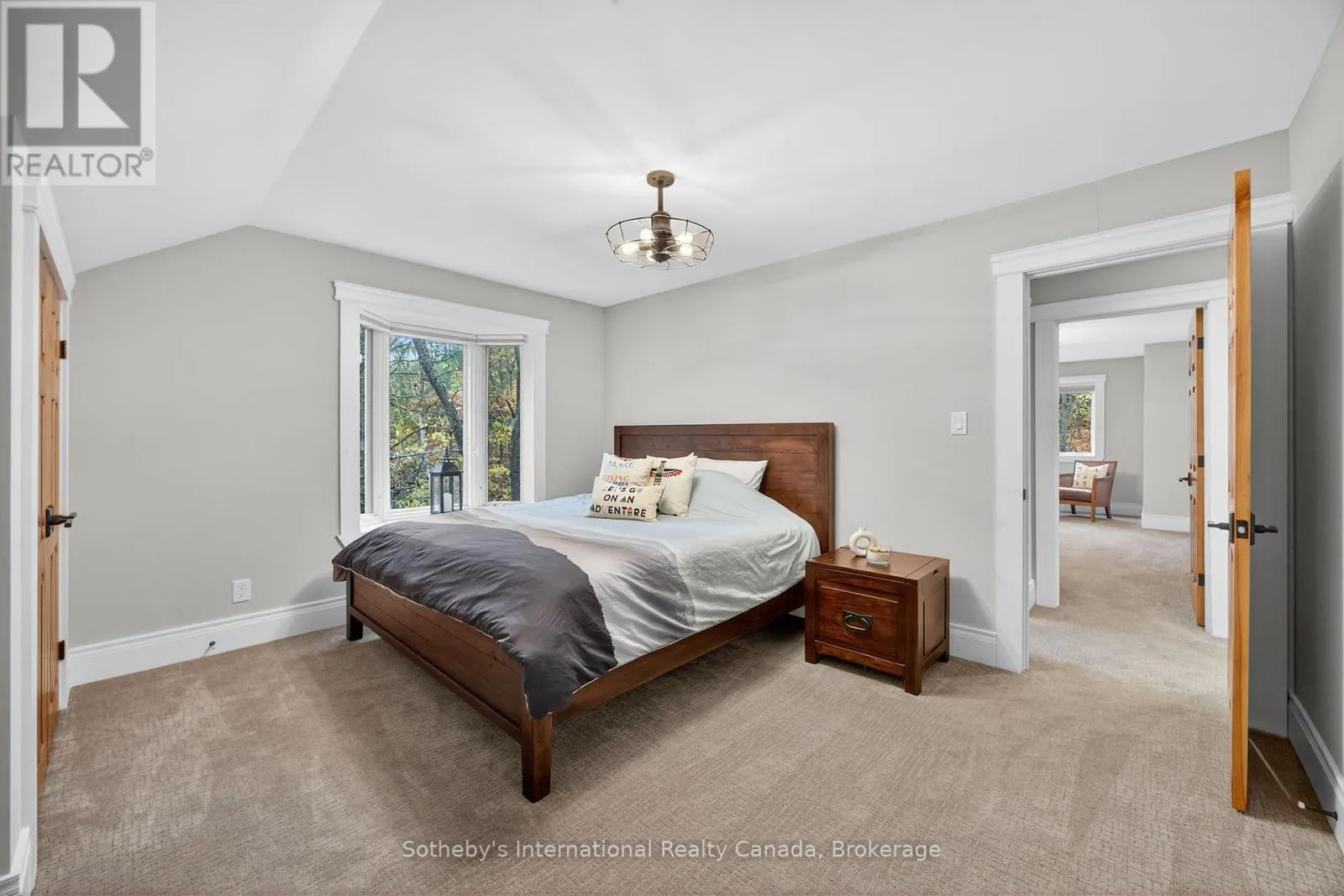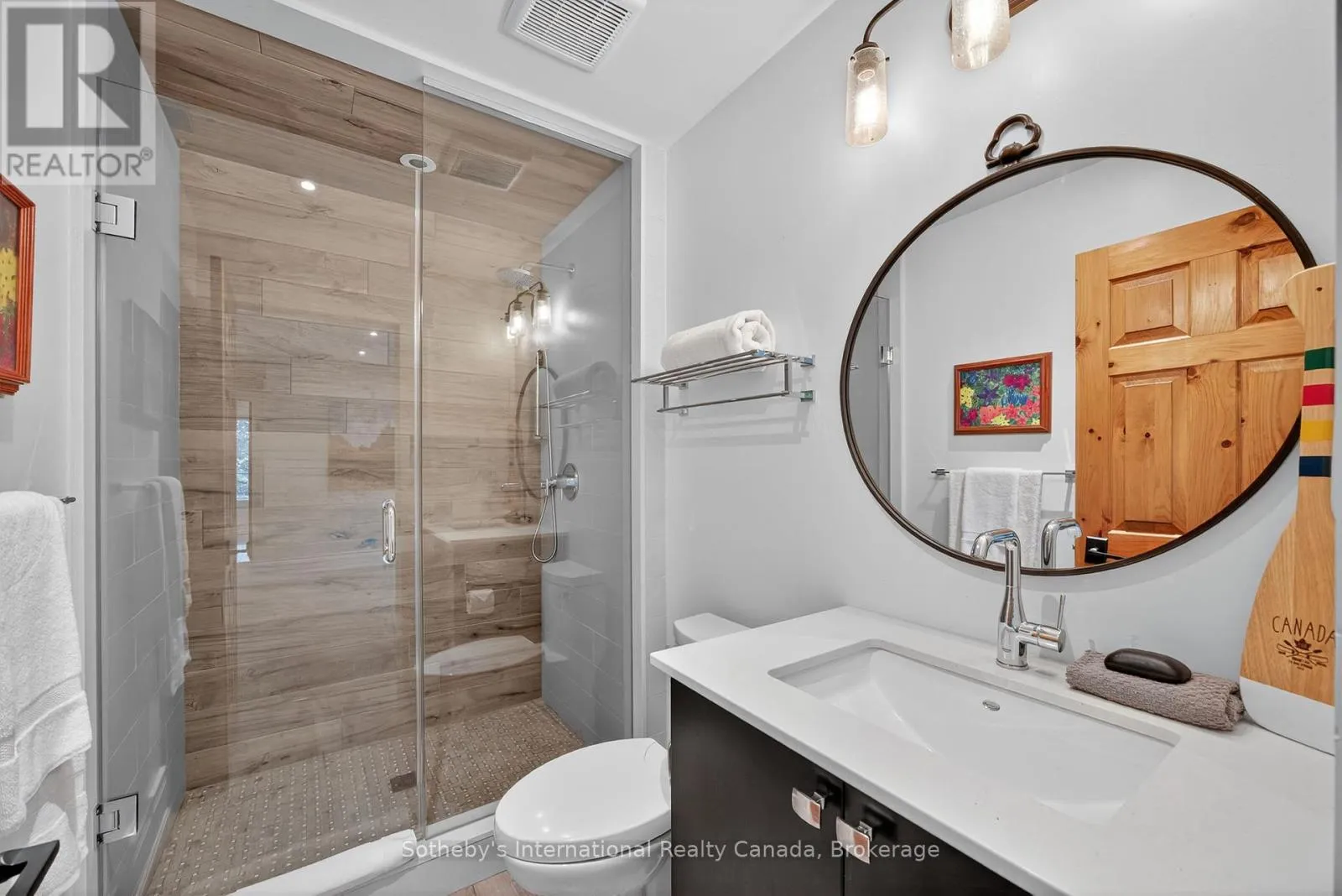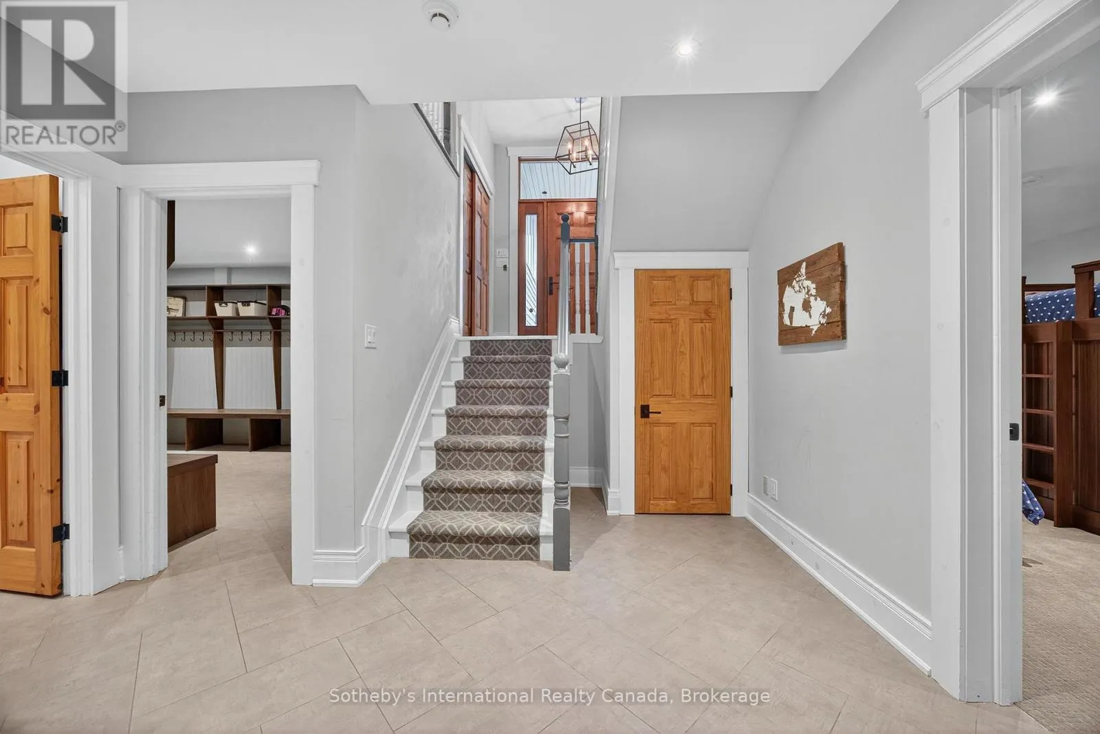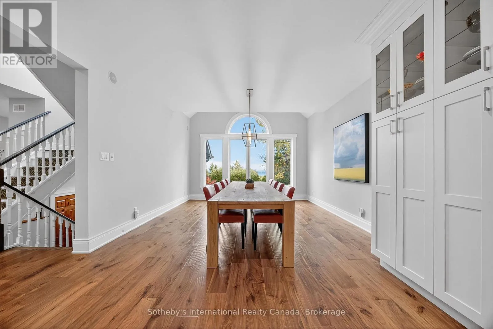 Cross Streets: Arrowhead Rd & Arrowhead Cres. ** Directions: Grey Rd 19 to Sleepy Hollow to Arrowhead Rd to Arrowhead Cres. 5500+ sq ft Luxury Mountain Retreat at the Base of Craigleith & Alpine Ski Clubs. Experience four-season resort living at its finest in one of Ontario's most prestigious ski community locations - a rare property where you can walk to the slopes or ski right from your door. Nestled on a private wooded lot with a soothing creek, fire pit, putting green, and picturesque bridge path, this residence offers the perfect balance of natural beauty and refined luxury.Boasting views of the ski hills and Georgian Bay, this fully renovated (2016) home features soaring ceilings, expansive windows, and three fireplaces-including a floor to ceiling stone gas fireplace in the great room, a cozy wood-burning fireplace in the upper living area, and additional gas fireplace in the family room creating a relaxing ambiance in multiple areas . The gourmet kitchen is a chef's dream, featuring high-end appliances, an oversized island with seating for eight. The open-concept dining area, framed by expansive bay views, comfortably seats ten, beer taps & multiple wine/beverage fridges-perfect for hosting après-ski dinners and family gatherings. Home includes a games room, gym, and lower-level walkout. After a day on the slopes, enter through the grand mudroom with custom cabinetry and heated floors, offering seamless comfort and function. Main floor primary suite opens directly to the back deck and features a spa-like ensuite with a glass shower, soaker tub, and dual sinks. Additional luxuries include two laundry rooms with stainless steel front-load appliances and whole-home speaker system.Outdoors, enjoy beautifully landscaped grounds with a winding, illuminated driveway, a hot tub overlooking the bay, and a basketball hoop. The steel roof adds enduring quality and peace of mind.Whether you're skiing, hiking, snowshoeing, or teeing off at nearby golf courses, this is the ultimate four-season lifestyle. Just minutes from Blue Mountain Village, Thornbury, and Collingwood's shops and bistros. (id:27476)