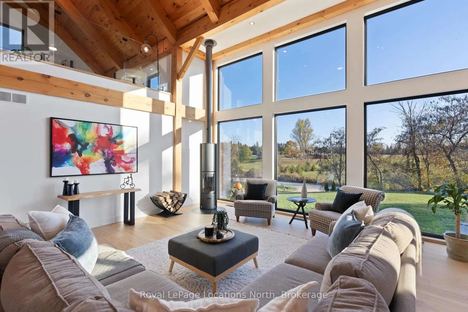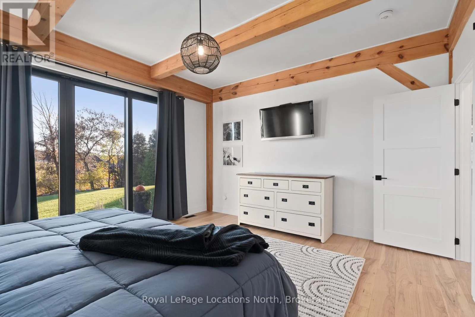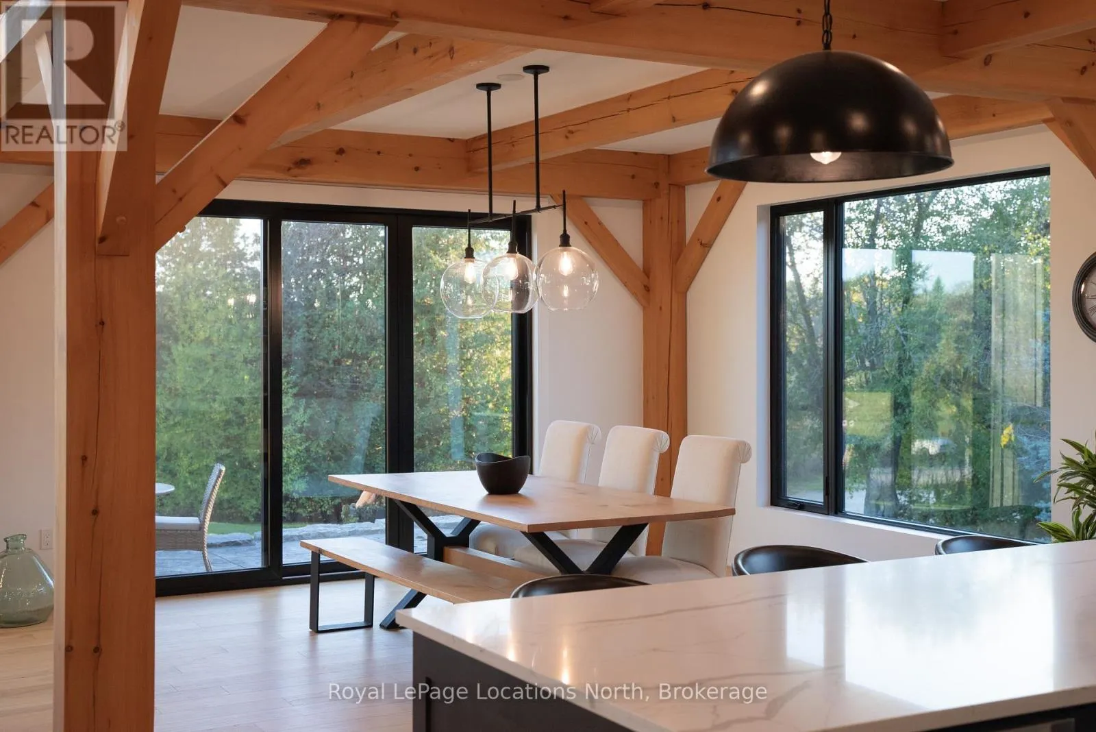 Cross Streets: Beaver VAlley Rd (Grey Rd 13) and Slabtown Rd. ** Directions: Beaver Valley Rd (Grey Rd 13) from Thornbury/Clarksburg to Slabtown Rd. Welcome to 113 Slabtown Rd W, a modern timber frame home in one of the area's most charming and quietly sought-after enclaves. Thoughtfully designed and built with timeless craftsmanship, this nearly 5,000 sq. ft. home balances luxury with an inviting warmth that makes everyday living feel relaxed and comfortable. Soaring ceilings, exposed beams, and expansive windows create a sense of openness while drawing in natural light throughout the day. The main living spaces flow seamlessly-perfect for gathering with family, hosting friends, or simply settling into a slower pace. The kitchen, living, and dining areas are grounded by natural materials and thoughtful details, while multiple walkouts connect you effortlessly to the outdoors.The private primary suite offers a calming retreat with a serene ensuite. The main floor is complemented with an upstairs with 2 additional bedrooms and flexible spaces suited to work, hobbies, or guests. The fully finished lower level provides additional room for living and entertaining, complete with a large mudroom, an additional bedroom and direct garage access for practical day-to-day living.There is also a bonus room that would make a great sauna or ski tuning room. Outside, the setting is something truly special. Slabtown is a small, welcoming community-rural in feel, yet just a 5-minute drive to Thornbury's highly desirable community school, shops, dining, marina, and conveniences. Step outside your door to the Slabtown Dam for a summer swim or paddle the Beaver River at sunset. Ski clubs, golf, hiking trails, and Georgian Bay are all close by, making four-season adventure part of your rhythm.This is a home where mornings are slow, evenings gather everyone at the table, and the natural beauty of the Blue Mountains shapes the way you live. Warm, grounded, and quietly luxurious- 113 Slabtown Rd W offers a lifestyle that feels both connected and comfortably at ease. (id:27476)