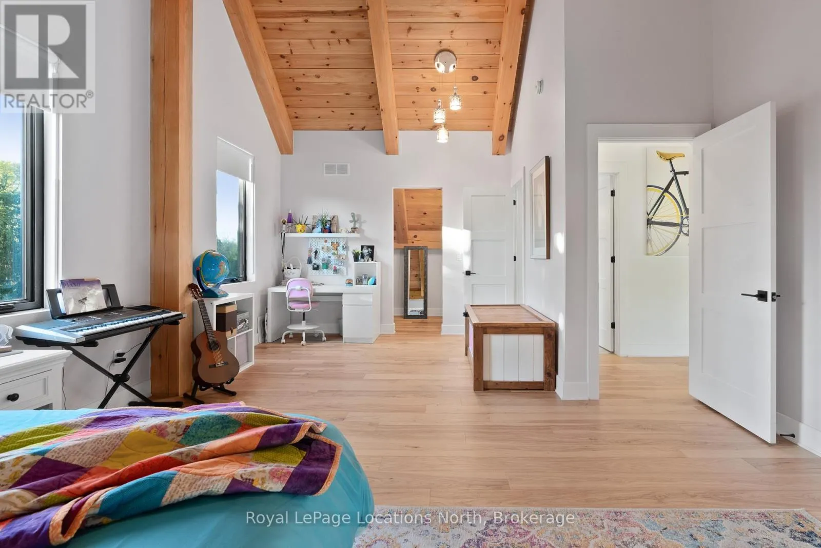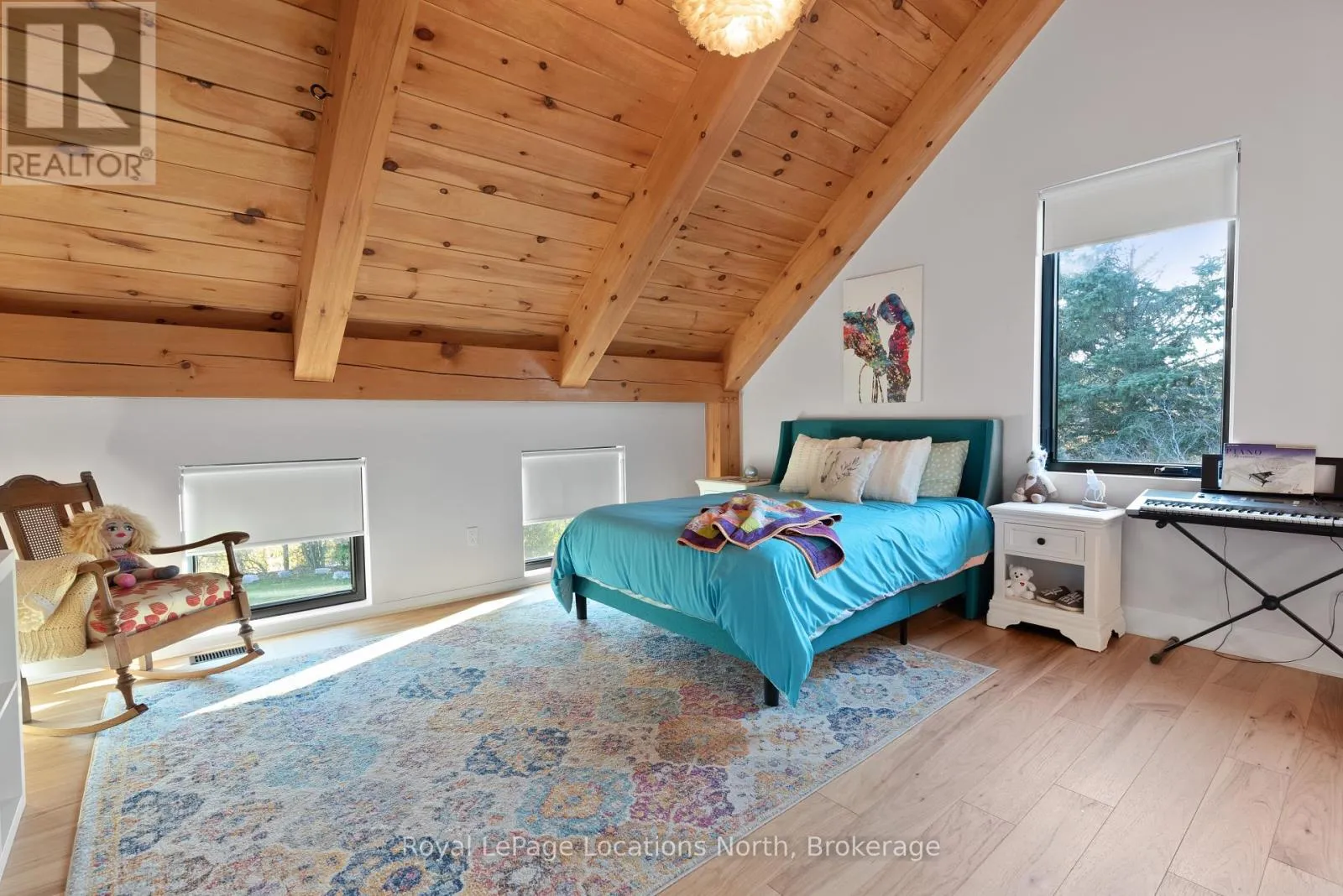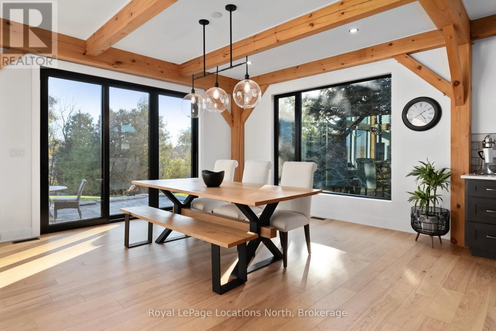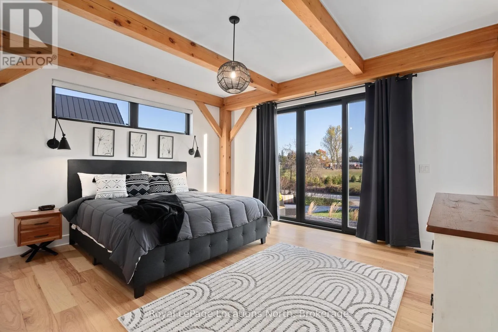 Cross Streets: Beaver VAlley Rd (Grey Rd 13) and Slabtown Rd. ** Directions: Beaver Valley Rd (Grey Rd 13) from Thornbury/Clarksburg to Slabtown Rd. Welcome to 113 Slabtown Rd W, a modern timber frame home in one of the area's most charming and quietly sought-after enclaves. Thoughtfully designed and built with timeless craftsmanship, this nearly 5,000 sq. ft. home balances luxury with an inviting warmth that makes everyday living feel relaxed and comfortable. Soaring ceilings, exposed beams, and expansive windows create a sense of openness while drawing in natural light throughout the day. The main living spaces flow seamlessly-perfect for gathering with family, hosting friends, or simply settling into a slower pace. The kitchen, living, and dining areas are grounded by natural materials and thoughtful details, while multiple walkouts connect you effortlessly to the outdoors.The private primary suite offers a calming retreat with a serene ensuite. The main floor is complemented with an upstairs with 2 additional bedrooms and flexible spaces suited to work, hobbies, or guests. The fully finished lower level provides additional room for living and entertaining, complete with a large mudroom, an additional bedroom and direct garage access for practical day-to-day living.There is also a bonus room that would make a great sauna or ski tuning room. Outside, the setting is something truly special. Slabtown is a small, welcoming community-rural in feel, yet just a 5-minute drive to Thornbury's highly desirable community school, shops, dining, marina, and conveniences. Step outside your door to the Slabtown Dam for a summer swim or paddle the Beaver River at sunset. Ski clubs, golf, hiking trails, and Georgian Bay are all close by, making four-season adventure part of your rhythm.This is a home where mornings are slow, evenings gather everyone at the table, and the natural beauty of the Blue Mountains shapes the way you live. Warm, grounded, and quietly luxurious- 113 Slabtown Rd W offers a lifestyle that feels both connected and comfortably at ease. (id:27476)